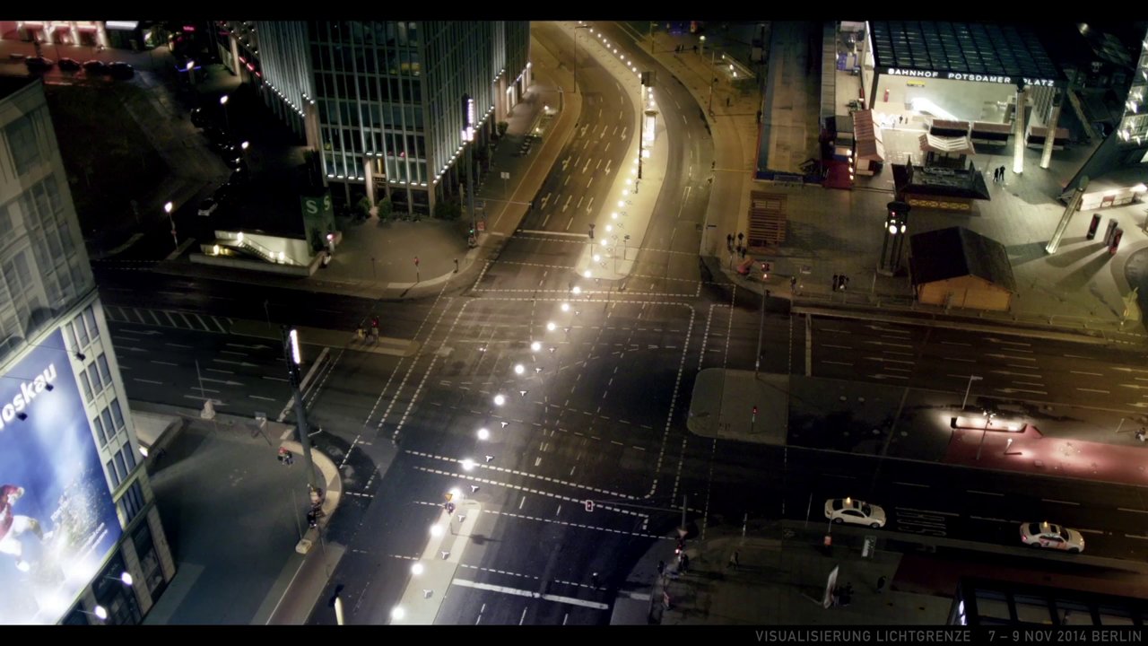 Dazu werden leuchtende Ballons entlang des ehemaligen innerstädtischen Mauerverlaufs aufgestellt und die Stadt somit optisch vorübergehend wieder geteilt.