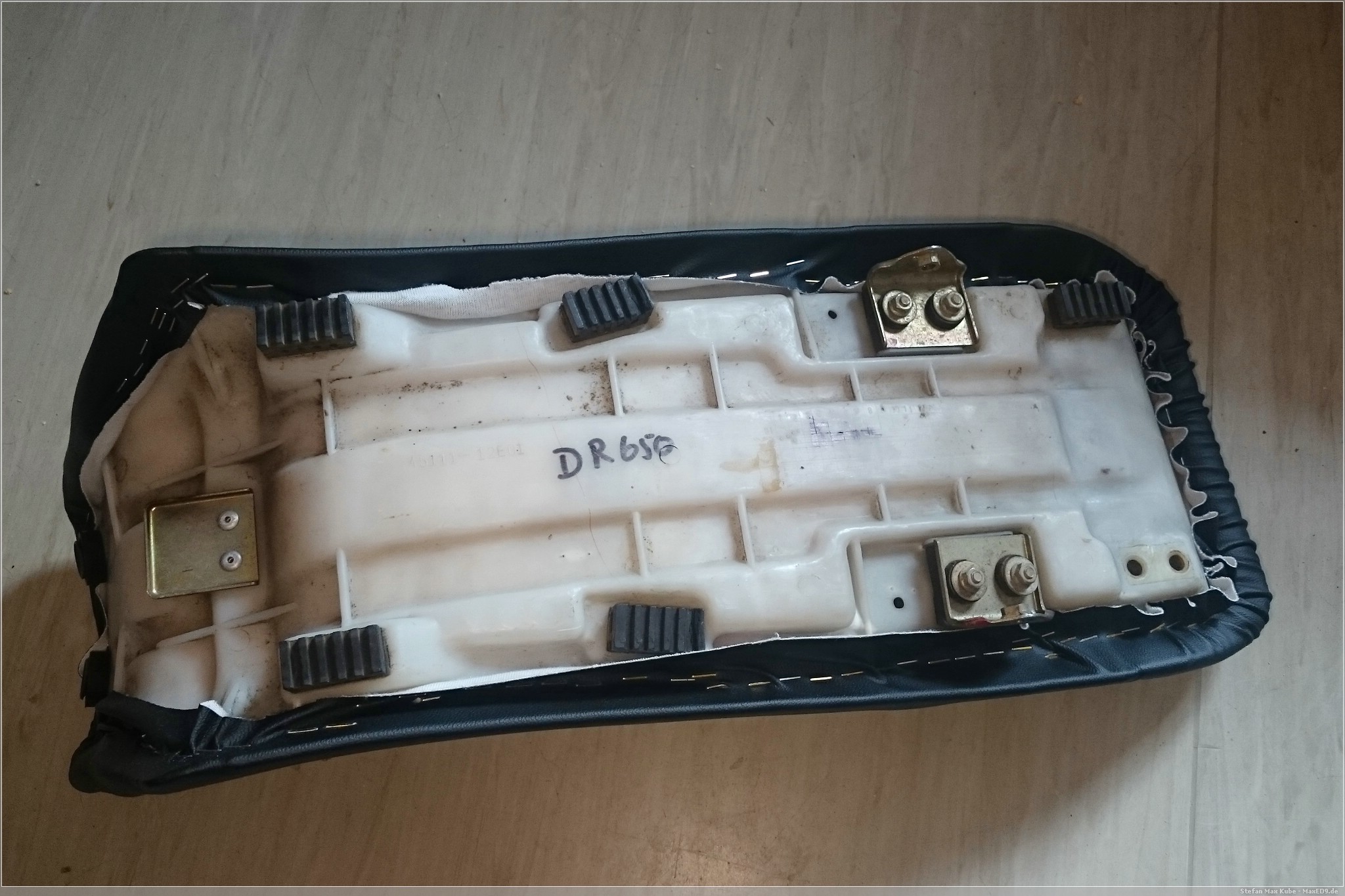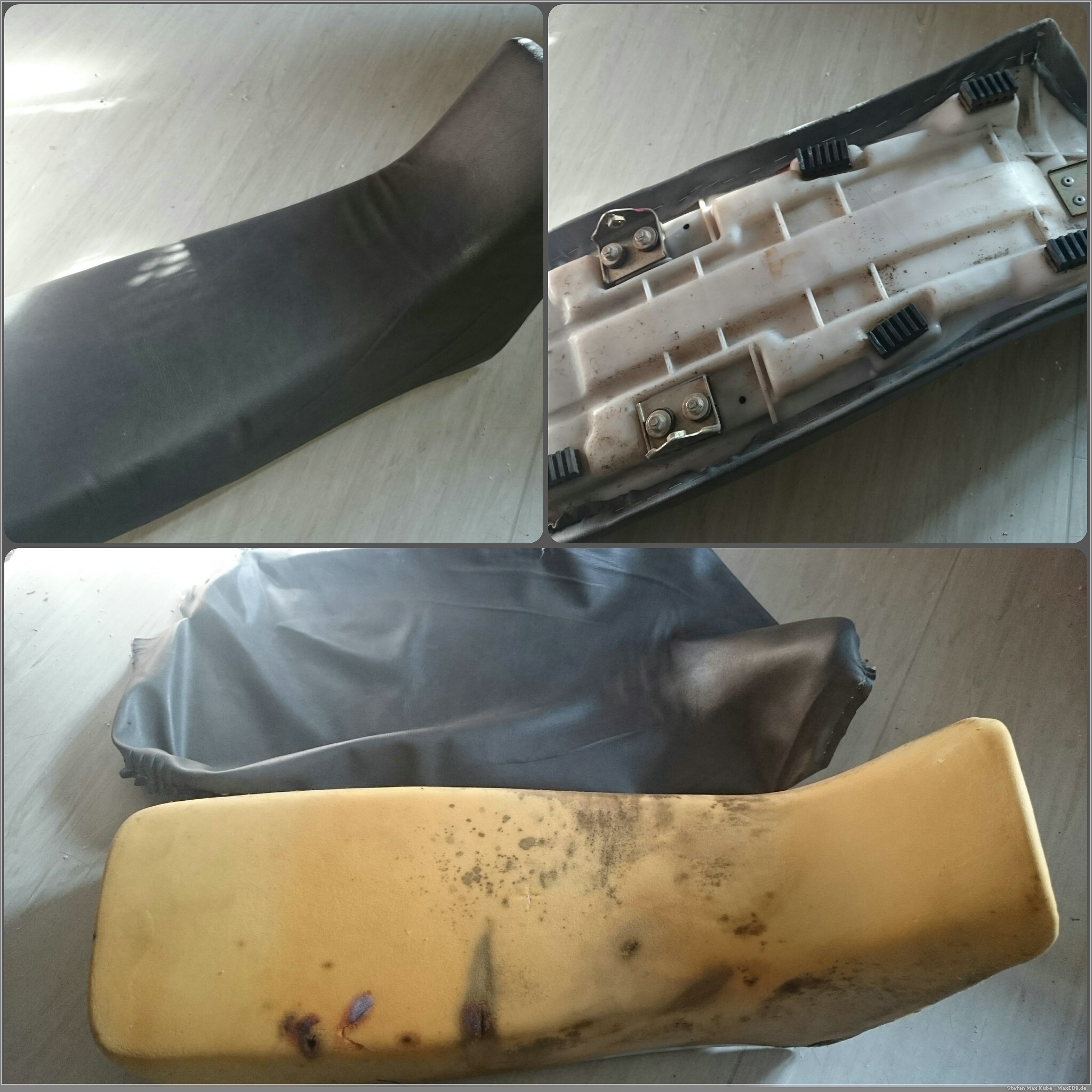 Also fragte ich einfach unverbindlich nach und bekam kurz darauf die Antwort, dass sie die Sitzbank beziehen können. Für einen 20er mehr als den Durchschnittspreis der Ersatzbezüge, dachte ich mir, dass man das ja auch mal probieren kann. Also demontierte ich die Sitzbank, zog die alte Pelle ab und schickte sie nach München.