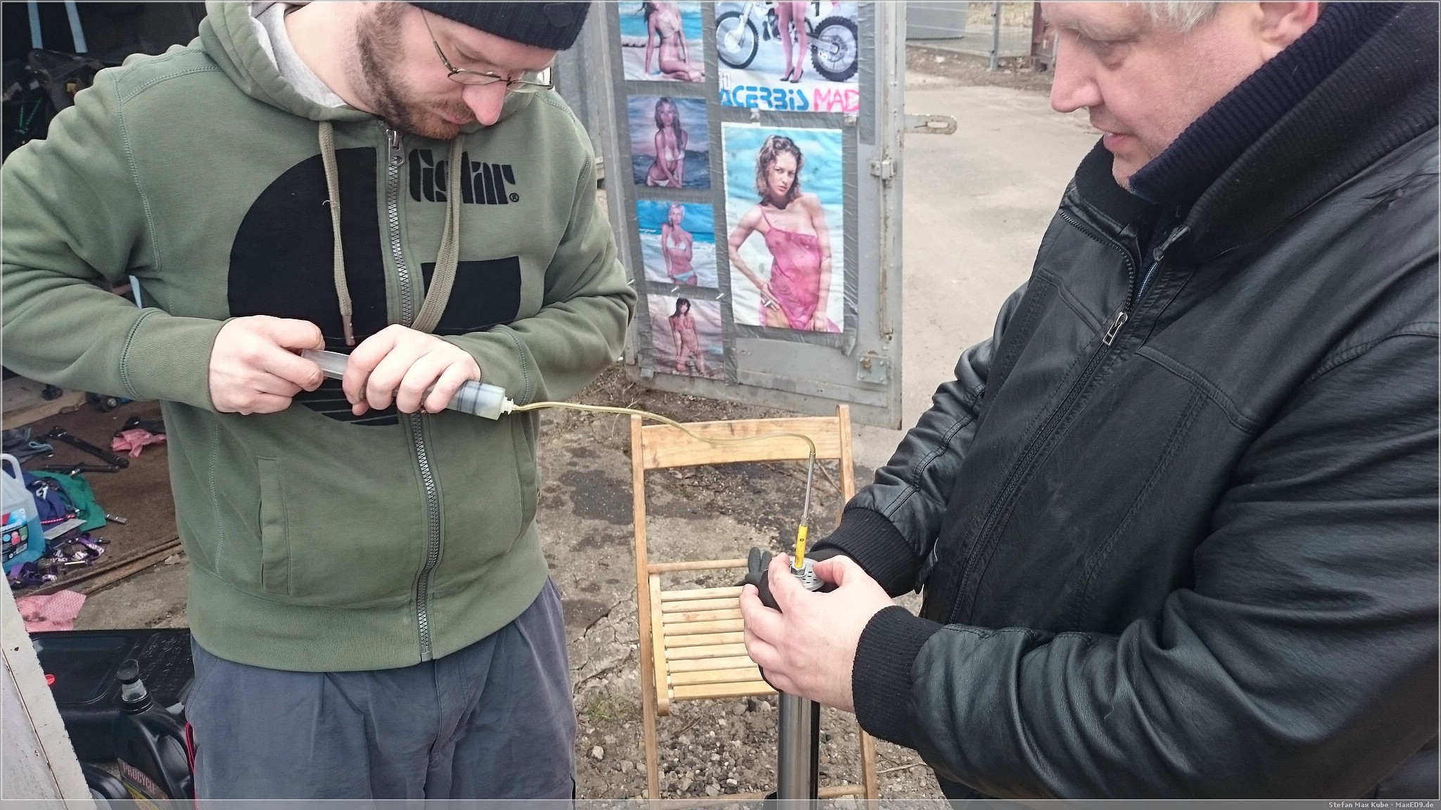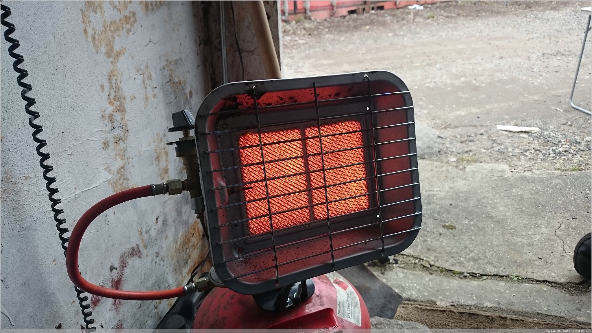 Mittlerweile war es schon dunkel und die Temperatur fiel von den bisherigen 5°C auf gefühlte -10°C. Der Gasheizer versorgte zwar die Garage mit wohliger Wärme, aber da wir aus Platzgründen überwiegend vor der Tür arbeiten mussten, hatten wir nicht so viel davon. Daher beschlossen wir den späten Samstag zu beenden, alles einzuräumen und am Sonntag den Rest zu machen.