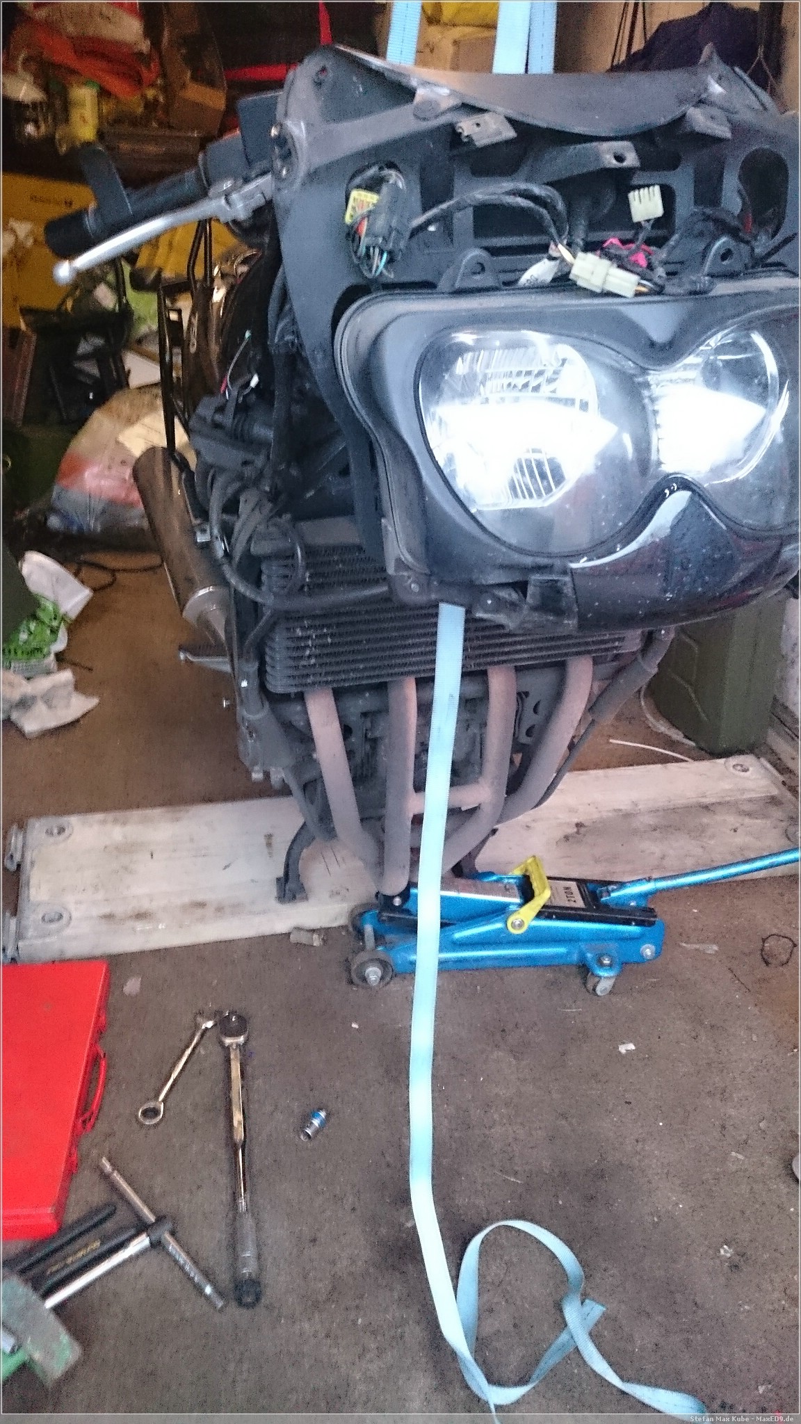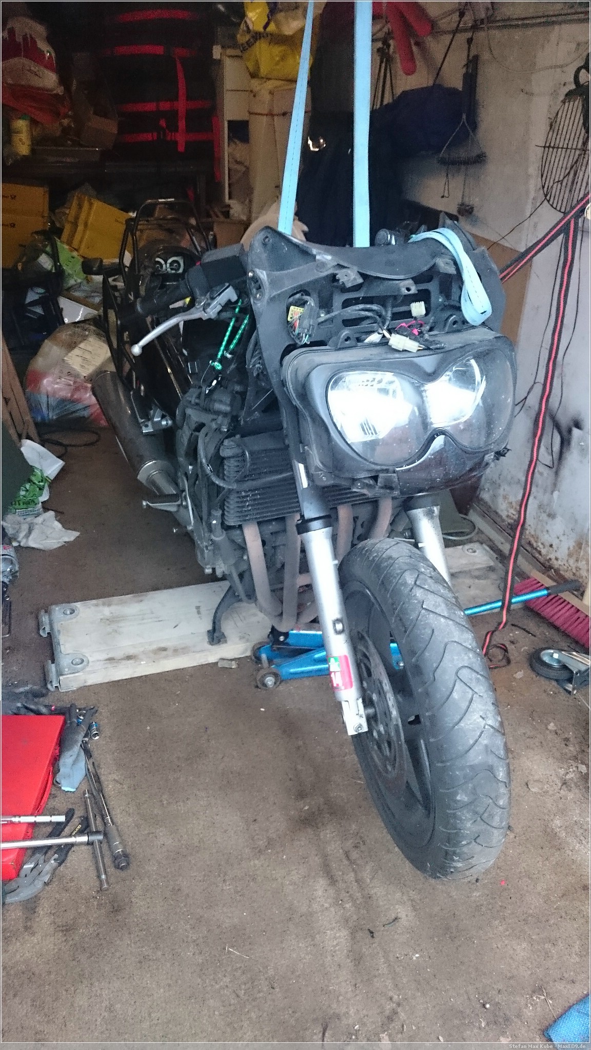 Nun war es aber mal Zeit und für dieses Jahr sollte es dann endlich gemacht werden. Da auch Jony seine GSX750F für den TÜV fertig machen wollte und dazu bei ihm der Tausch des Kettenkits und eine Gabelrevision anstand, sollte das Wochenende effektiv für die anstehenden Reparaturen genutzt werden.