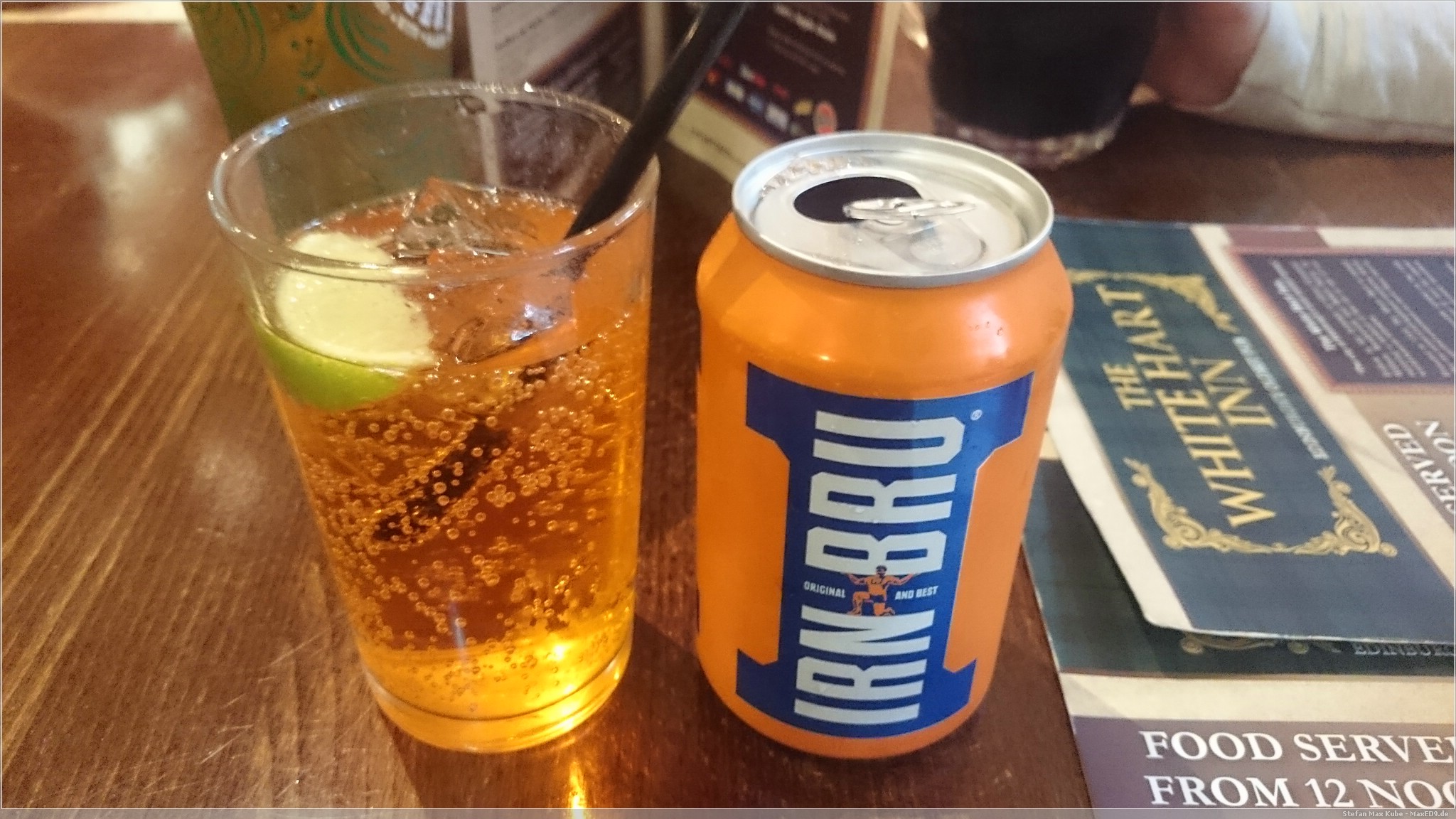 In uriger, 500 Jahre alter Atmosphäre gab es hier schottisches Bier, Speisen und Musik. (Naja, eigentlich lief hier auch Fußball auf den Fernsehern, aber fast ohne Ton). Ich genehmigte mir zum Abendessen einen typischen schottischen Softdrink, ein Irn Bru und fand auch für den Rest der Reise Gefallen daran.