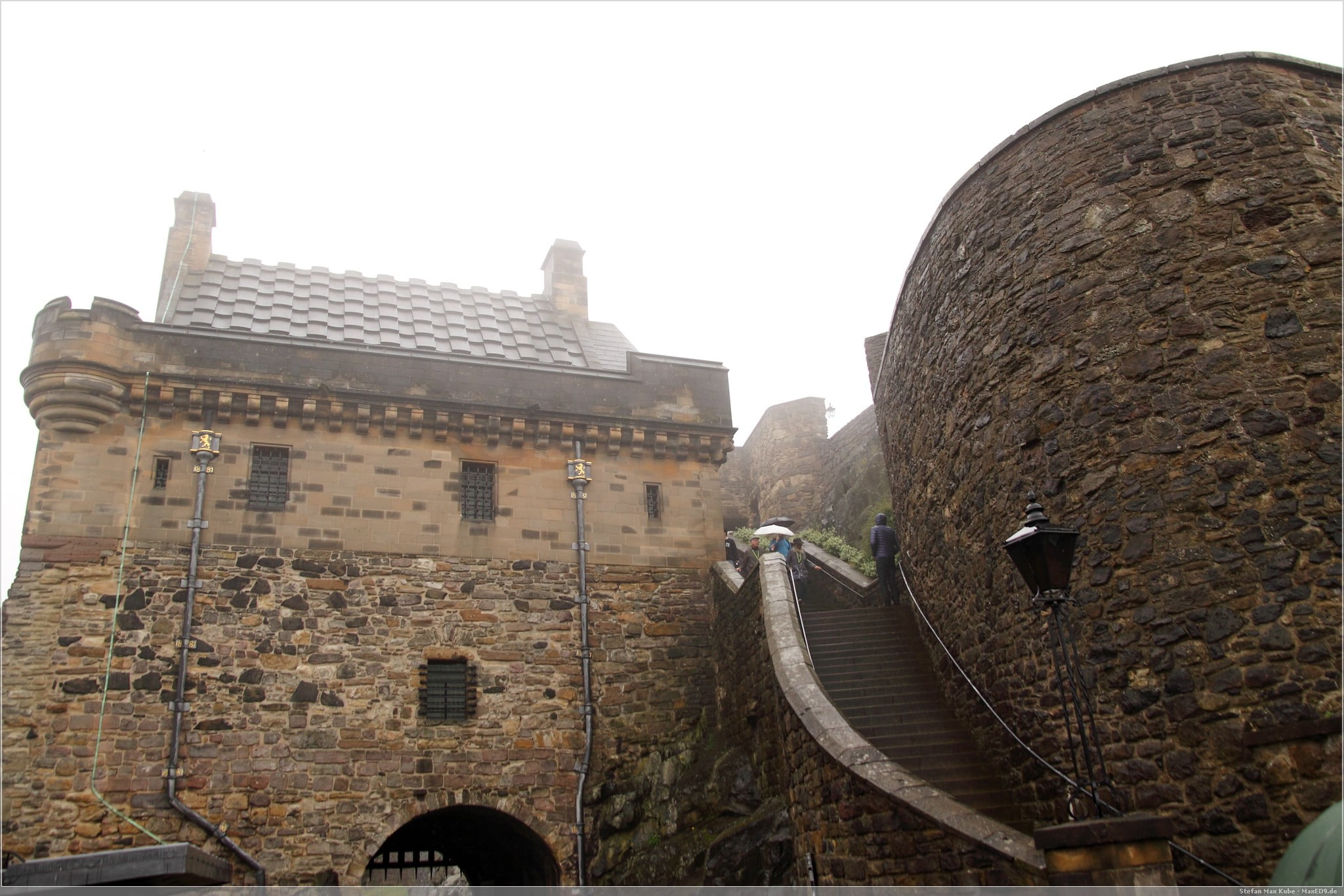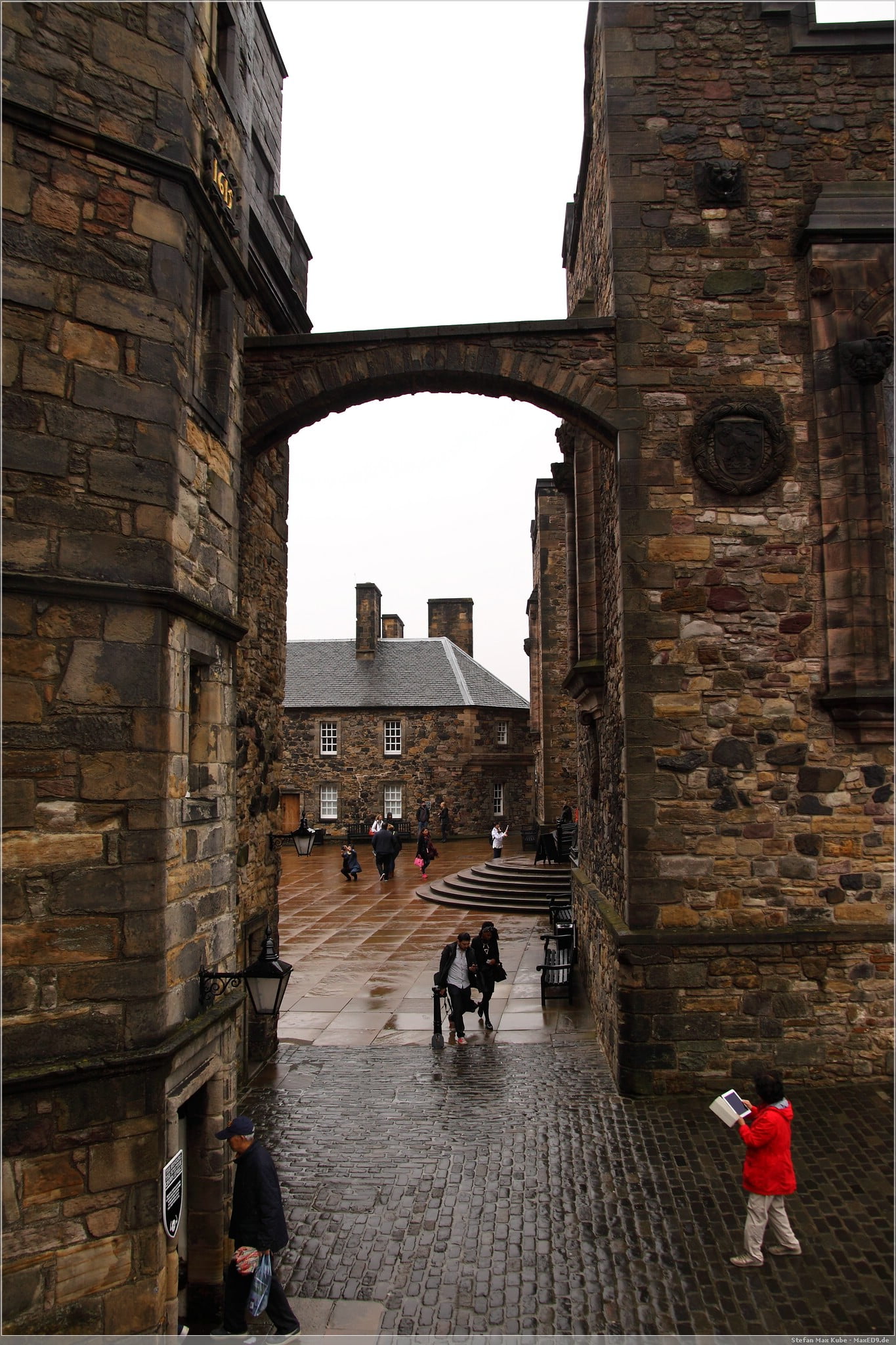 Nach dieser interessanten Erfahrung und den Taschen voller hochprozentigen Alkohol ging es zum Edinburgh Castle, vor dem bereits der Aufbau und die Vorbereitungen für das Military Tattoo stattfanden. Trotz des mittelmäßigen Wetters war die Burg noch gut besucht und nach kurzer Wartezeit konnten wir in den Innenhof treten. Je weiter wir liefen, desto beeindruckender wurde es.