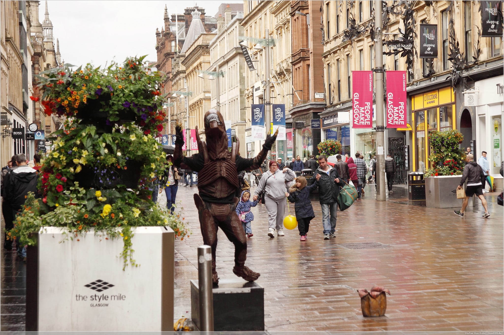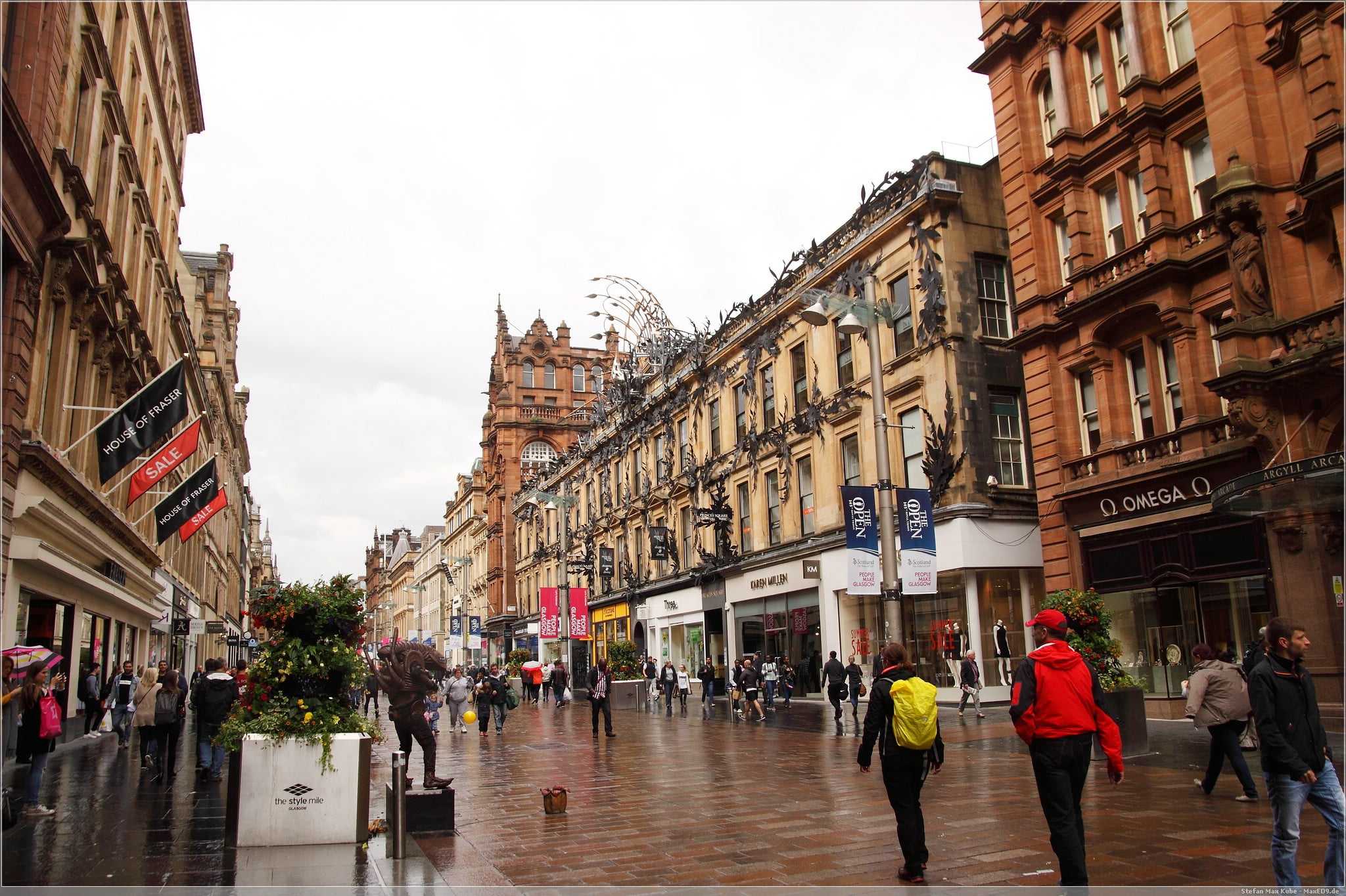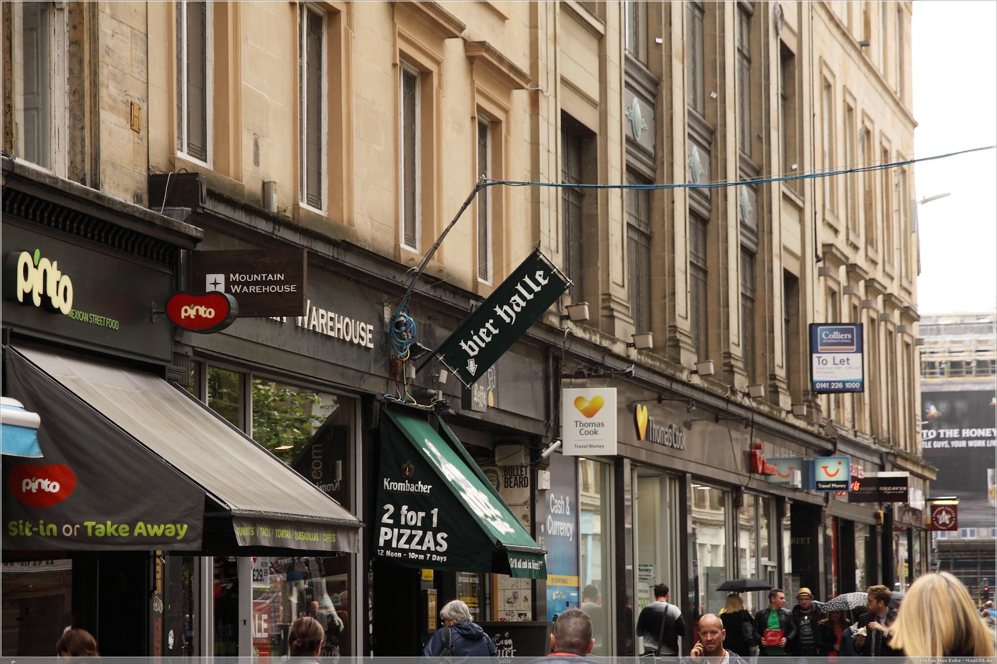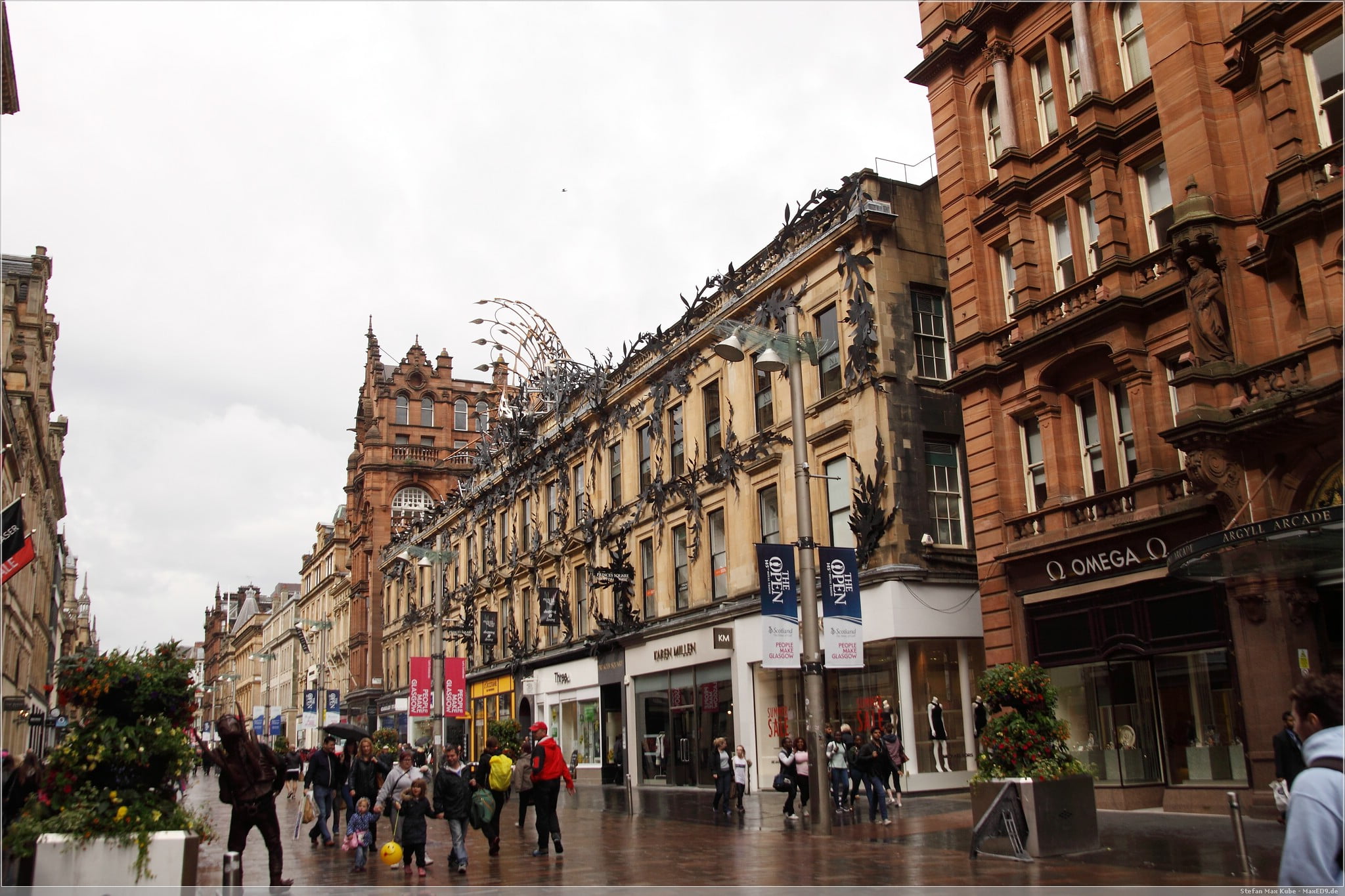 Nachdem Lutz, Romina und ich zurück in Glasgow waren, nahmen wir uns die Zeit für einen ersten Bummel rund um die große Einkaufsmeile der Buchanan Street. Denn unsere Hotel lag direkt an einem Ende der Style Mile, neben dem St. Enoch Shopping Center.