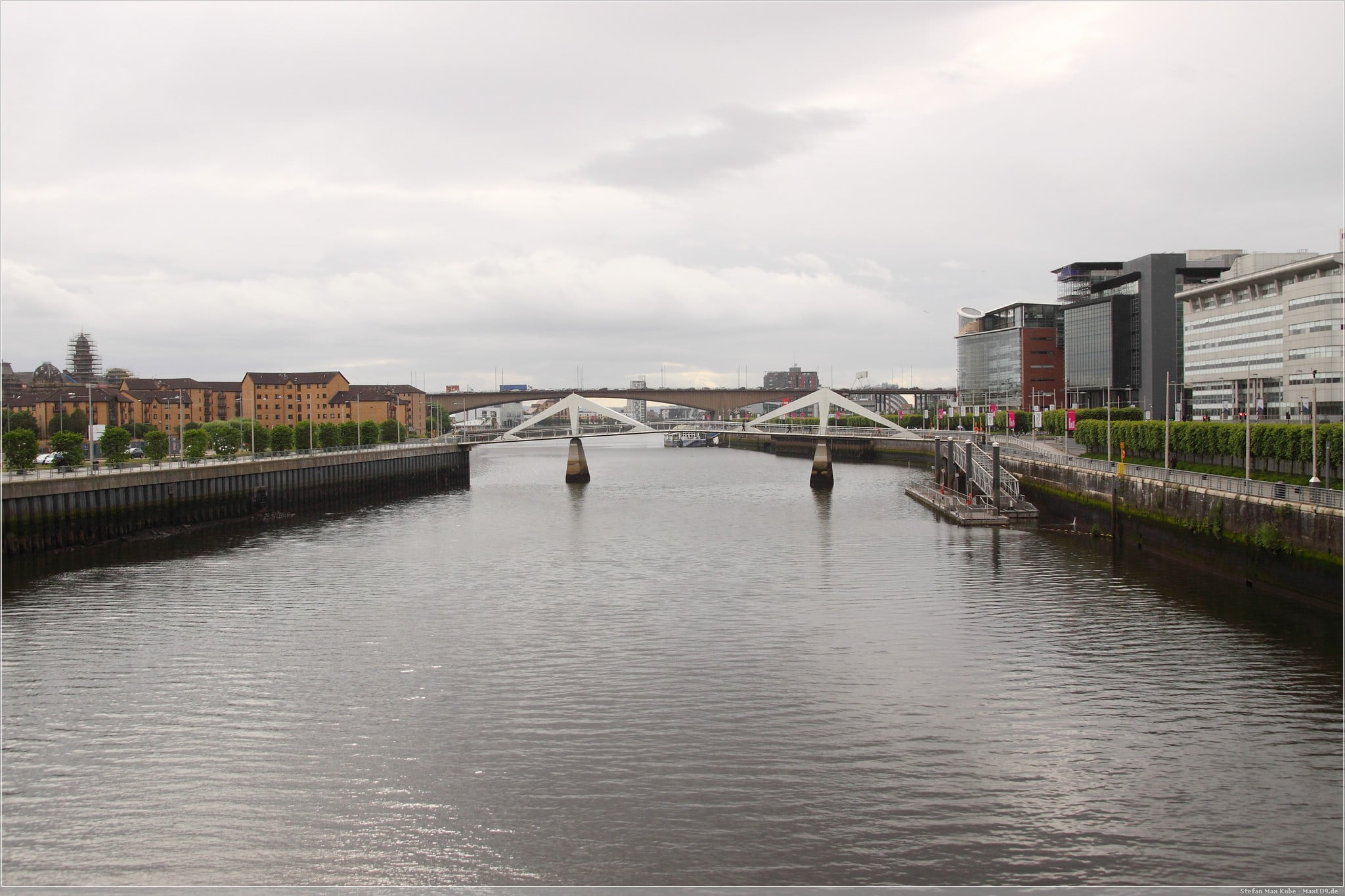 Rund um und in der Glasgow Central Station herschte reges treiben zur Zeit des Berufsverkehrs. Nachdem Bahnhof ging es zum Fluß Clyde über die eine oder andere Brücke, um uns auch hier die Zeit mit der Dosensuche zu vertreiben. Von der Glasgow Bridge[2] wurde uns der Blick zum Casino nahe gebracht und auf der anderen Seite entdeckten wir ein Wartehäuschen für Frauen[3].