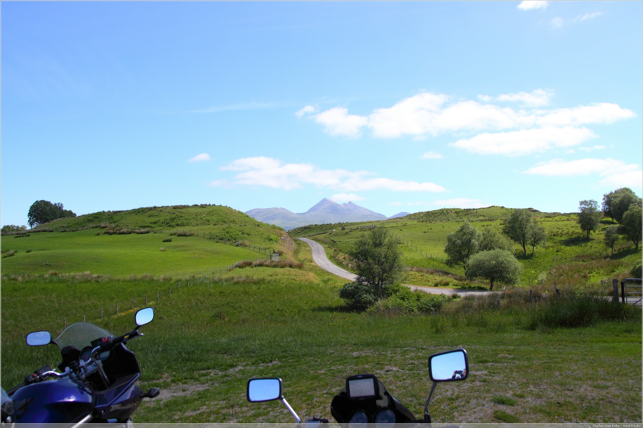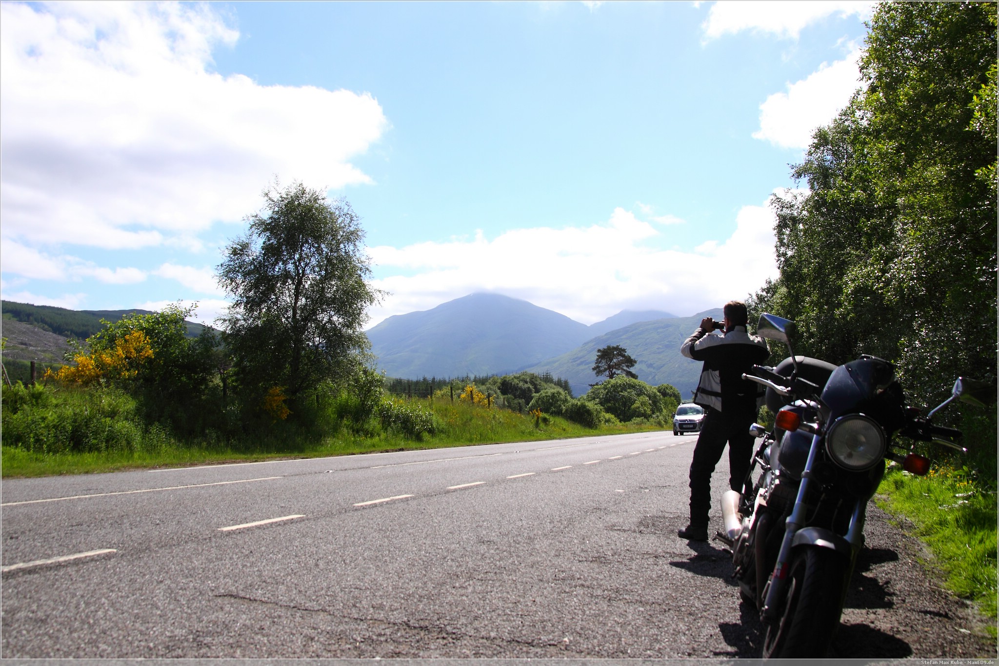 Nachdem Frühstück holten wir die Moppeds und fuhren dann zunächst mit der Autobahn M8 raus aus Glasgow um dann später auf die Landstraße A82 zu wechseln, die uns bis fast ganz nach Oban bringen sollte. Entlang am Loch Lomond, wo die Straße schmaler aber auch kurviger wurde, begann die Tour richtig Spaß zu machen.
