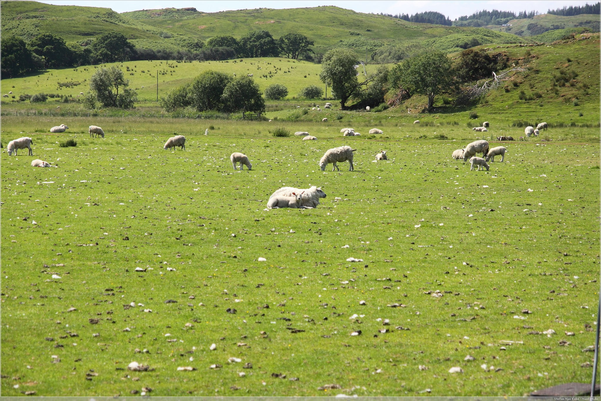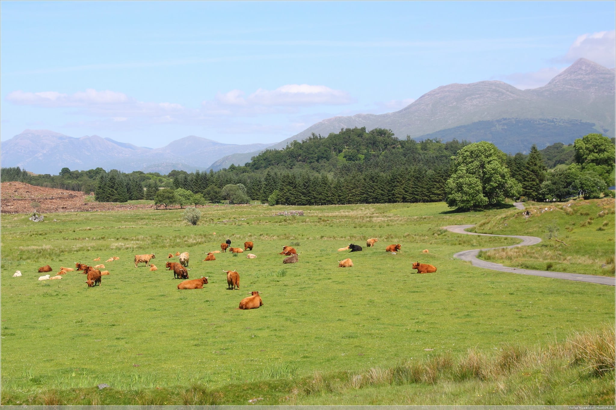 Auf dieser Strecke durchfuhren wir mehrere Weideflächen auf den Schafe und Hochlandrinder frei herumliefen und nur widerwillig die Straße freimachten.