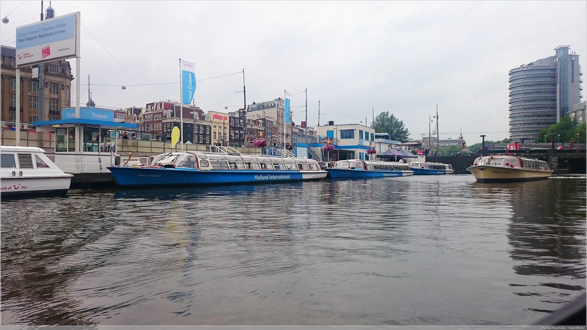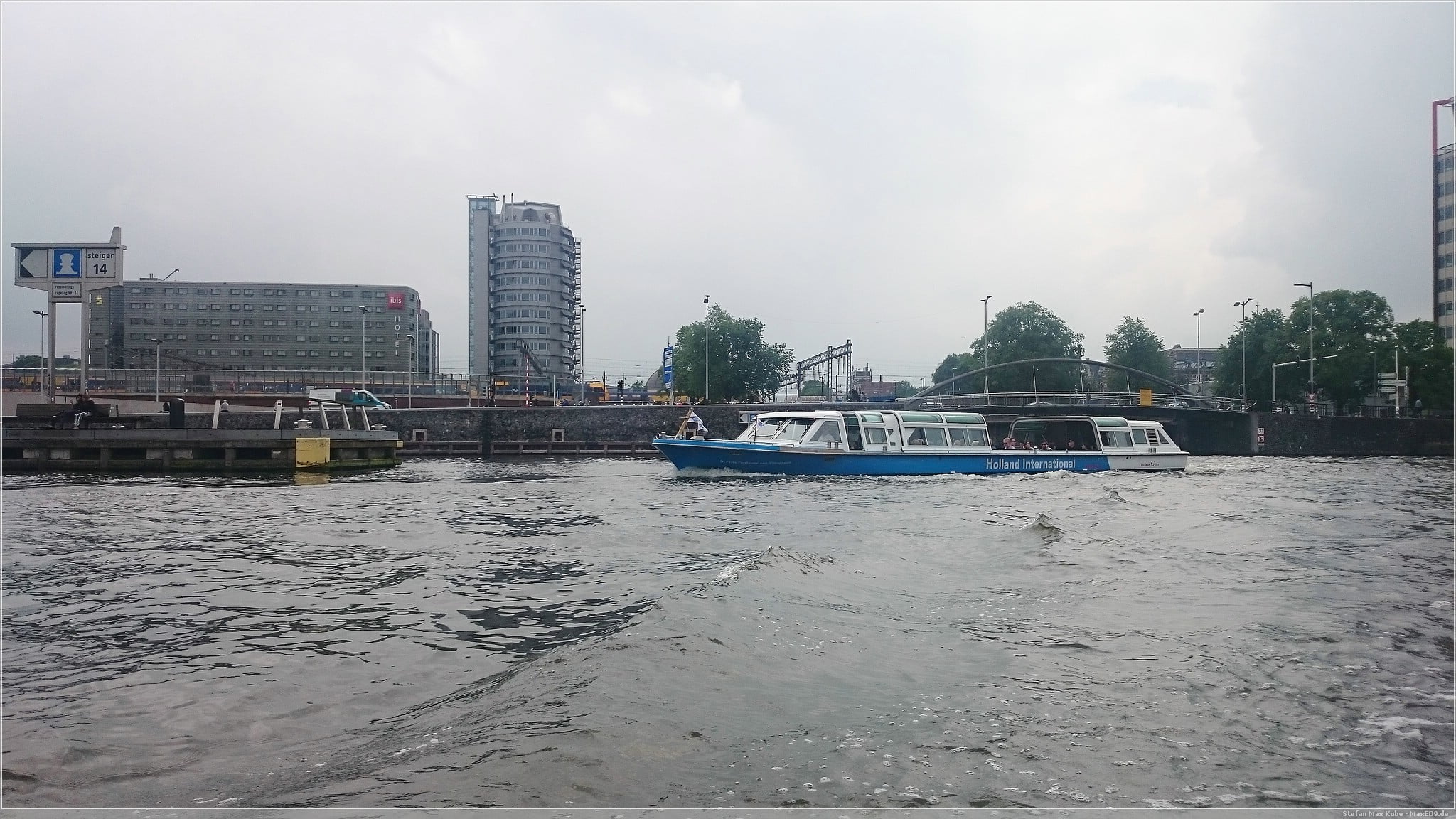 Nach dem Einchecken, es war ja noch früh am Tag, machten wir uns dann mit der Metro auf in die Innenstadt von Amsterdam. Eine gute halbe Stunde trennte den Außenbezirk vom Stadtzentrum und vom Amsterdamer Hauptbahnhof konnten wir nach einer kurzen Souvenirrunde auch gleich eine Grachtenfahrt machen. So schipperten wir eine Stunde durch den Hafen und die Kanäle, lernten dabei einiges über Stadt.