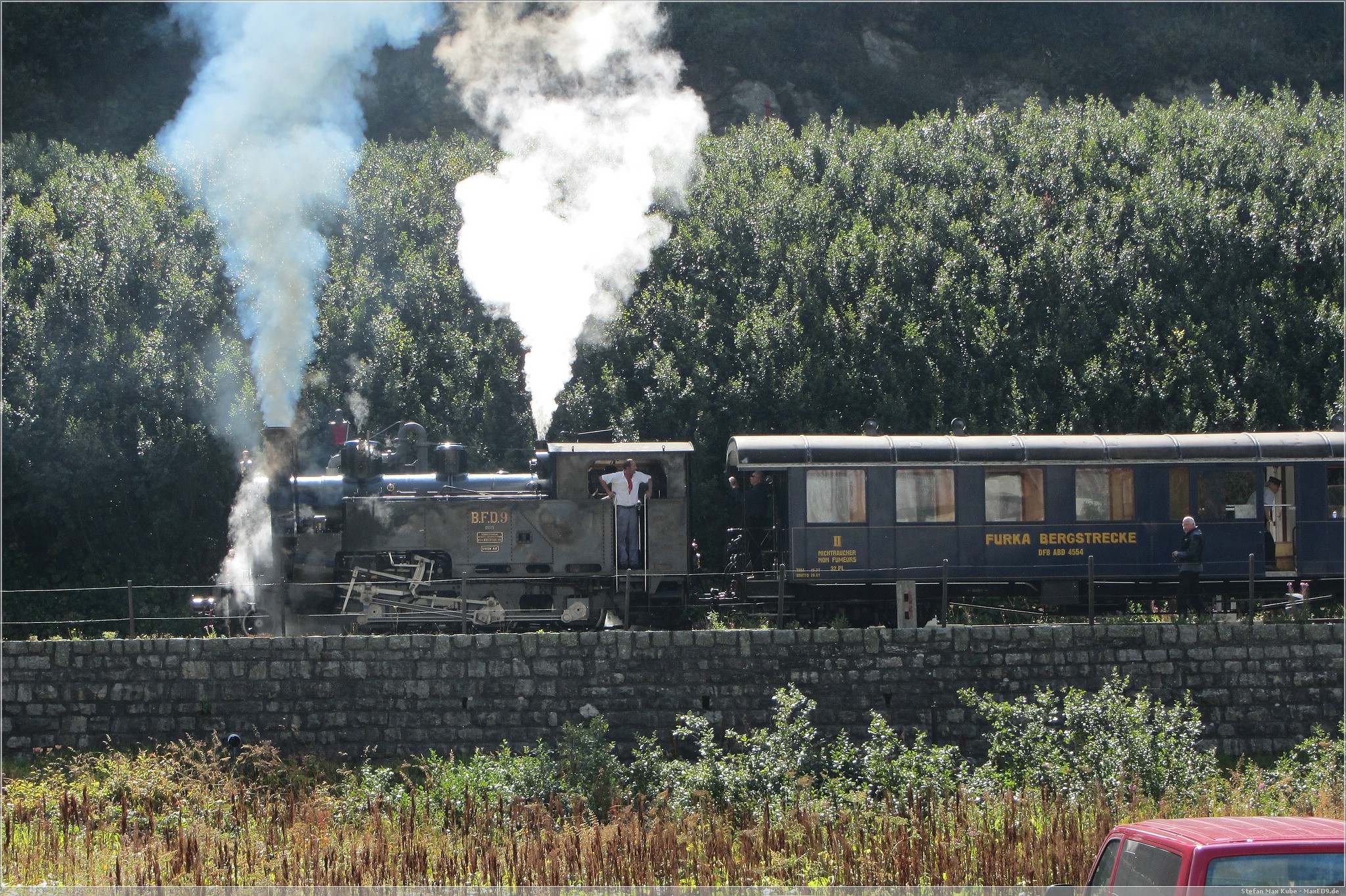 Die folgenden Bilder entstanden in Gletsch, als wir spontan wegen des Dampfzuges Halt machten. Wie die wahrgewordene Träumerei einer Eisenbahnplatte: