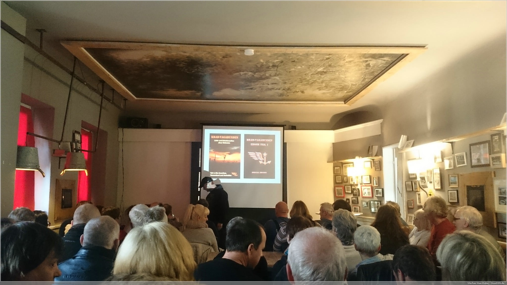 Die Veranstaltung war fast bis auf den letzten Platz gut besucht und Panny erläuterte einführend, dass es sich hier nich um einen klassischen Dia-Vortrag handelt, bei dem in chronologischer Reihenfolge mit vielen Bildern die Reise nacherzählt wird. Das würde auch angesichts der Länge der Reise von dreieinhalb Jahren sicherlich den Rahmen sprengen.