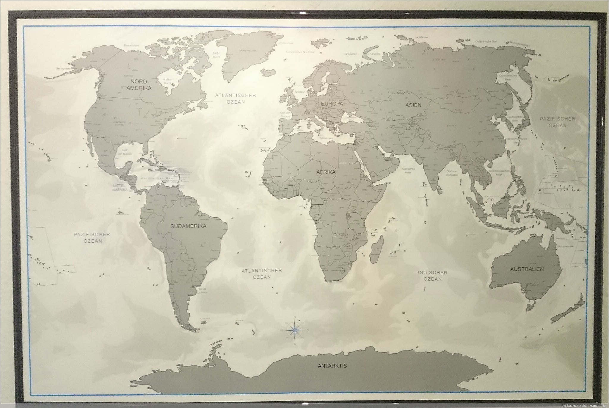 Diese Karte gibt es in unterschiedlichen Ausführungen und Farben. Ich entschied mich vor einem Jahr für eine Karte in A1 und Silbergrau. Doch gleich an die Wand kam sie nicht und irgendwie geriet sie fast in Vergessenheit.