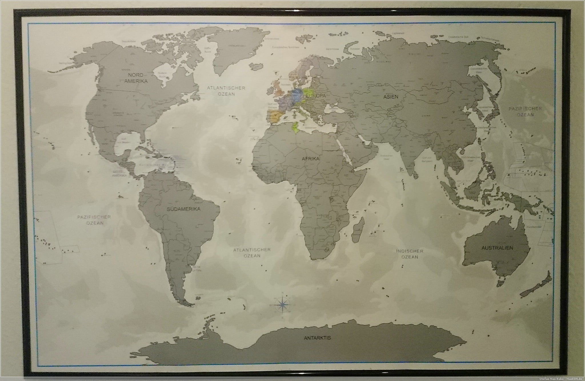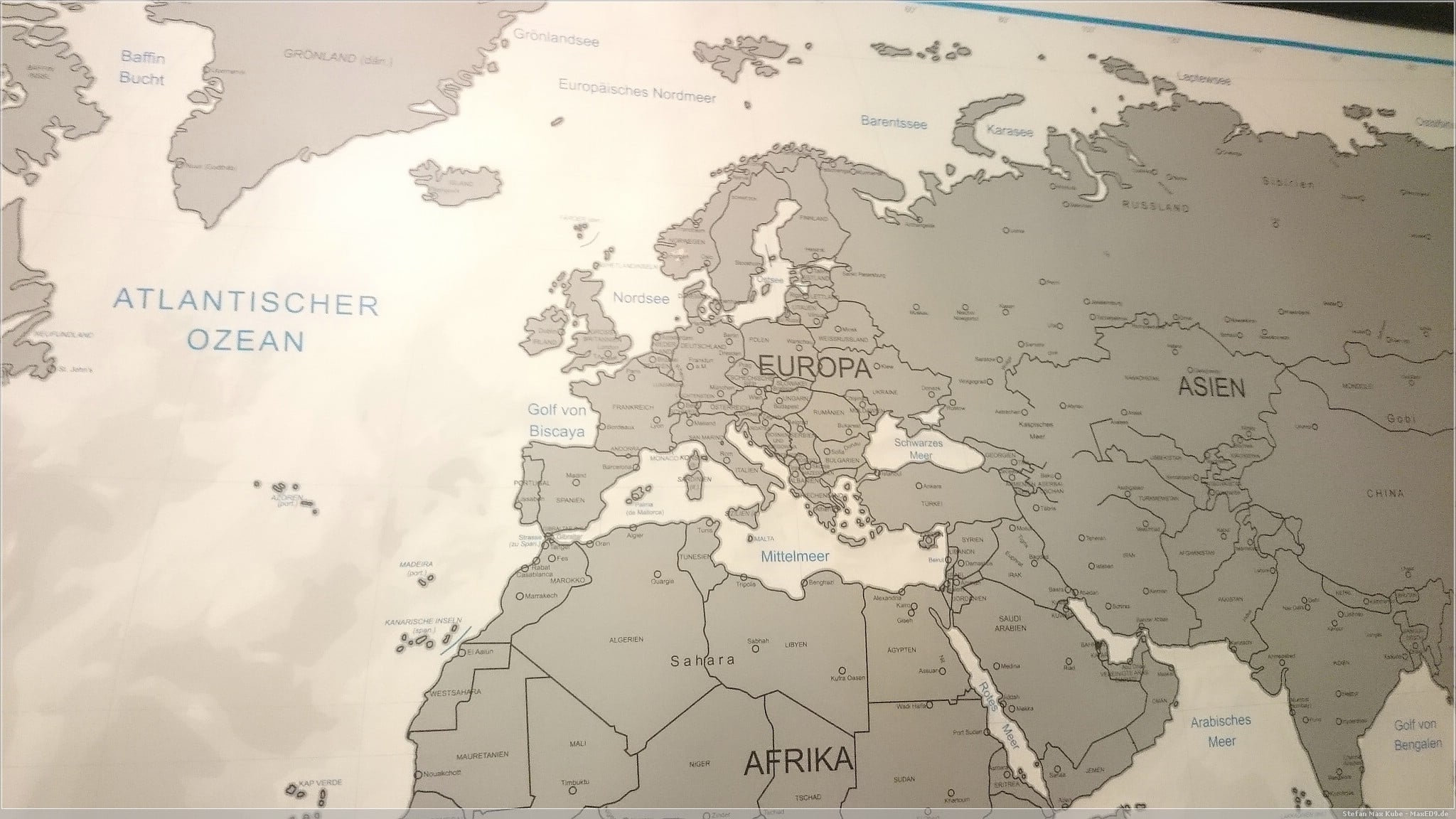 Schon länger bestand bei mir der Wunsch, die bereisten Länder auch optisch irgendwie an die Wand zu bringen. Eine normale Weltkarte mit Pins wollte ich jedoch nicht, blieb also eigentlich nur eine Ausmal-Karte.