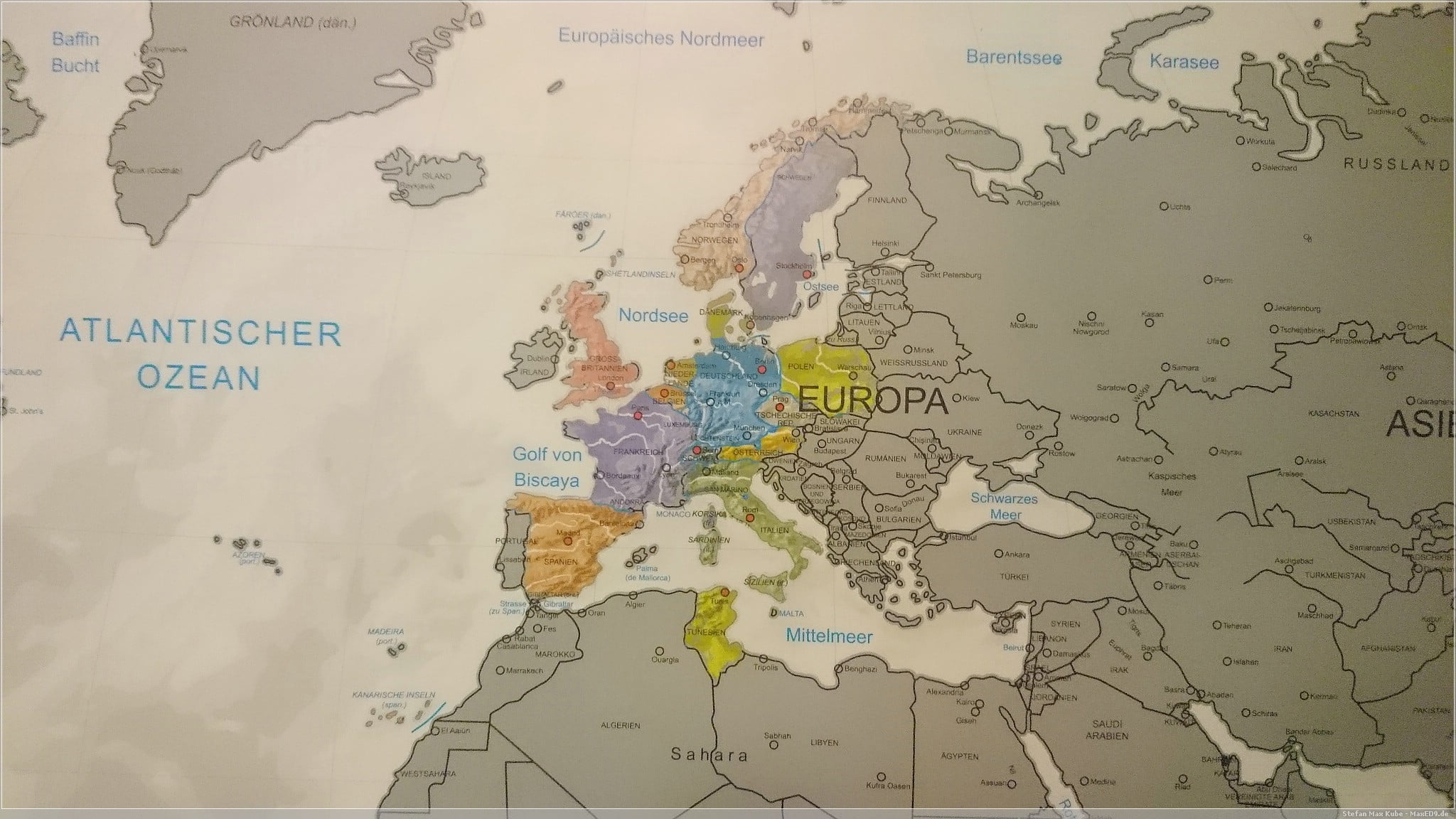 So konnte ich mittlerweile einiges in Europa und ein Fitzelchen in Nordafrika freirubbeln. Dabei kommen nicht nur die farbigen Länder zum Vorschein, sondern auch ein minimales Berg- und Flussrelief wird sichtbar.