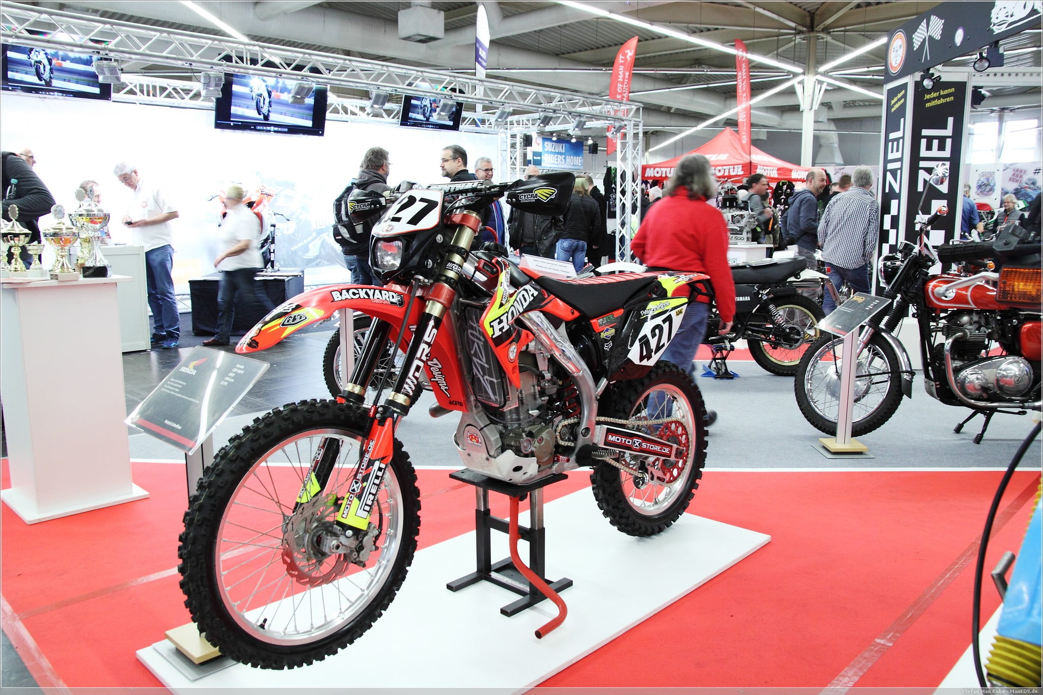 Neben den großen Fahrzeug Herstellern von A wie Aprilia bis Z wie Zero Motorcycles, waren natürlich auch jede Menge Klamotten- und Zubehörstände, als auch Vereine und Reiseveranstalter vertreten. Daneben gab es diverses Unterhaltungsprogramm wie Modenschau, Fahrzeugvorstellungen und Actionprogramm rund ums Thema Motorrad.