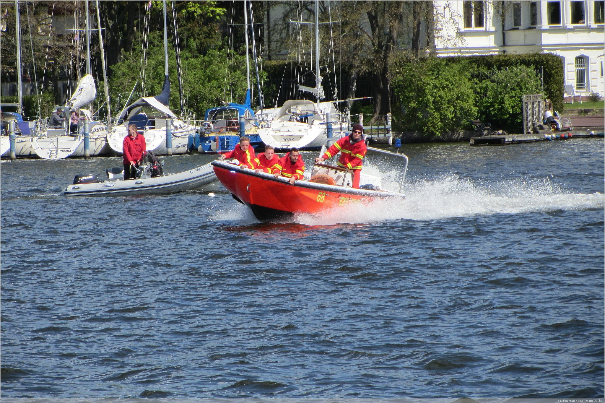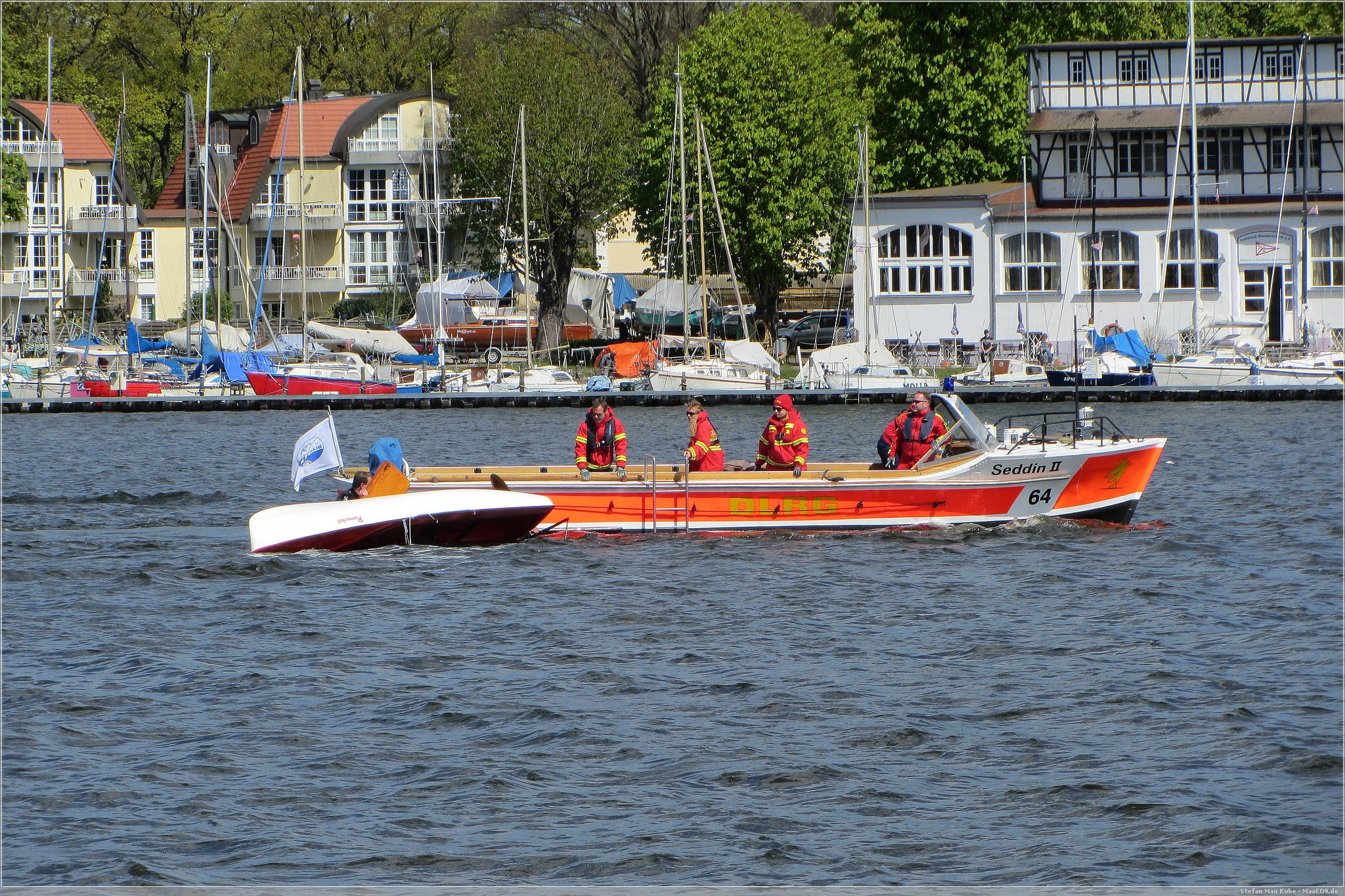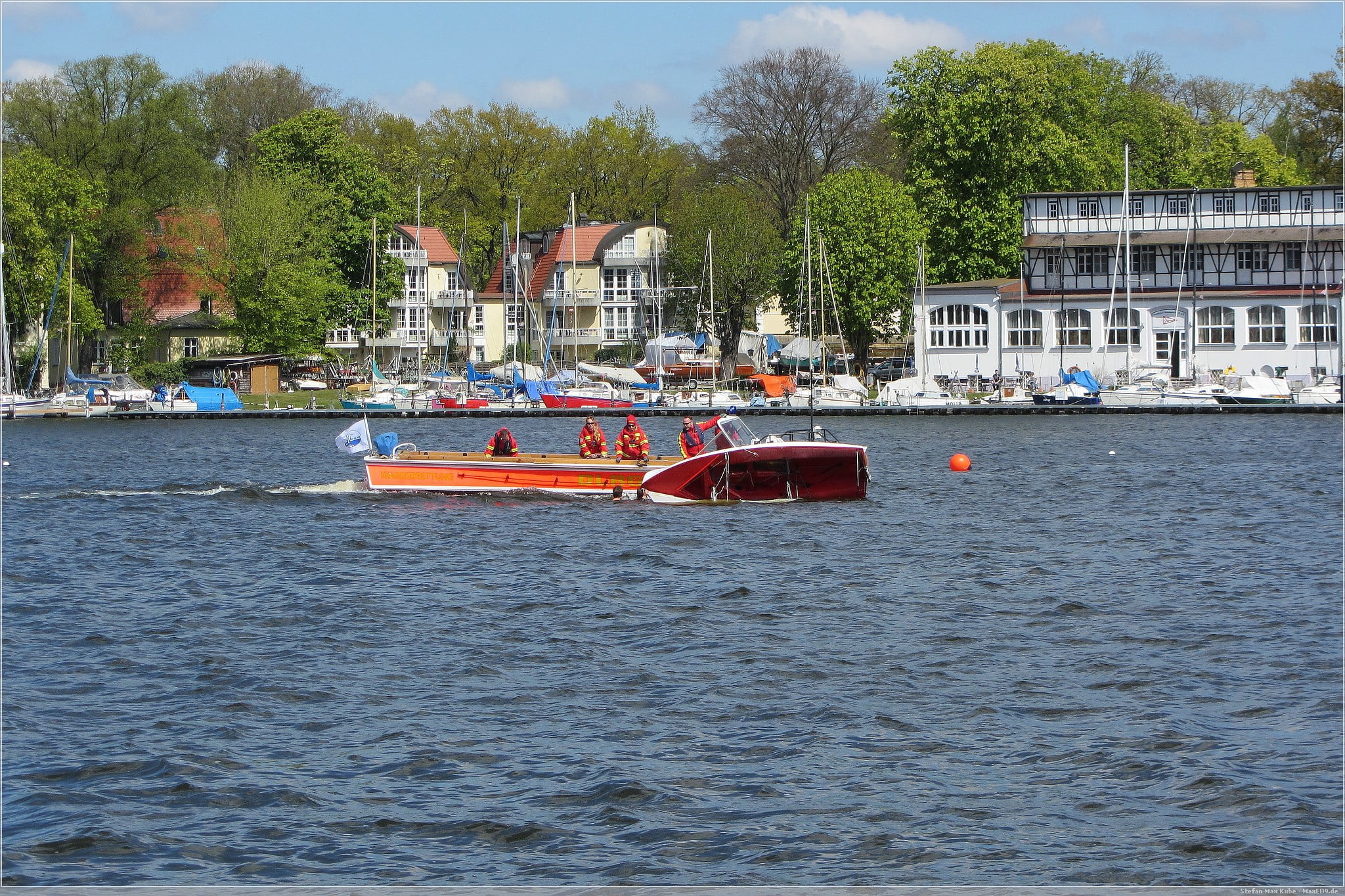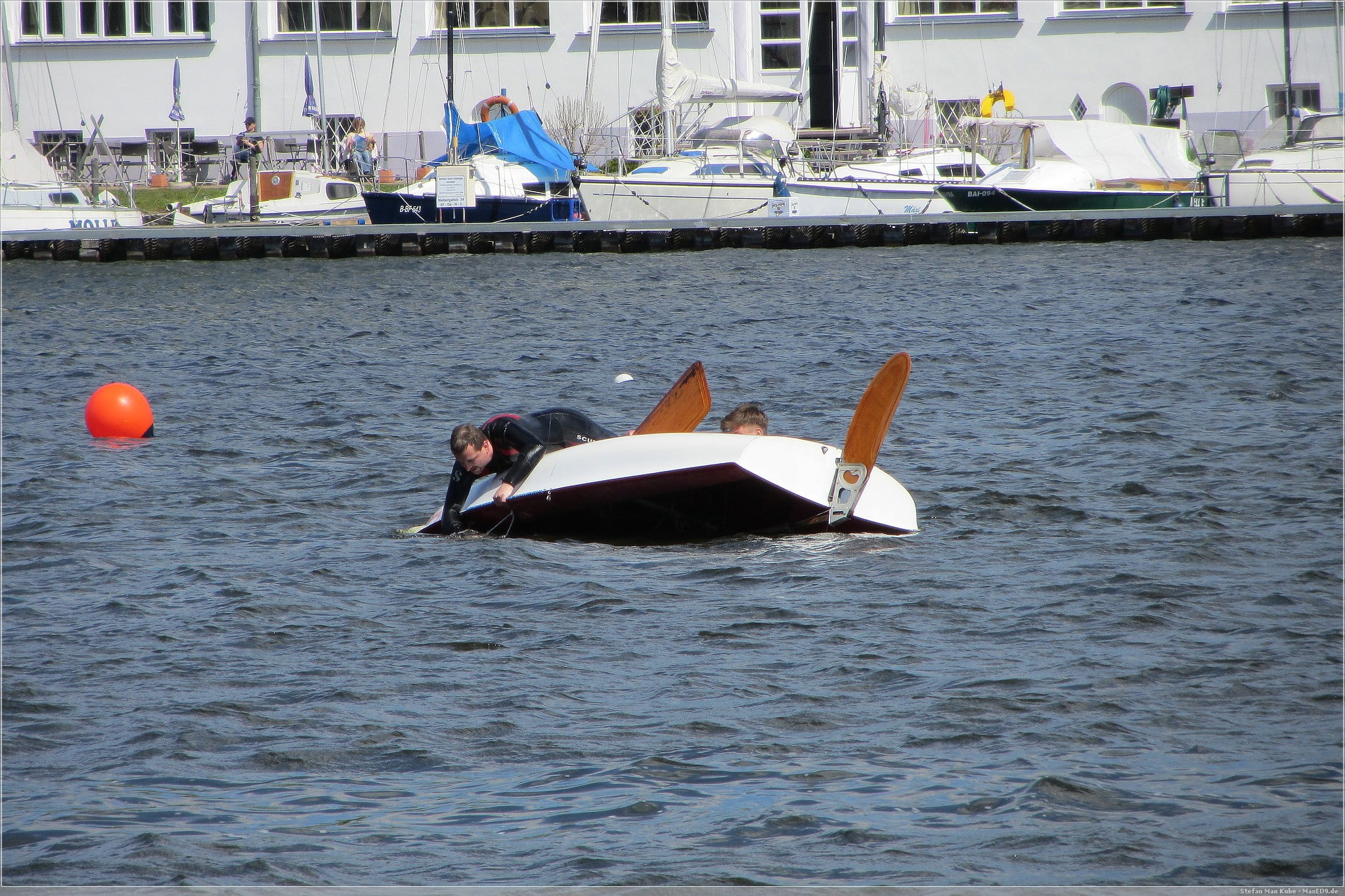 Bei einer Lufttemperatur von 13°C und einer Wassertemperatur von 10°C war das sicherlich nur wenig vergnüglich für die zu ‚Rettenden‘, vor allem für den einen, der ohne Neoprenanzug ins kühle Nass springen musste.