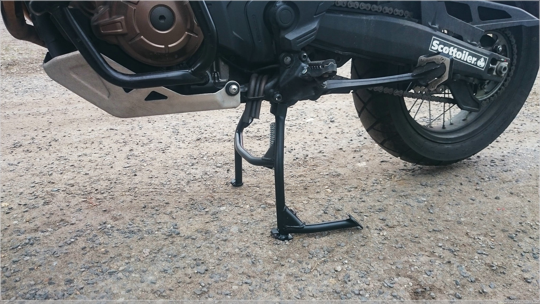 Zu guter Letzt durfte es noch ein Hauptständer von SW-Motech sein, hier war ich froh, dass Jony zufällig Zeit hatte. Denn bei der Federmontage hätte ich vermutlich fluchend aufgegeben. Aber zuzweit ging es recht zügig und nahezu problemlos. Einhängen, festschrauben und die Feder (ohne Spezialwerkzeug) einhängen. Halbe Stunde Arbeit und nicht unpraktisch wenn man mal ein Rad ausbauen muss.