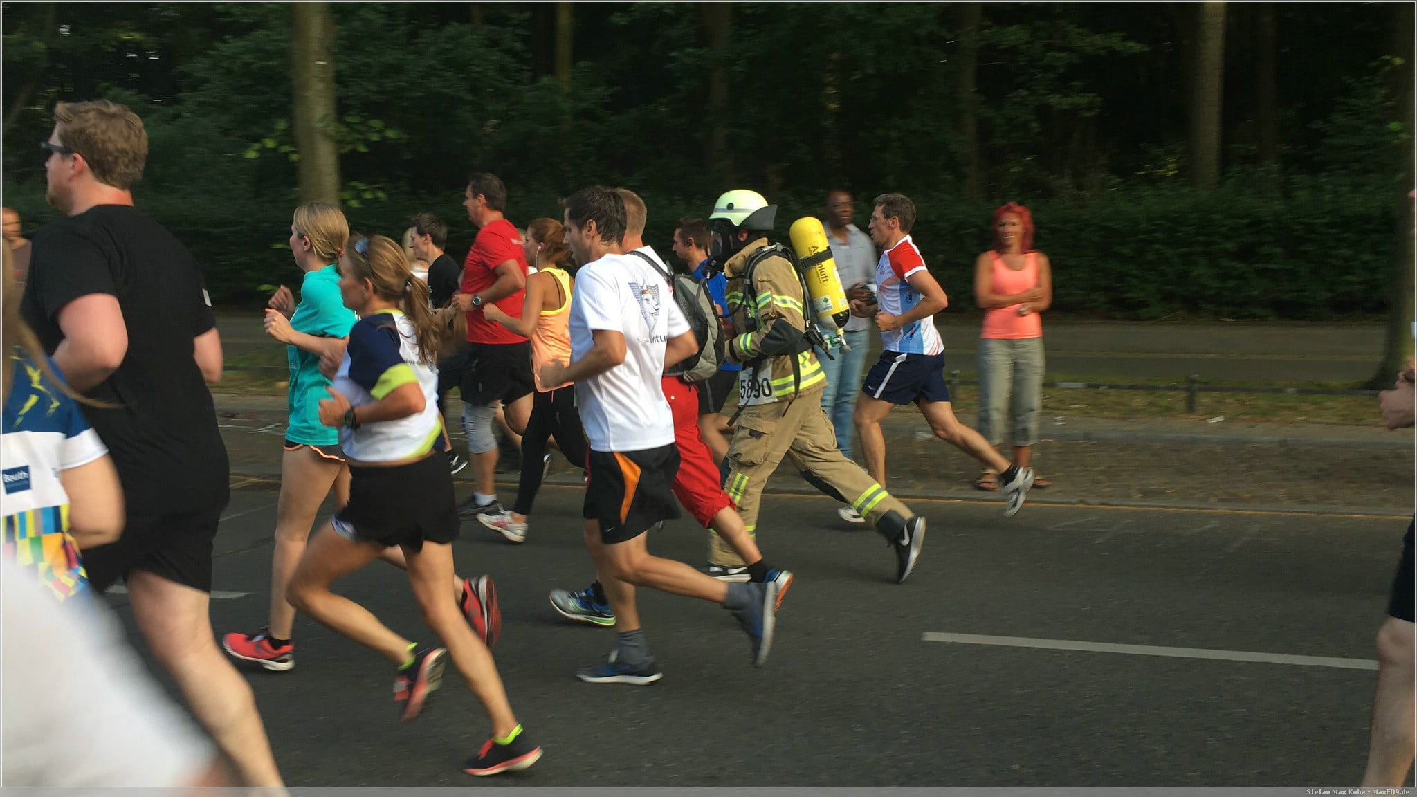 Die verrückte Feuerwehr lief auch hier mit und wie die Retter es gerne tun, in kompletter Arbeitskleidung.