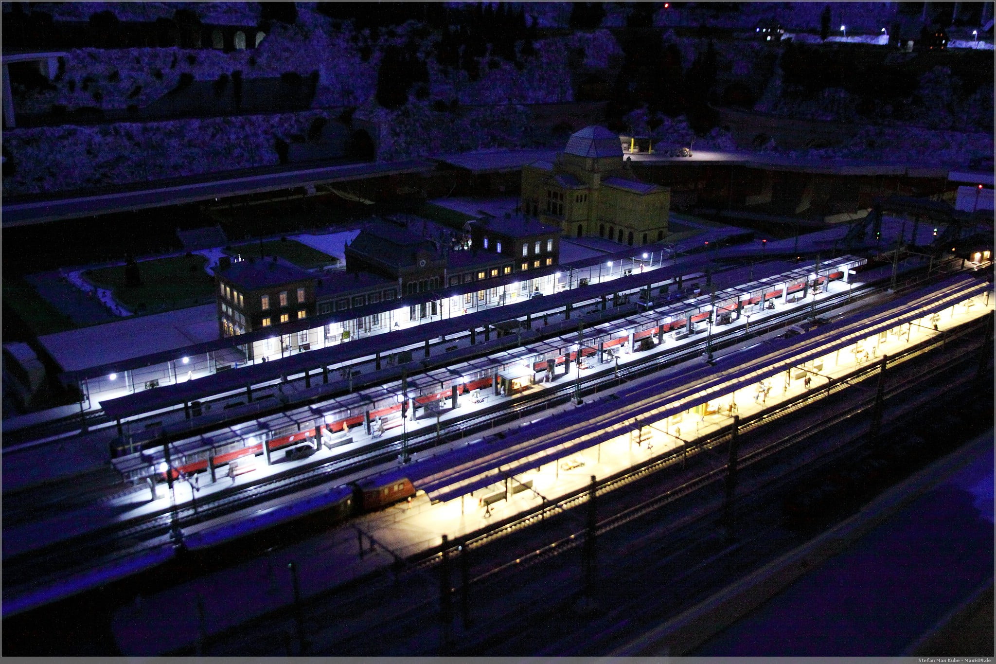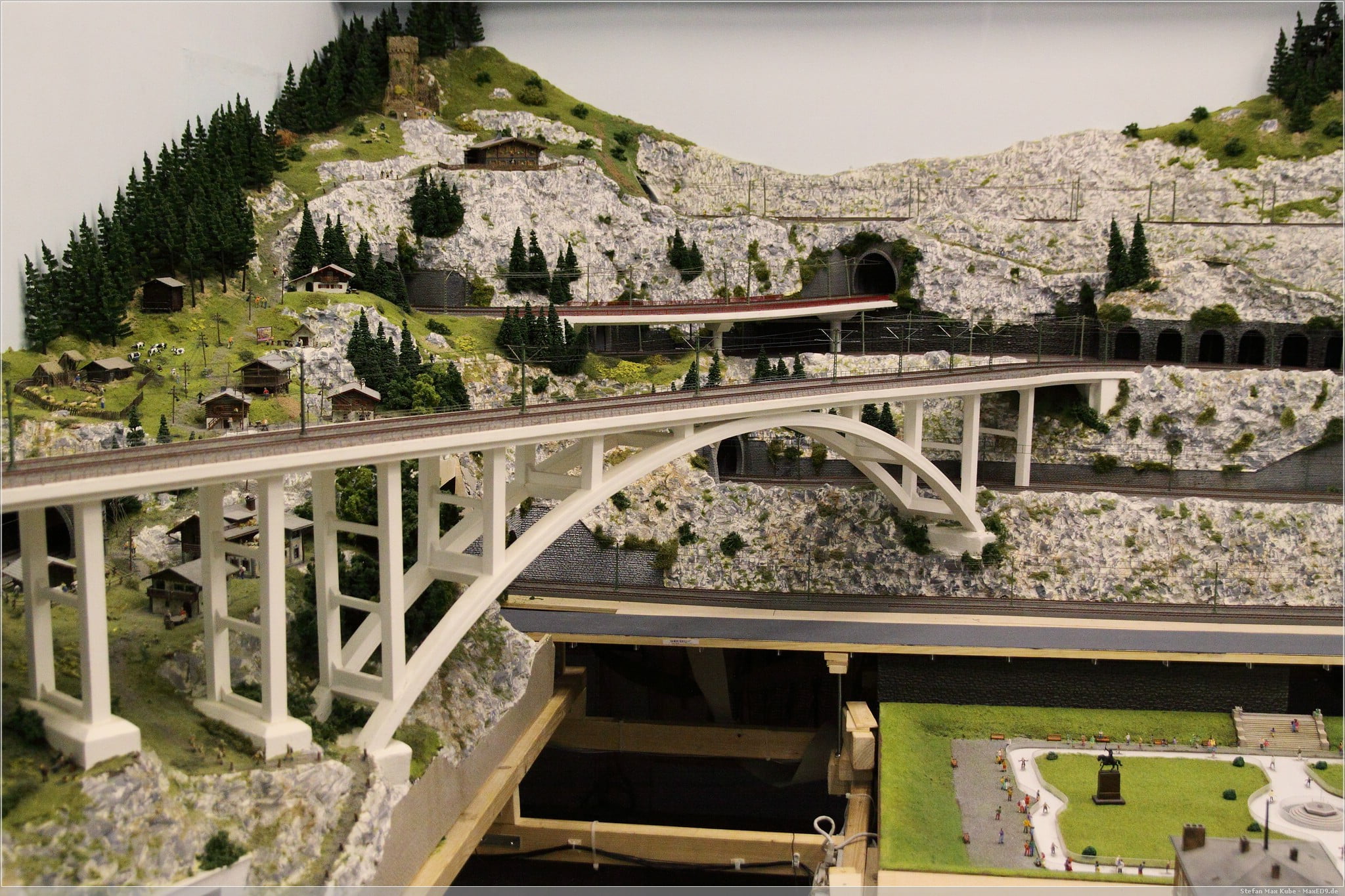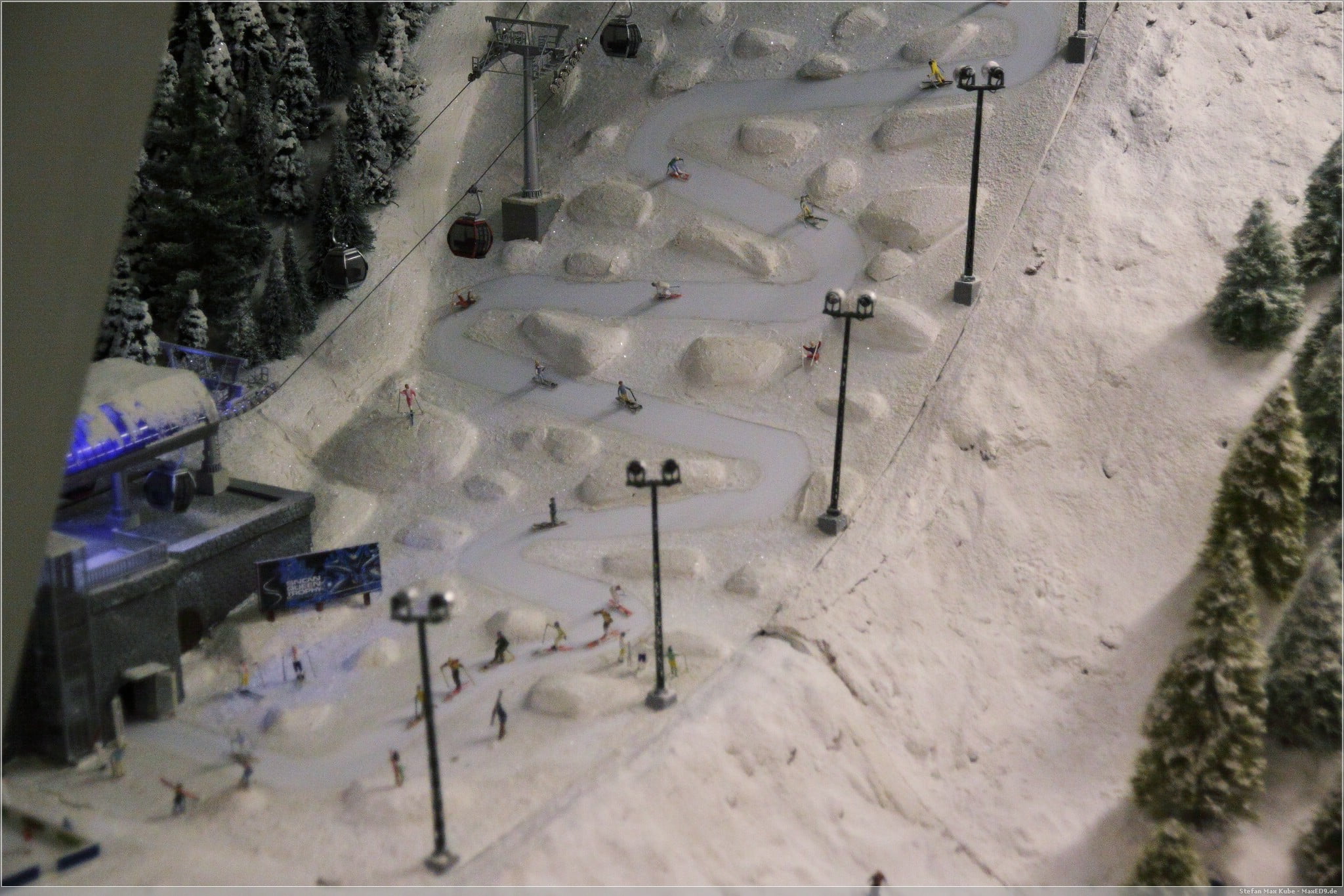 Für einen umgerechneten Eintritt von ca 2,70€ bekommt man hier eine noch kleine, aber liebevolle Anlage zu sehen, die sich auch noch im Aufbau befindet. Neben Tag und Nachtwechsel gibt es hier auch Wetterwechsel, so kann es auch mal gewittern und regnen. Neben fahrenden Zügen auf mehreren Ebenen, auch unter den Füßen, bewegen sich hier auch viele Mini-Menschen. So gibt es eine Eislaufbahn, einen Skiabfahrtsberg und sogar einen Paraglider.