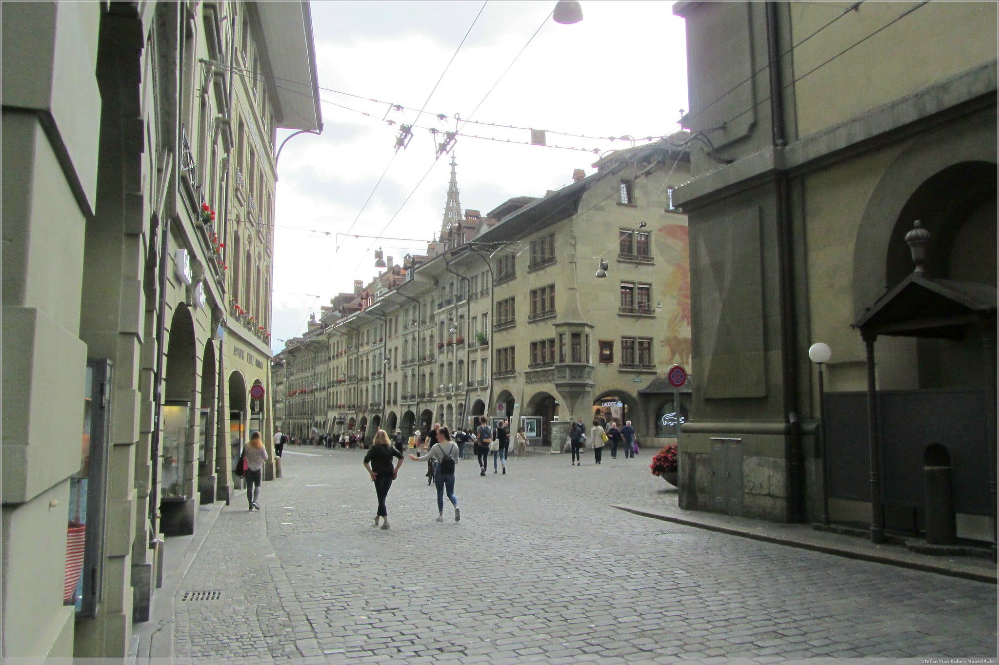 Das besondere hier an Bern sind die Laubengänge. Sie ermöglichen es an den Geschäften trockenen Fußes entlang zu schlendern.