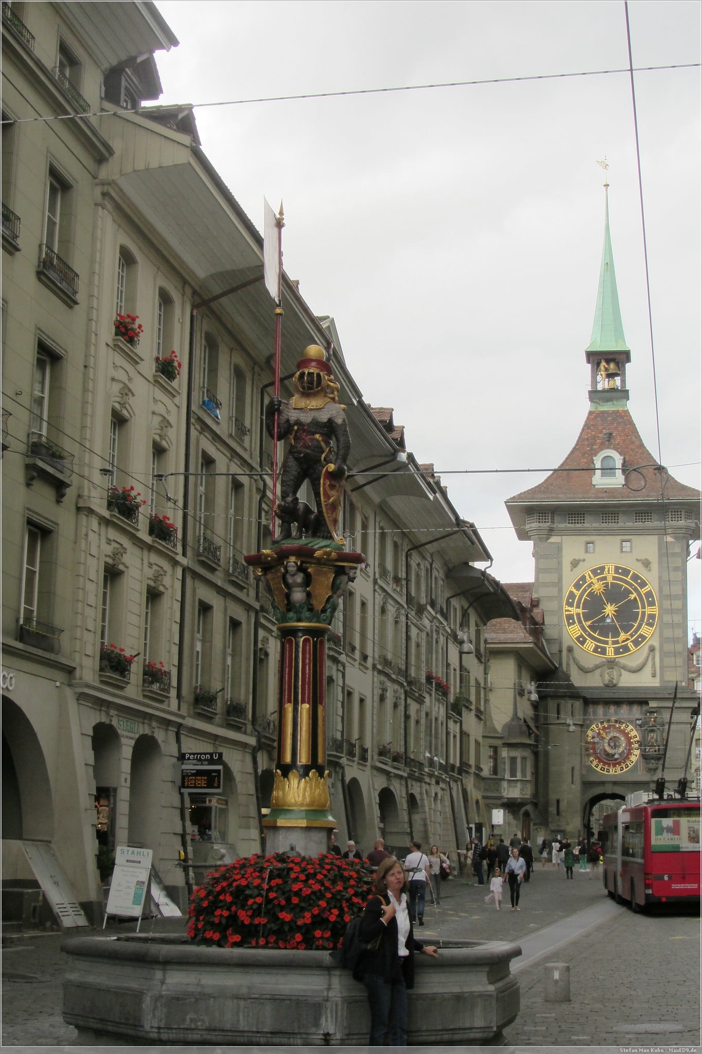 Danach ging es kreuz und quer durch die Altstadt, vorbei an den vielen kleinen Türmen und bunten Figurbrunnen. Davon gibt es gar reichlich in Bern.