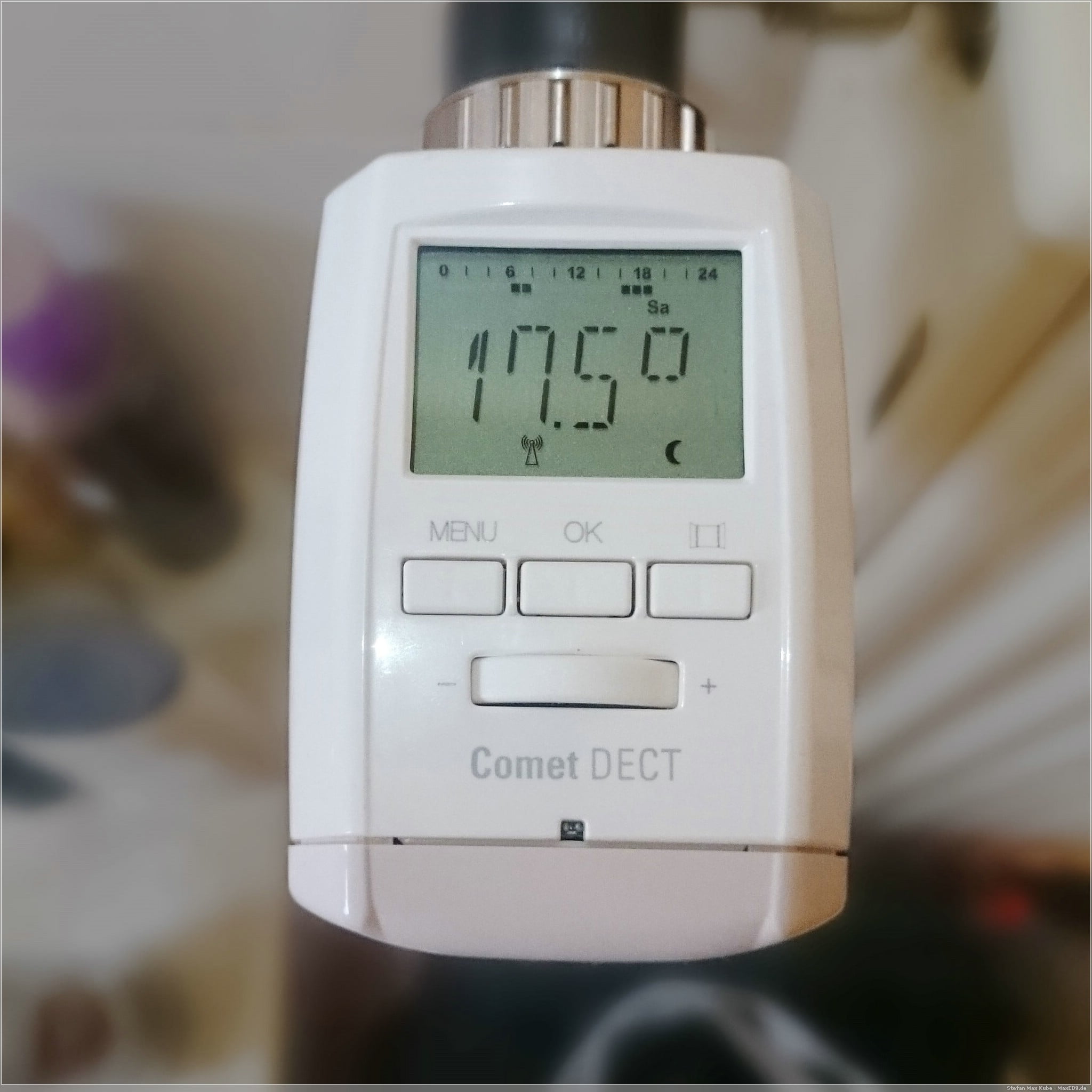 Vor 8 Jahren hatte ich unsere Wohnung mit automatischen Heizkörperthermostaten ausgestattet[1]. Schon damals nicht einfach die autarken Einzelregler, sondern mit den FHT 8 Funk-Sets von ELV, die es ebenso auch von Conrad und anderen gab.