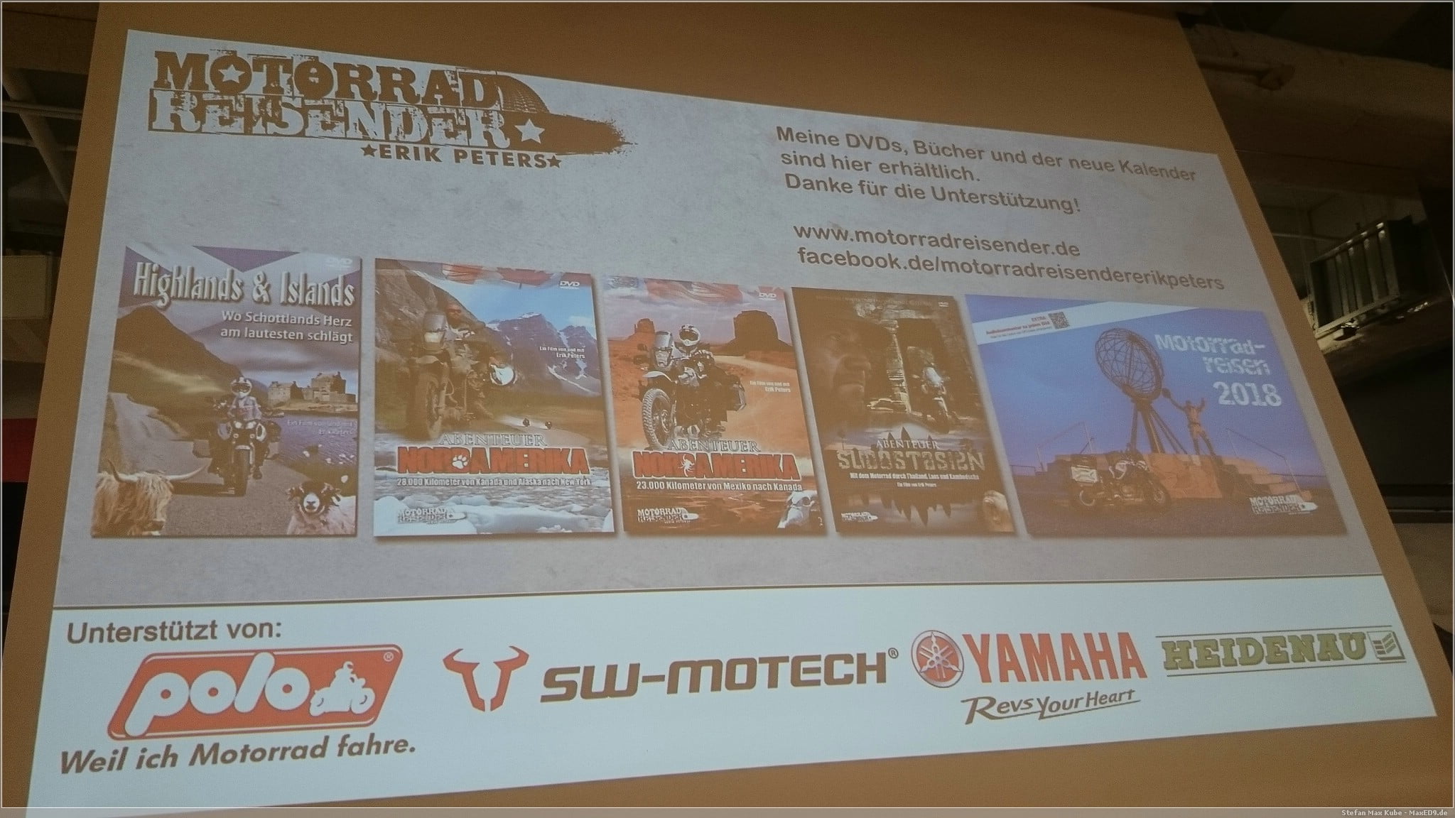 Eigentlich wollte ich ja schon vor einem Jahr mal zu einem Vortrag vom Motorradreisenden Erik Peters[1], aber damals hatte ich das mit dem Vorverkauf total verpeilt und es gab dann keine Karten mehr. Nun gut, es ging damals auch um Schottland, das kannte ich ja schon, daher war es nicht ganz so ärgerlich.