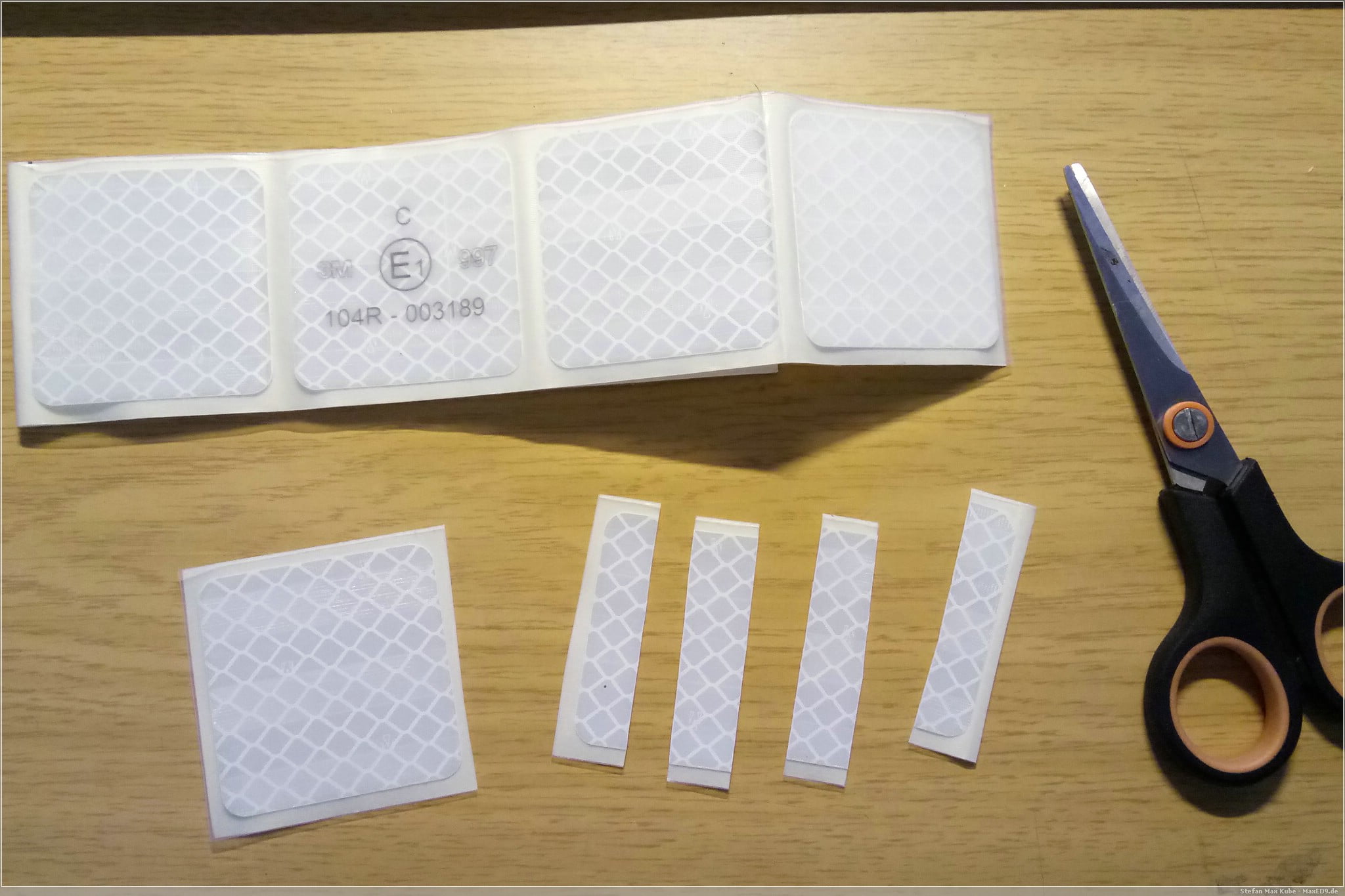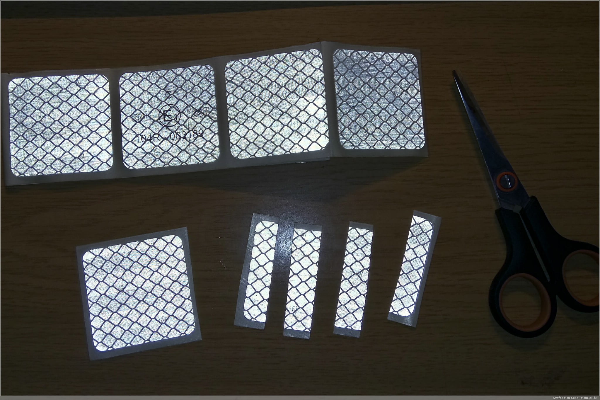 Der eigentliche Einsatzzweck dieser Folien ist die Konturmarkierung für LKW-Aufbauten bzw Planen und dafür sind diese auch mit entsprechendem E-Zeichen zugelassen (UN ECE104). Auf Grund der hervorragenden Reflexionseigenschaften eignen sich die 55mm Quadrate aber eben auch an anderer Stelle für die passive Sicherheit.