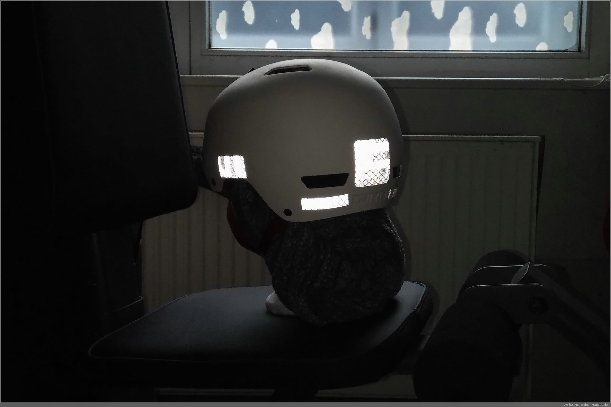 Und da ich schon so gut dabei war mit dem Aufkleben, habe ich dem Helm auch gleich noch ein paar Reflektoren verpasst.