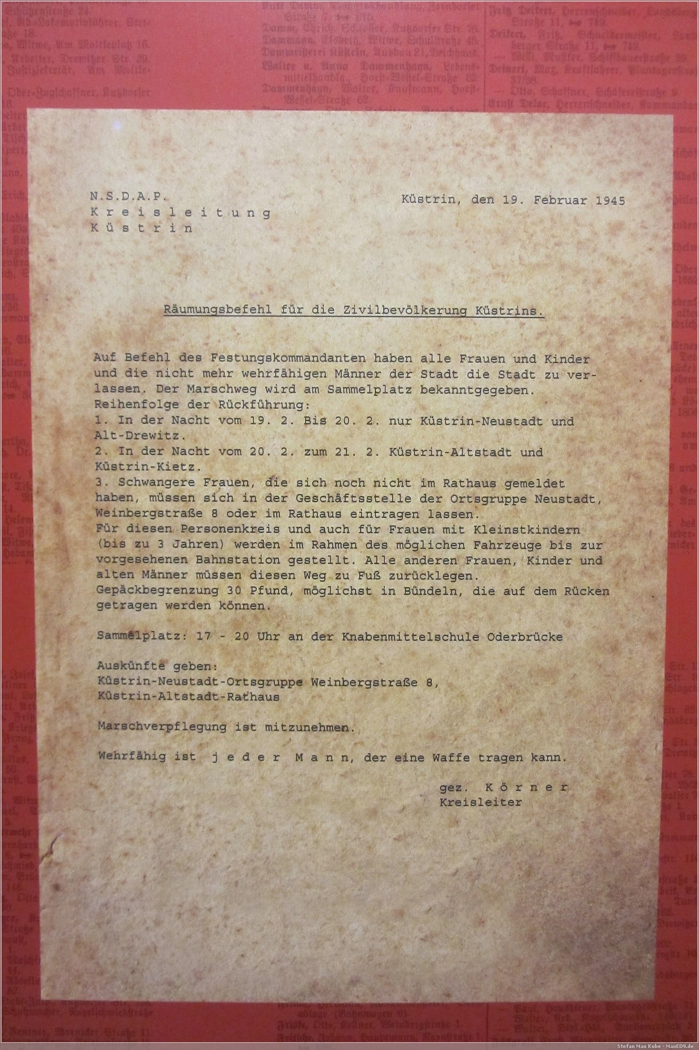 Die Festung Küstrin war vom 16 Jahrhundert bis zum Anfang der 20. Jahrhundert zum Schutz der Residnezstadt Küstrin errichtet worden. In der Zeit zwischen den Weltkriegen wurde östlich der Altstadt die Befestigungsmauer abgerissen, um eine neue Straße errichten zu können, die um die Stadt herumführt. Dies ist die heutige Straße DK22.