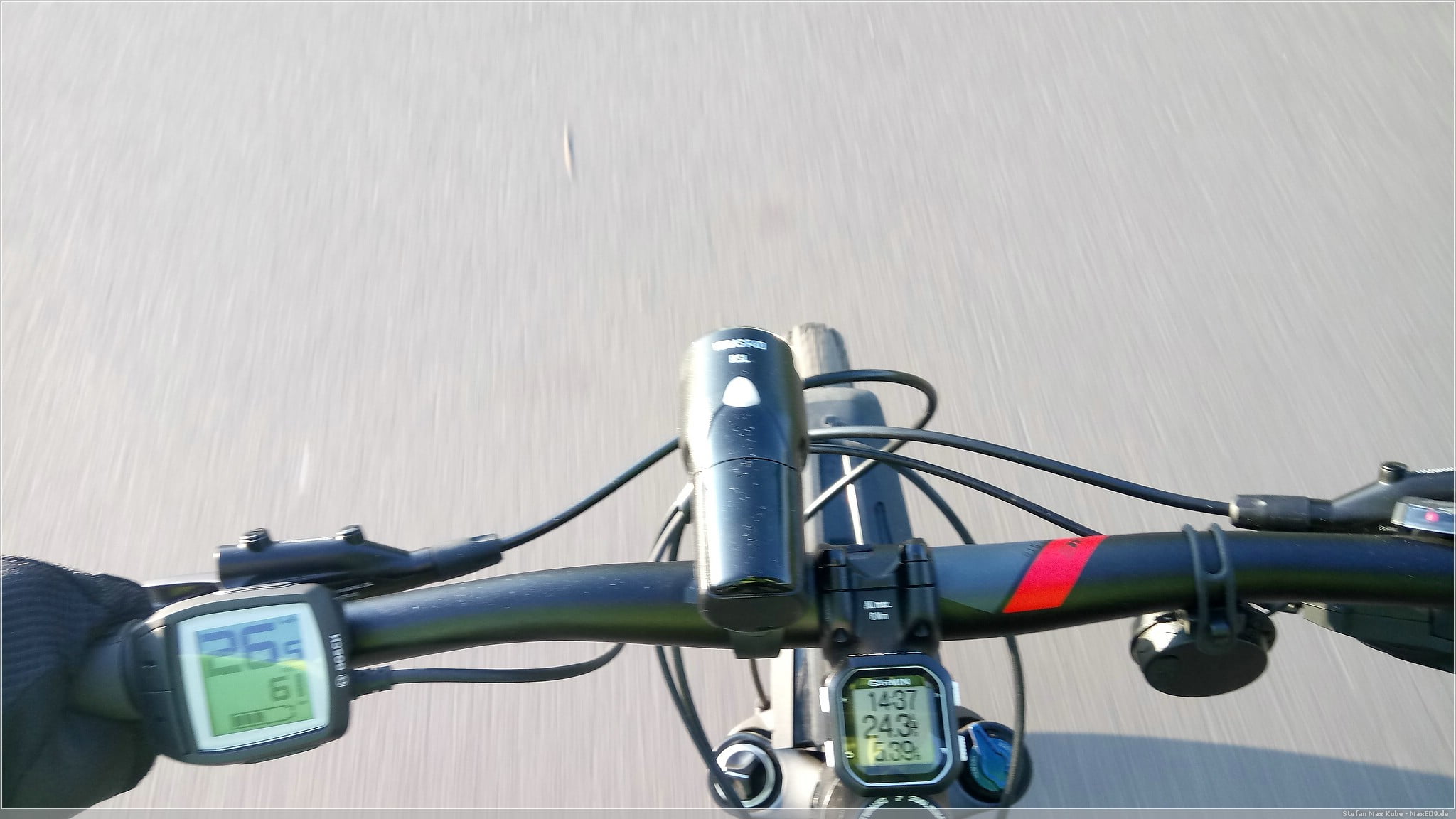 Dass die Anzeige nur Näherungswerte wiedergibt, sieht man eben auch am Tacho. Während das Purion 25km/h anzeigt, sind es beim GPS des Garmin Edge[5] knapp 23km/h. Somit endet die Motorunterstützung bereits etwas früher. Das stört mich jetzt nicht so sonderlich.