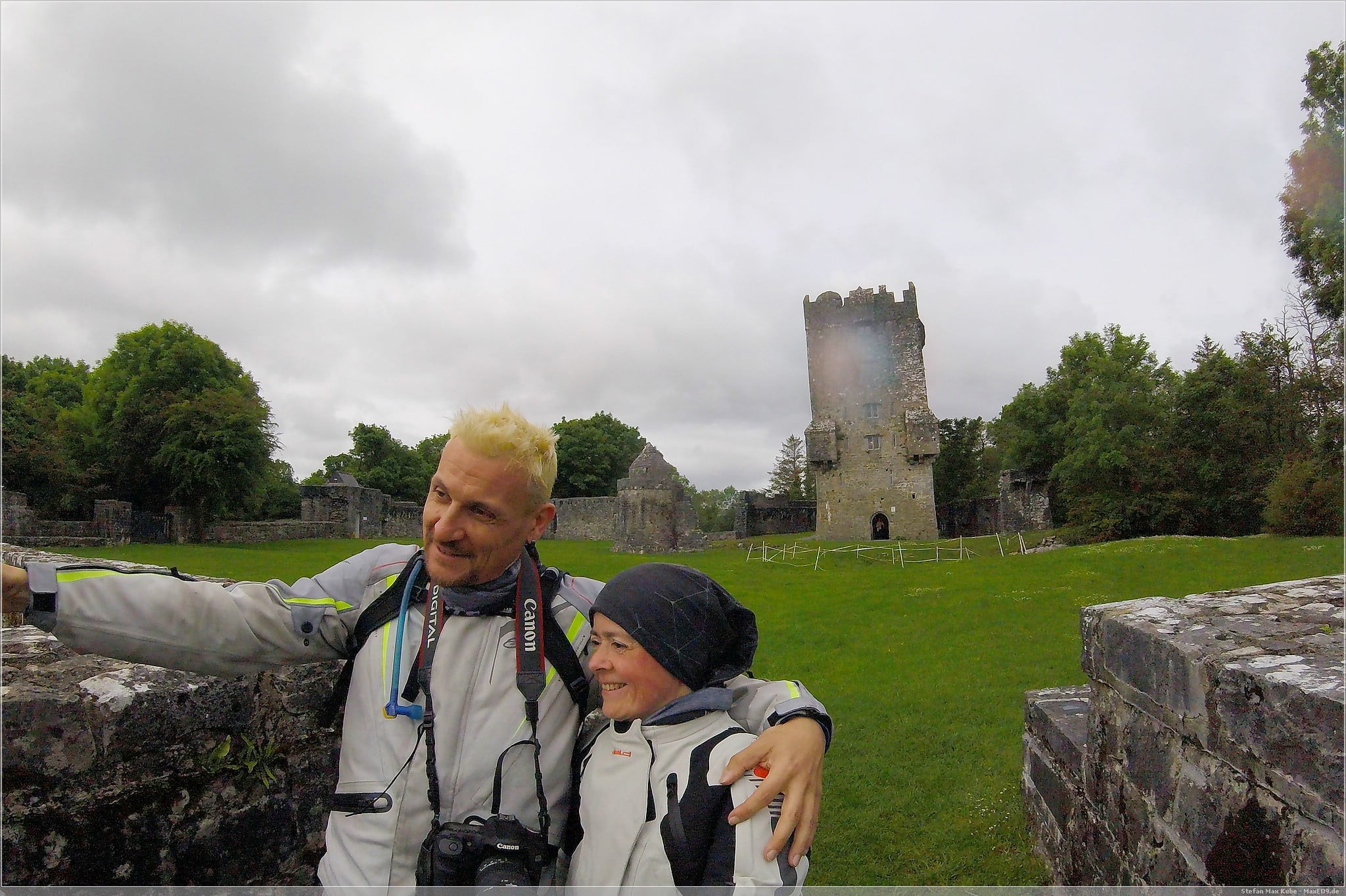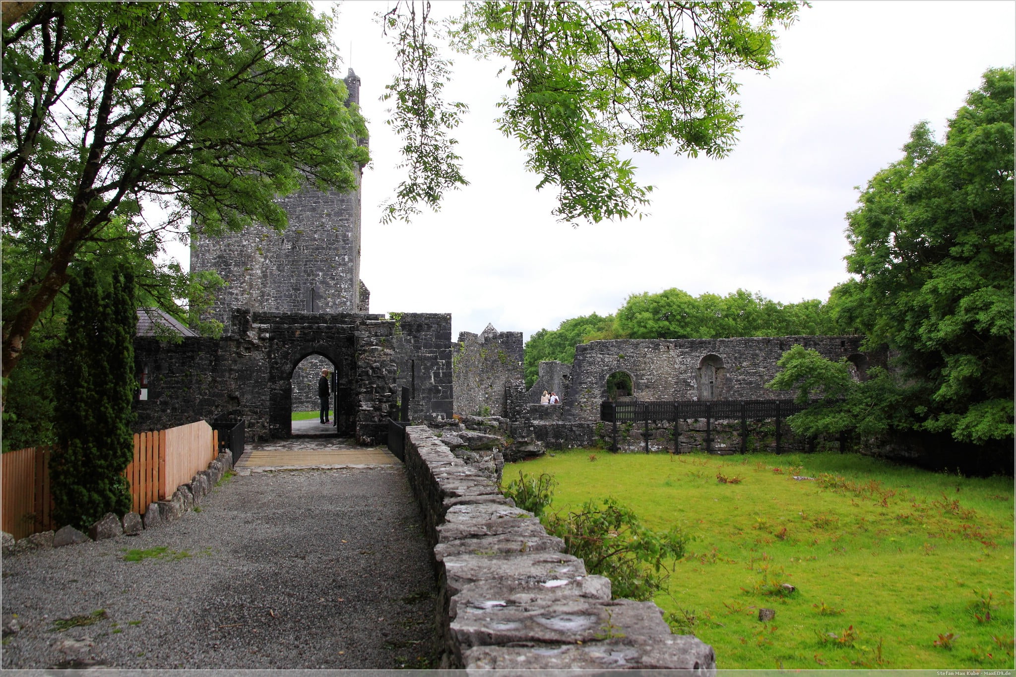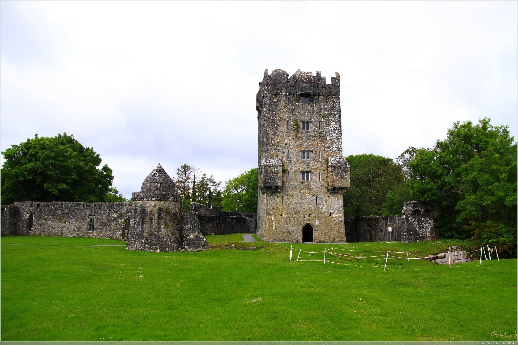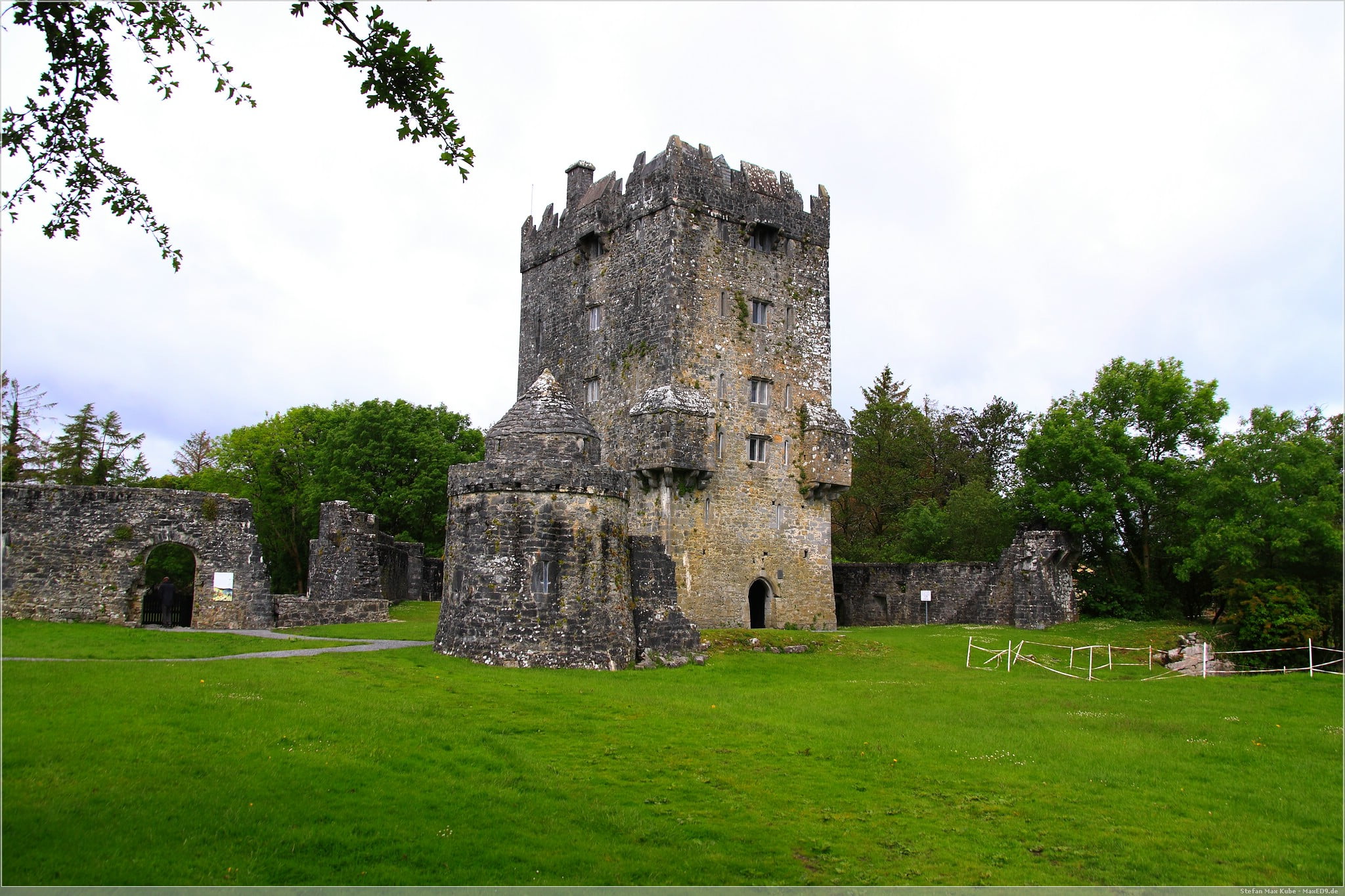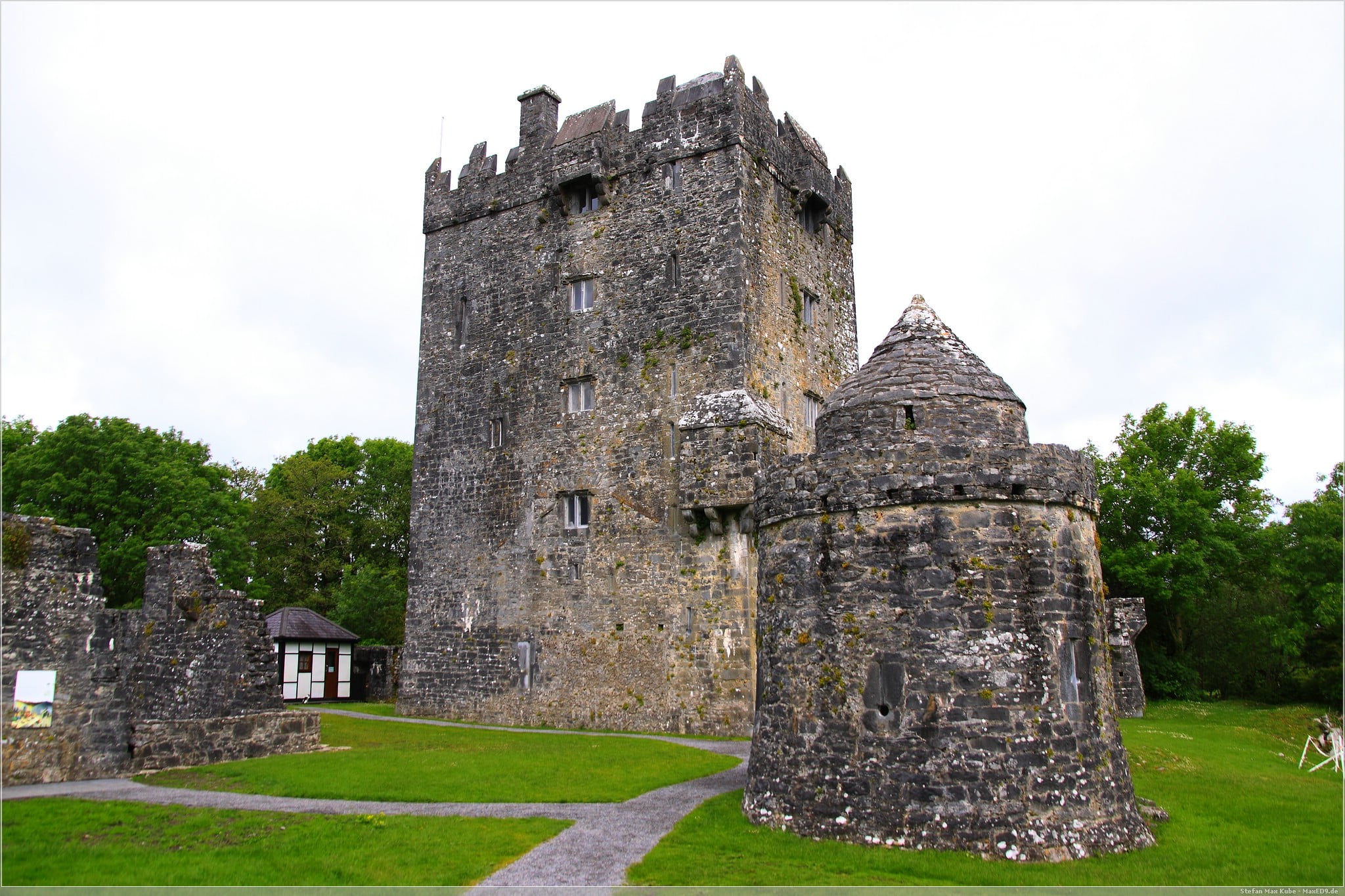 Wir parken unser Motorrad und gehen einige Meter zu Fuß bis zum Eingang der kleinen Burganlage. Die Burg ist ein gutes Beispiel für die typischen irischen Turmhäuser.