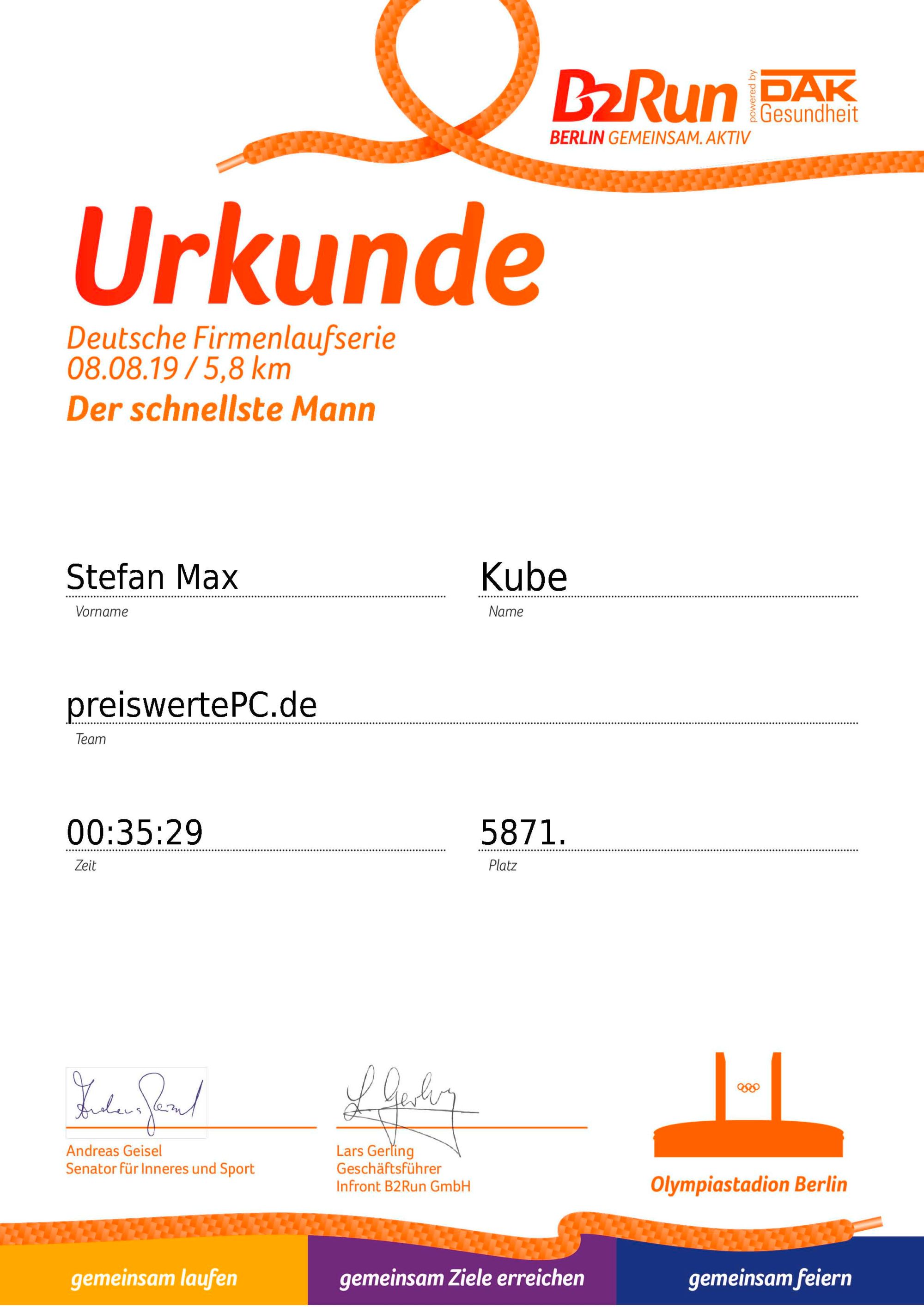 Wir starteten in der zweiten Startwelle pünktlich um 18:50 Uhr und mit einer leicht verbesserten Zeit kam ich nach gut 35 Minuten im Ziel der 5,8km langen Strecke an.
