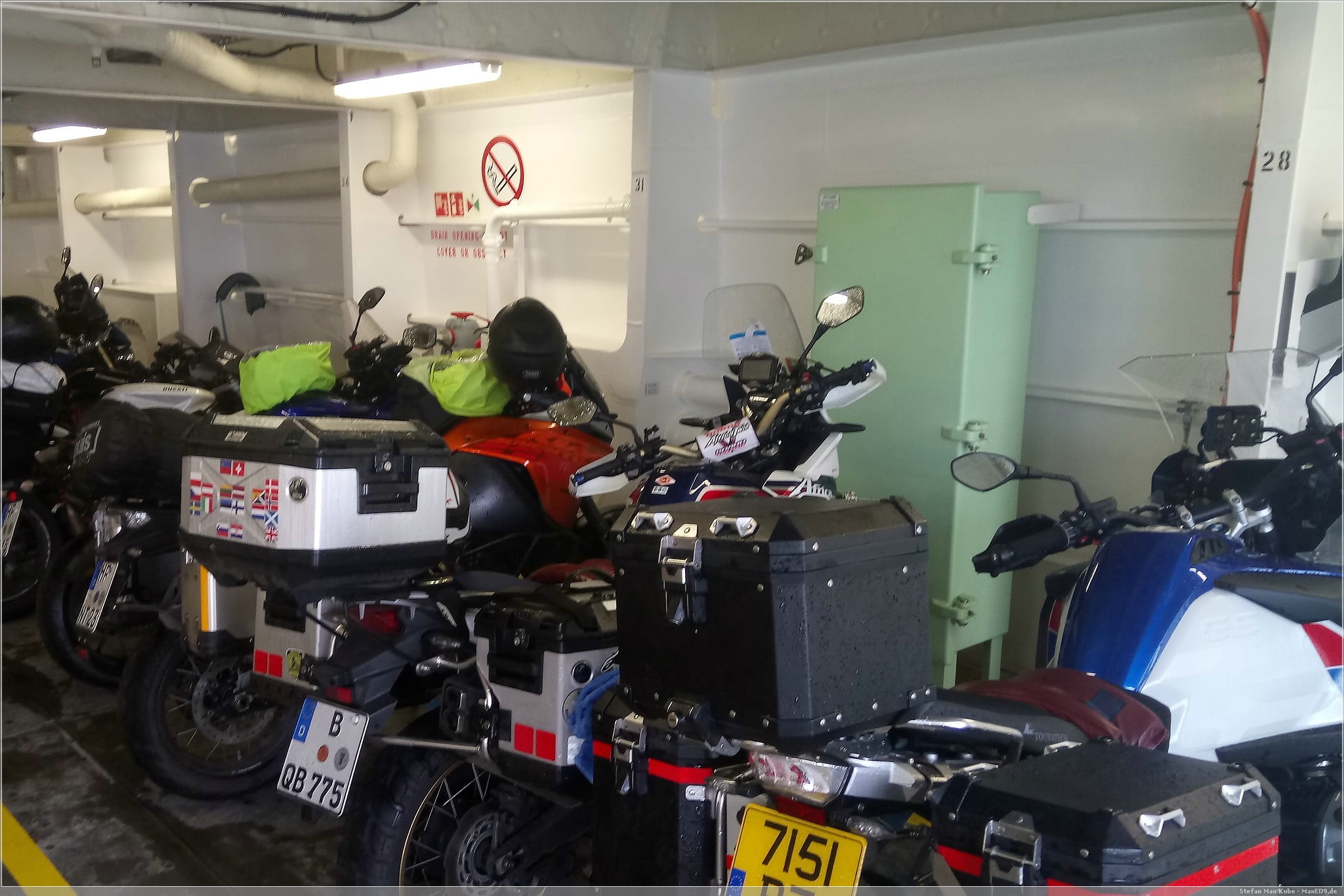 Der Regen will nicht aufhören, zum Glück geht es am Checkin schnell und wir können, wie üblich, mit dem Motorrad ganz vorne auf das Boarding warten.