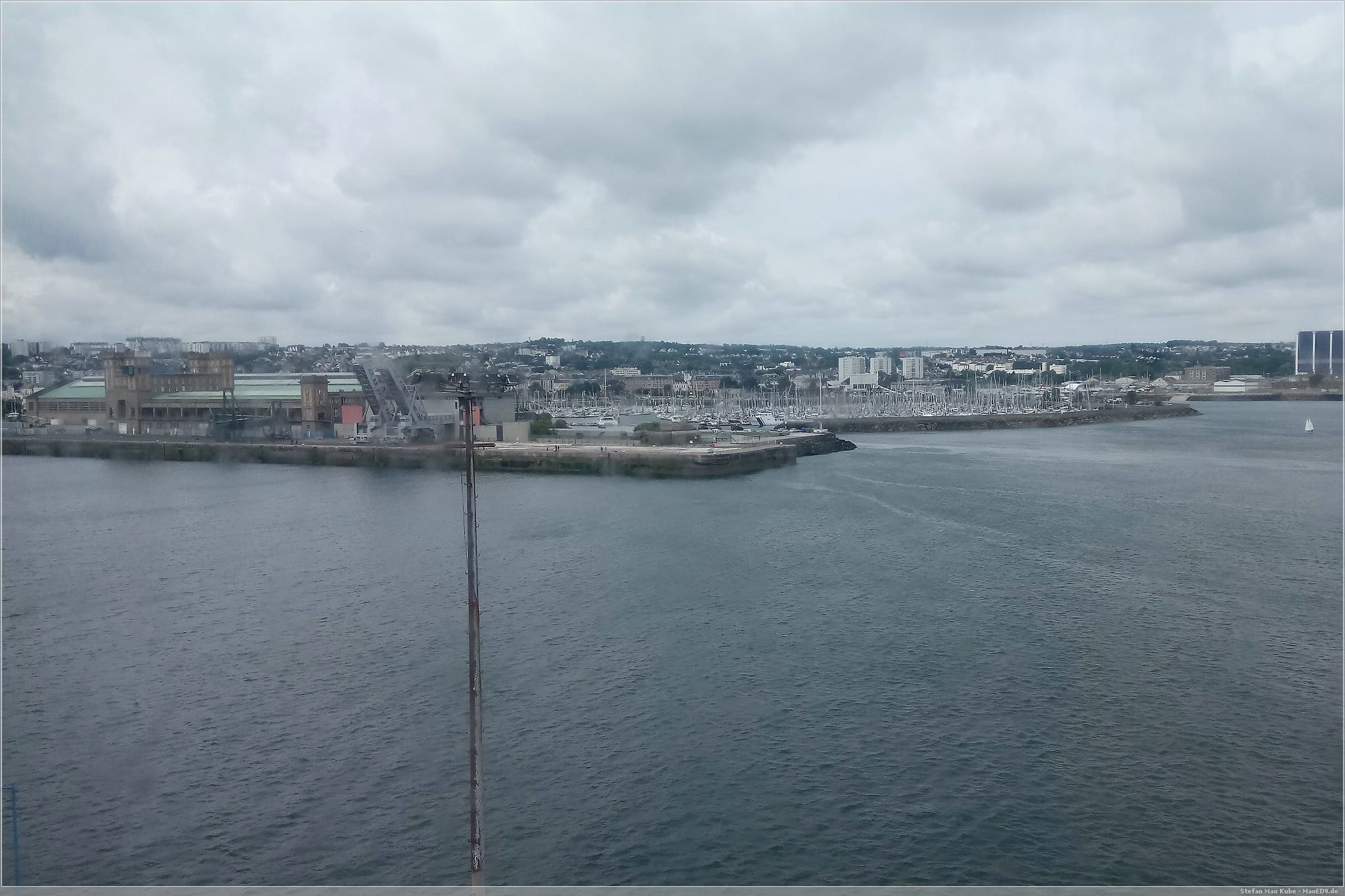 Die Fähre ist pünktlich auf Kurs. Während wir beim Frühstück sitzen, ziehen draußen noch Wolken an uns vorbei, doch in Richtung französisches Festland sind schon blaue Lücken zu erkennen.