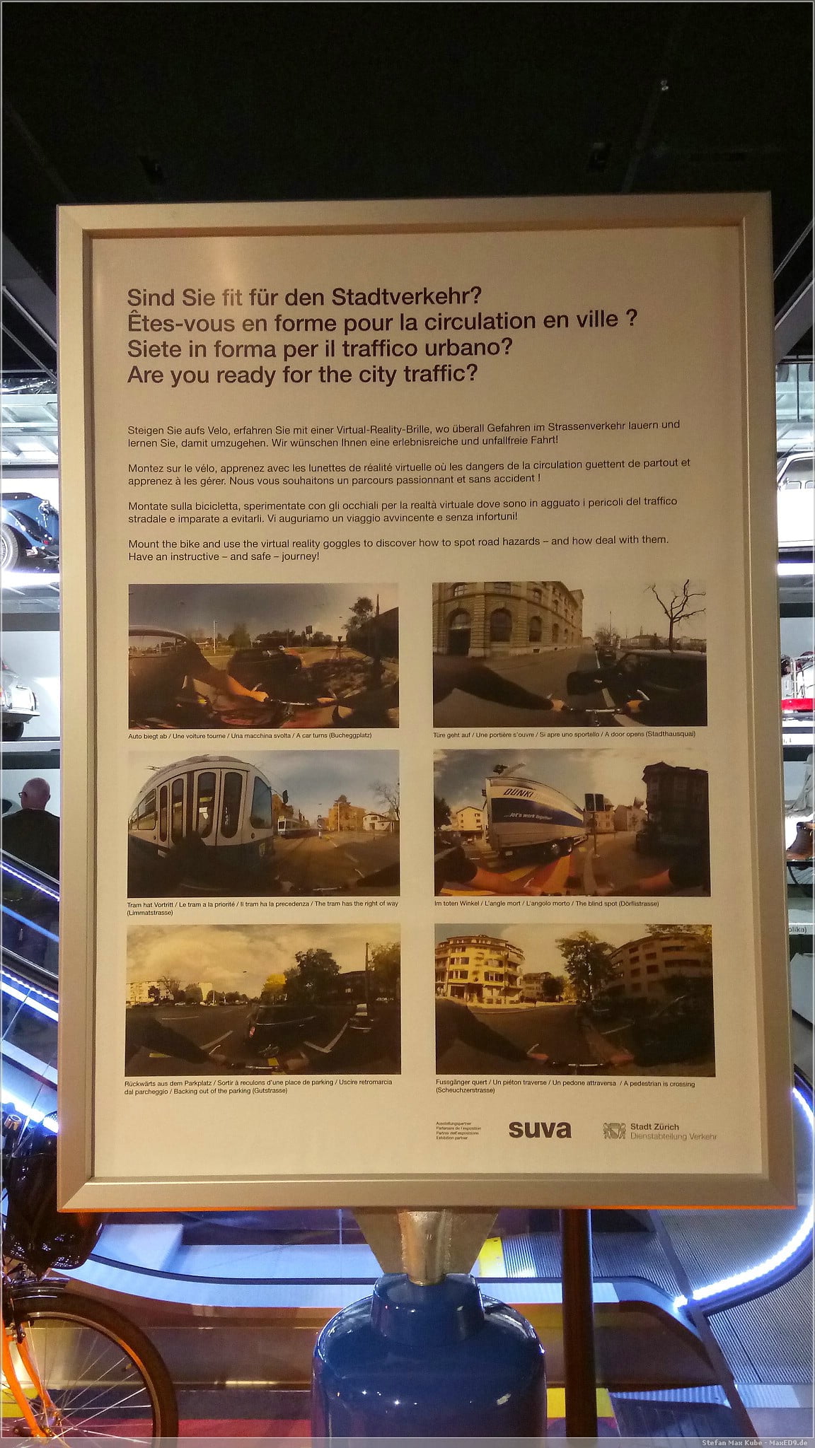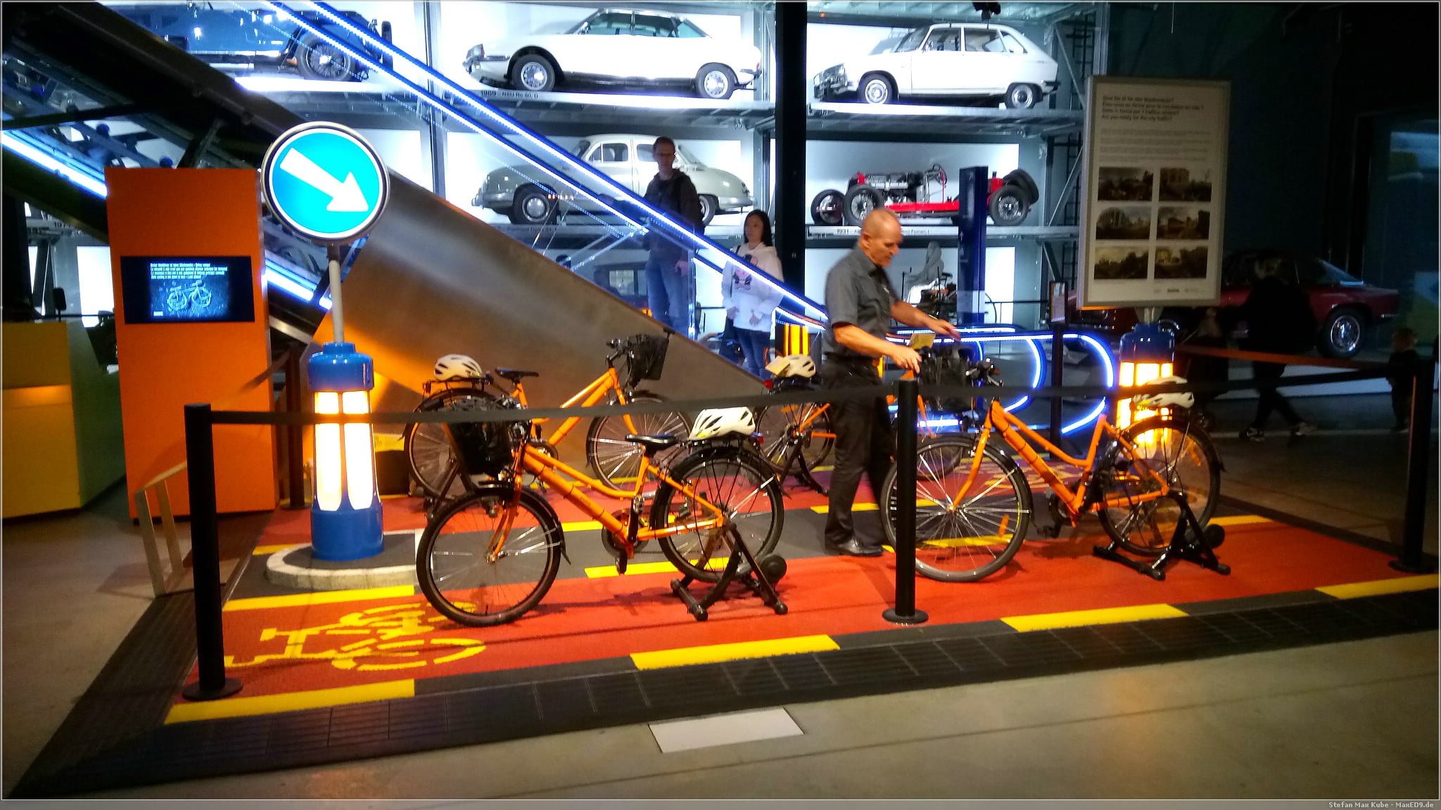 In den nächsten Hallen geht es um den Strassenverkehr und als erstes komme ich an einer weiteren interaktiven Installation an, einer VR-Radfahrt durch die Stadt. Ich beobachte andere Besucher, wie sie den virtuellen Stadtverkehr zu meistern versuchen. Denn hier war die Frage, ob man fit für den Stadtverkehr sei. Der Mitarbeiter fragte, ob ich auch mal fahren möchte, ich lehnte jedoch mit dem Hinweis ab, dass ich täglich durch Berlin fahre und er verstand.