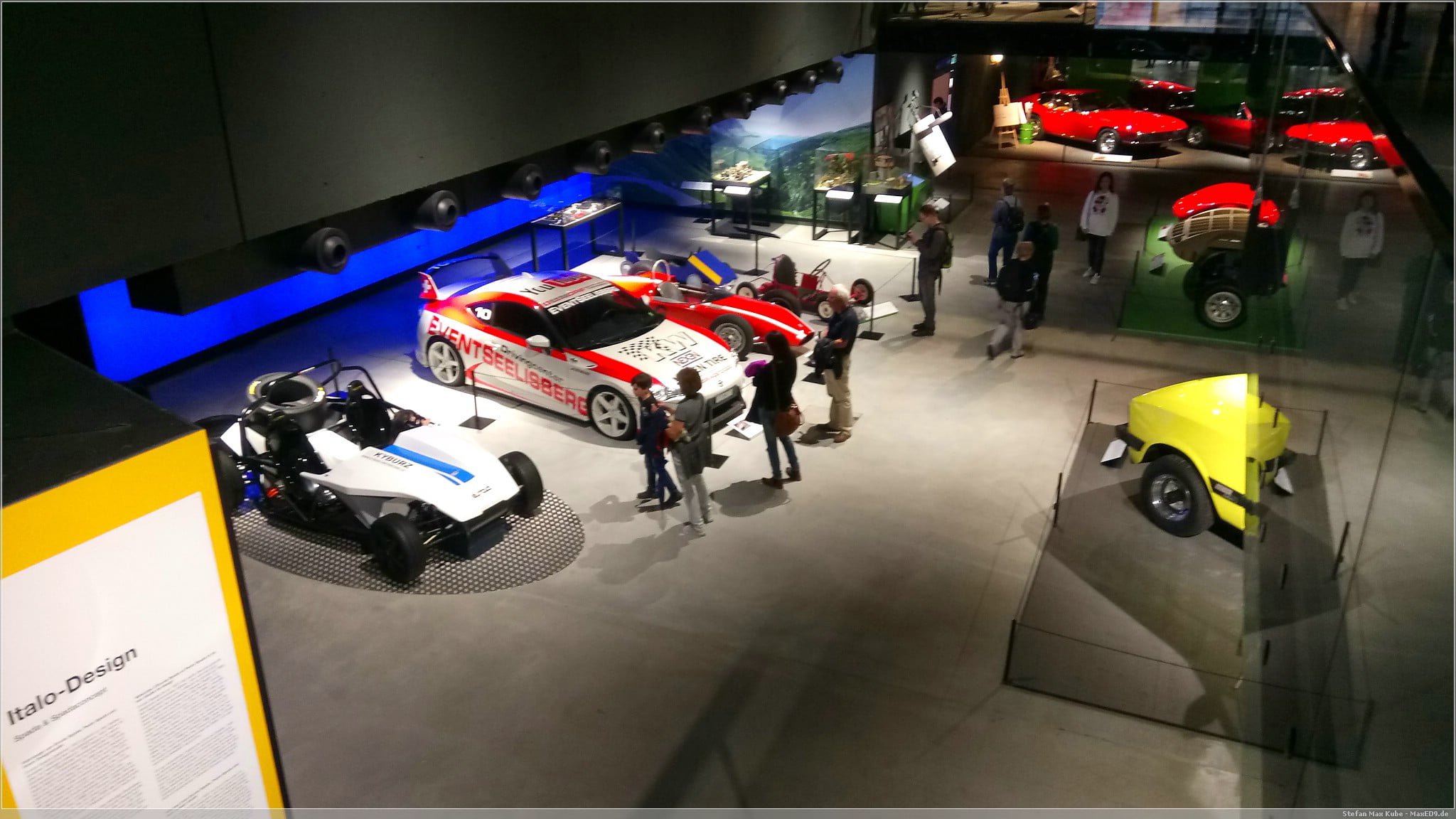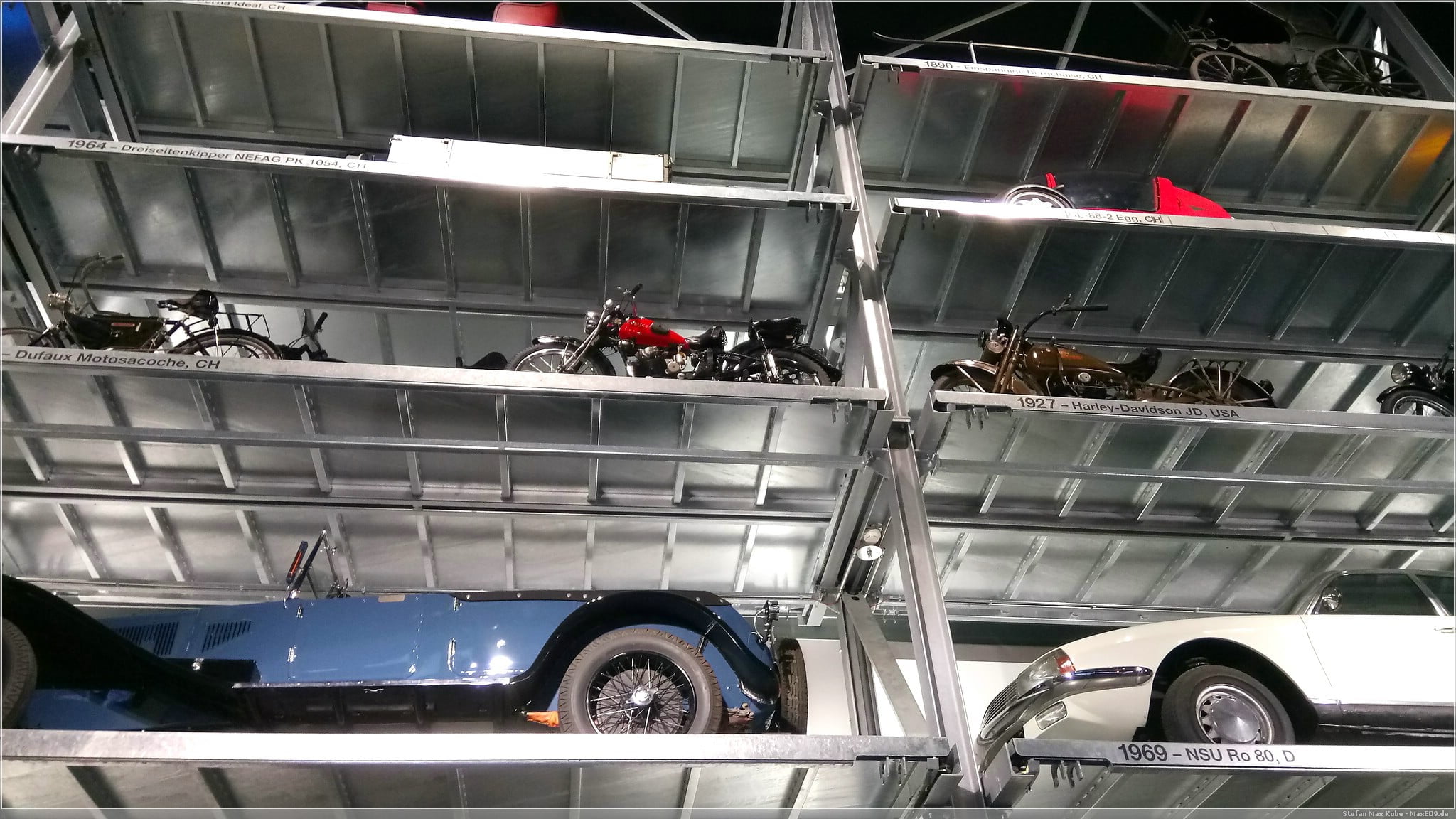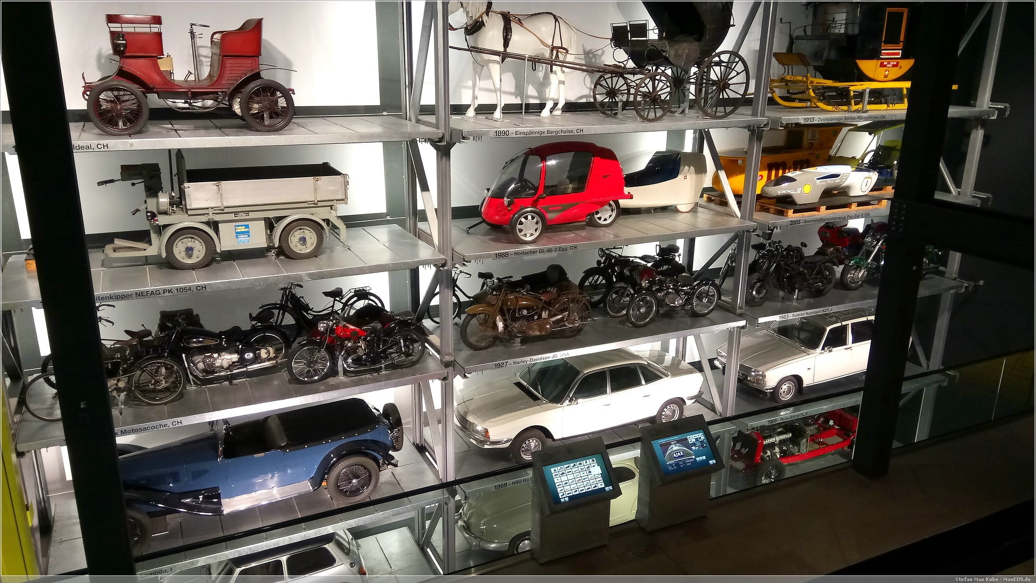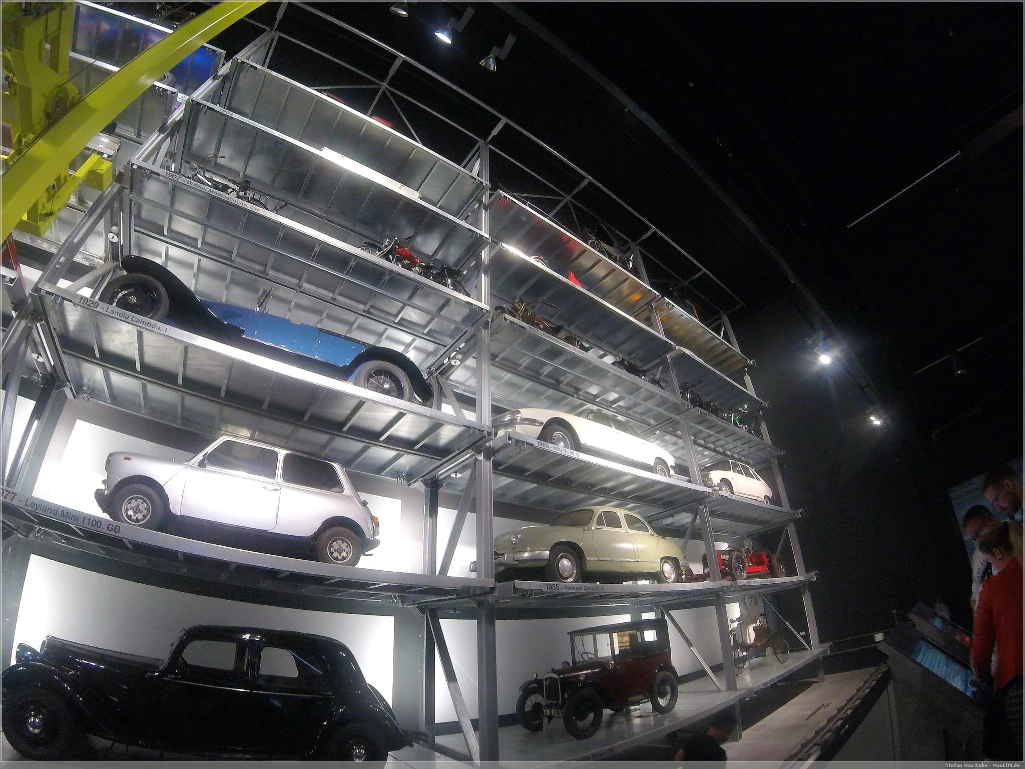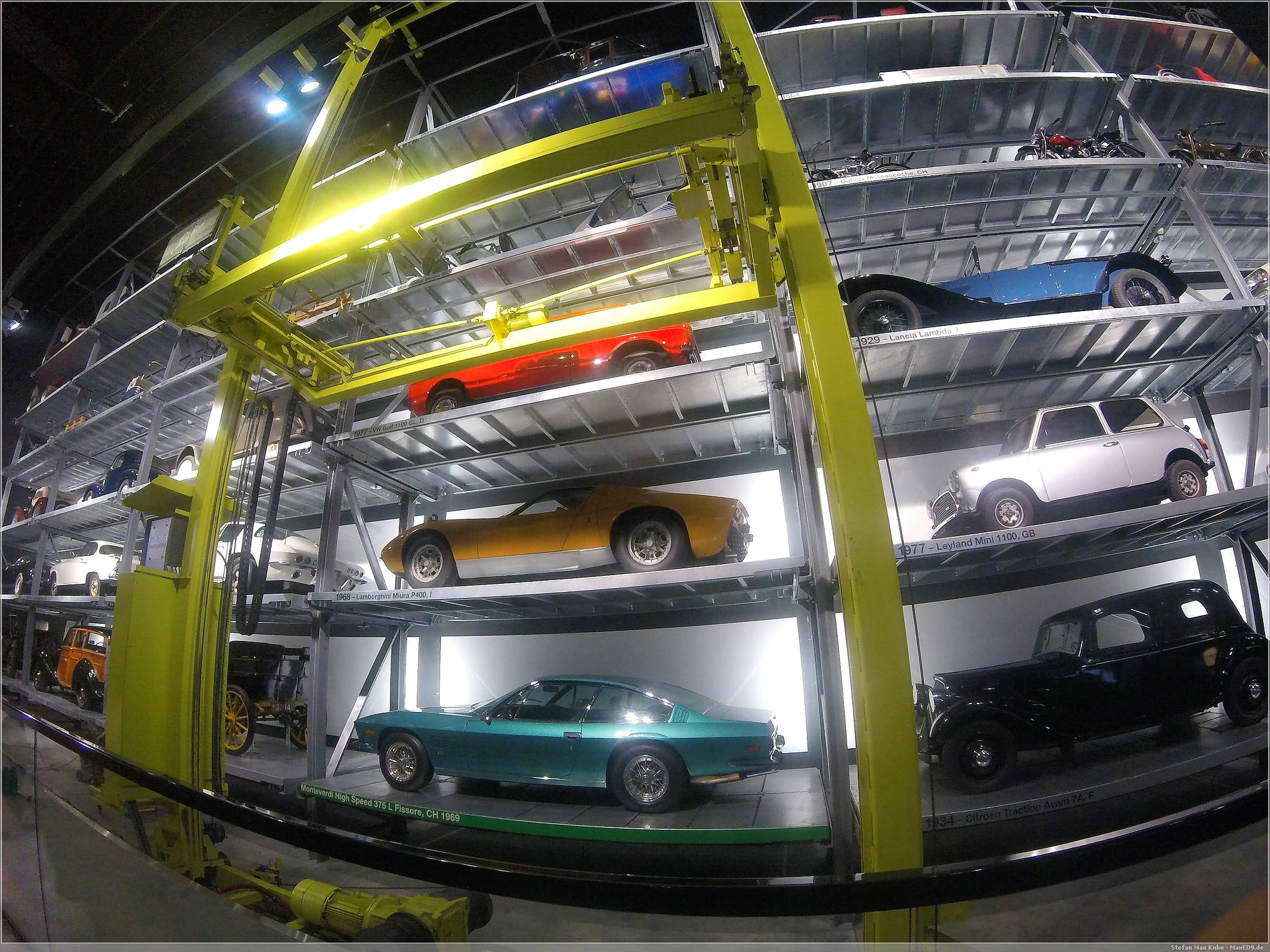 Eine Besonderheit im Verkehrshaus ist das Schauregal, welches nach Wunsch Fahrzeuge per Robotor-Lift herausholt und zur Ansicht an den Besucherplatz bringt.