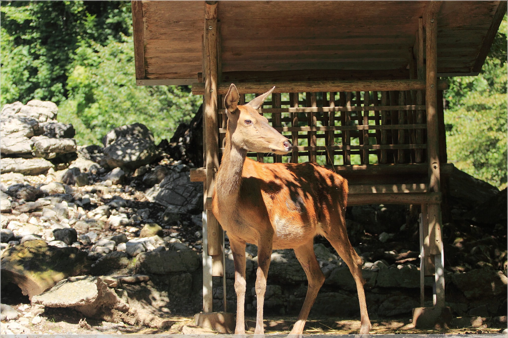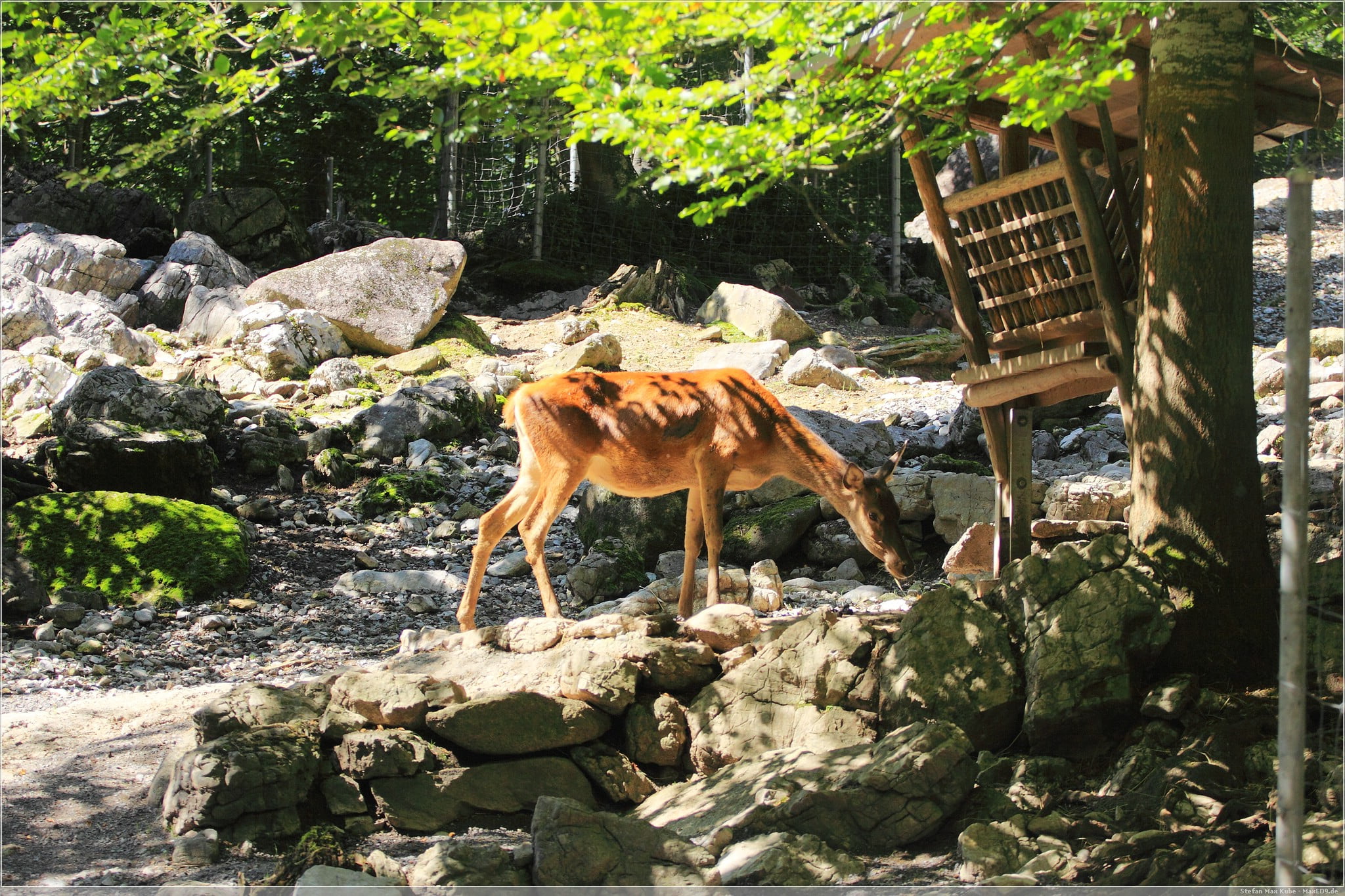 Der Wildpark ist zwar klein, verlangt keinen Eintritt und ist dennoch nicht stark besucht. So hatte ich die Möglichkeit lange an den teils sehr großzügig angelegten Gehegen zu sitzen und die Tiere zu beobachten. Vor allem die Rothirsche waren hier interessant.