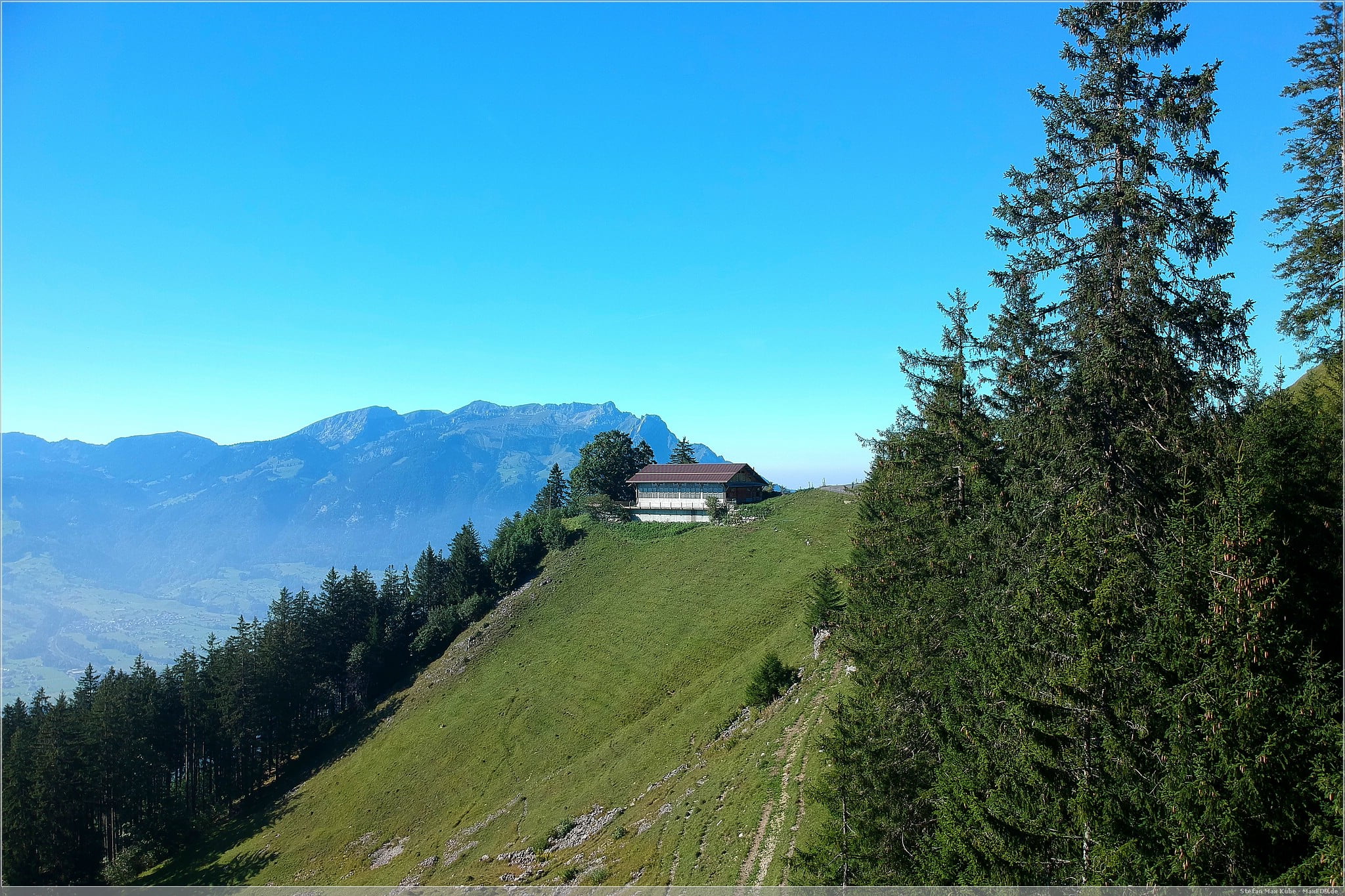 Nachdem ich mich hier oben satt gesehen hatte, nahm ich zunächst den gleichen Weg wieder hinunter und fuhr weiter über die Steinistrasse, vorbei an Haltern zurück ins Flüeli.