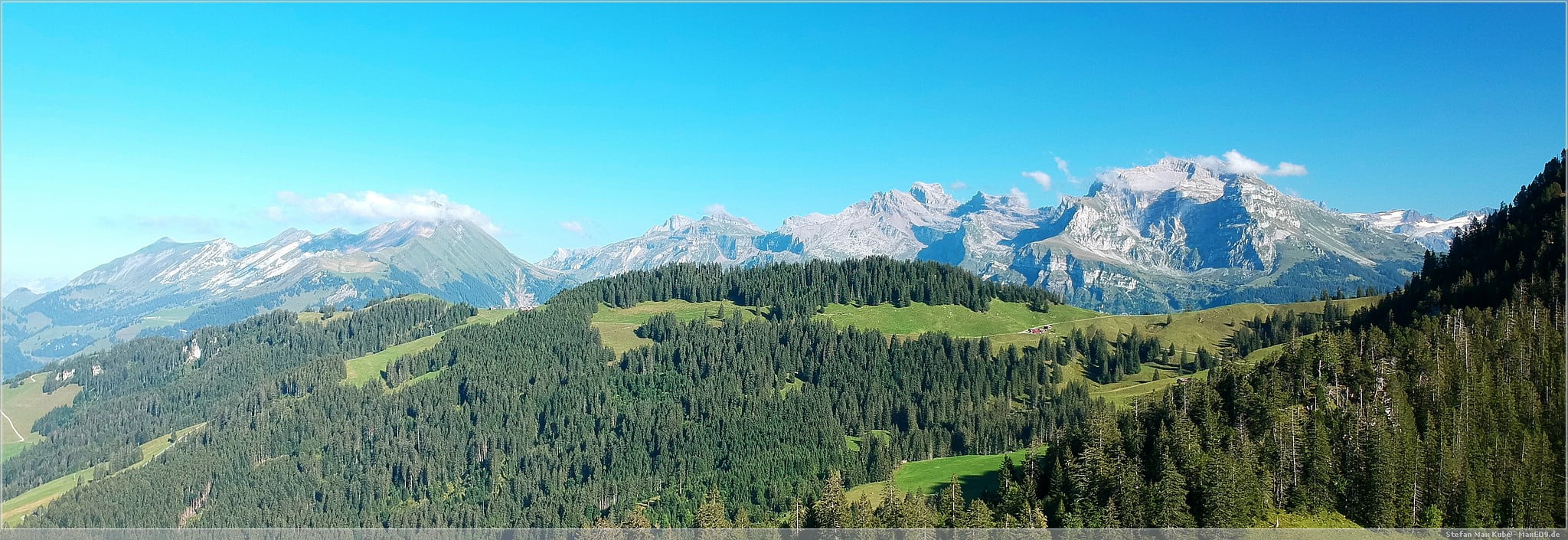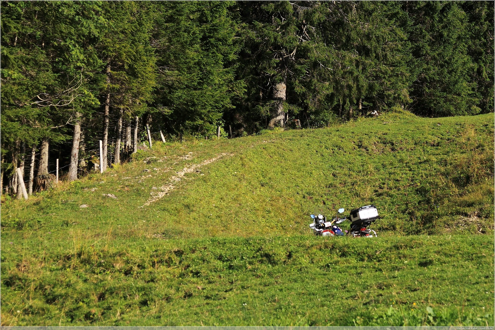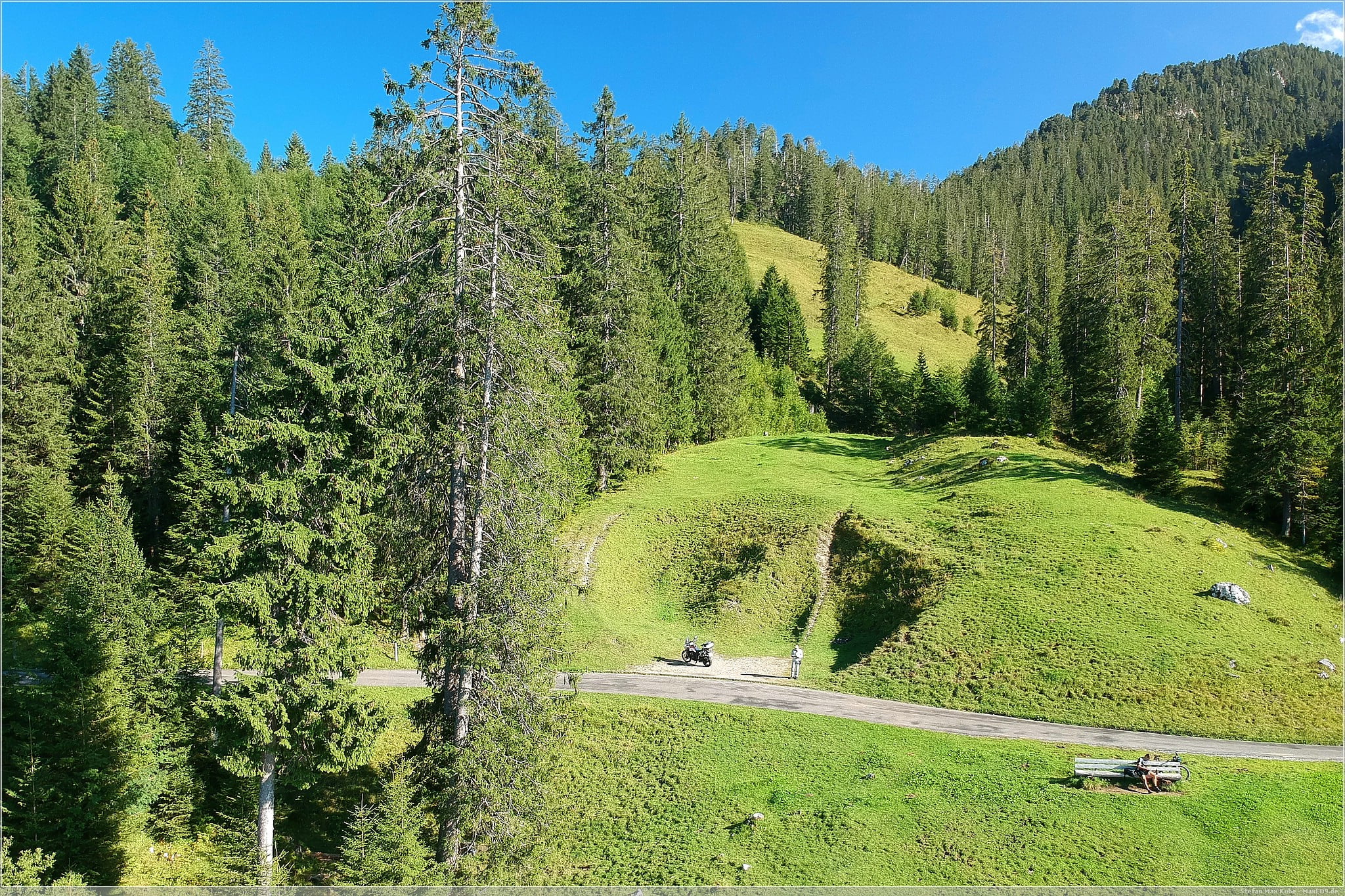 Zum Abschluss des Tages fuhr ich zunächst über den Brünig-Pass zurück Richtung Sachseln an Sarnen vorbei uns über Kerns hinauf zum Ächerli-Pass. Ab Wisserlen wurden die Straßen schon deutlich schmaler und als es dann die Ächerlistrasse hinauf ging, war das schon eine kleine spannende Herausforderung. Die Straße war kaum 2 Meter breit. Auf der einen Seite ging es direkt hinunter und auf Grund der vielen Kurven konnte man nicht weit genug den Weg hinaufsehen um auf Gegenverkehr zu achten. Also hieß es langsamer machen. Auch wenn es kaum Verkehr gab, so waren doch vor allem Radfahrer unterwegs, an denen ein Vorbeikommen in der Regel problemlos möglich war. Anders jedoch bei Autos, hier galt es auch den sich ständig wechselnden Untergrund zwischen Asphalt, Kies oder Waldboden im Auge zu behalten.