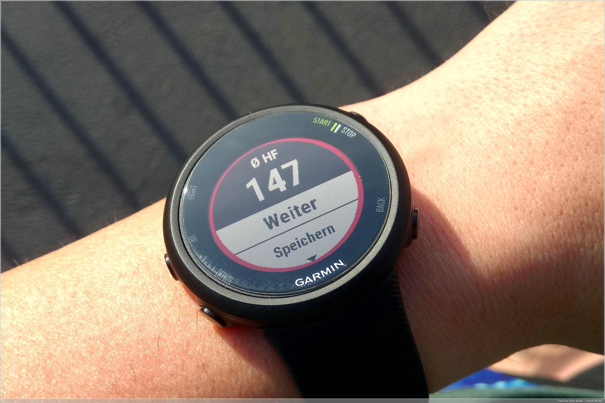 Der Herzfrequenzsensor funktioniert wie gewohnt. Fürs Laufen nutze ich zwar immer einen Gurt, aber beim Radfahren nehme ich die Uhr als Sensor.