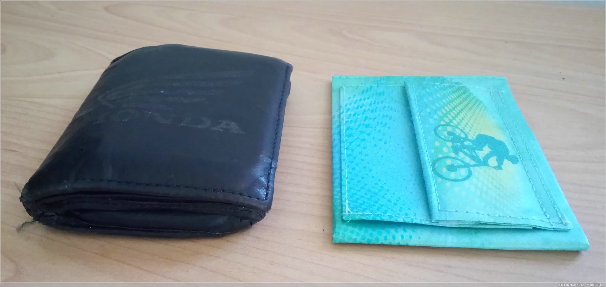 Schon länger war ich auf der Suche nach einem Nachfolger für mein altes Portemonnaie, welches schon Zersetzungserscheinungen aufwies. Die Anforderungen sind bei mir auch etwas spezieller, da eben nicht nur Geld und Karten reinpassen müssen, sondern auch 2-3 Fahrzeugscheine. Und natürlich soll es frei von tierischen Bestandteilen sein.