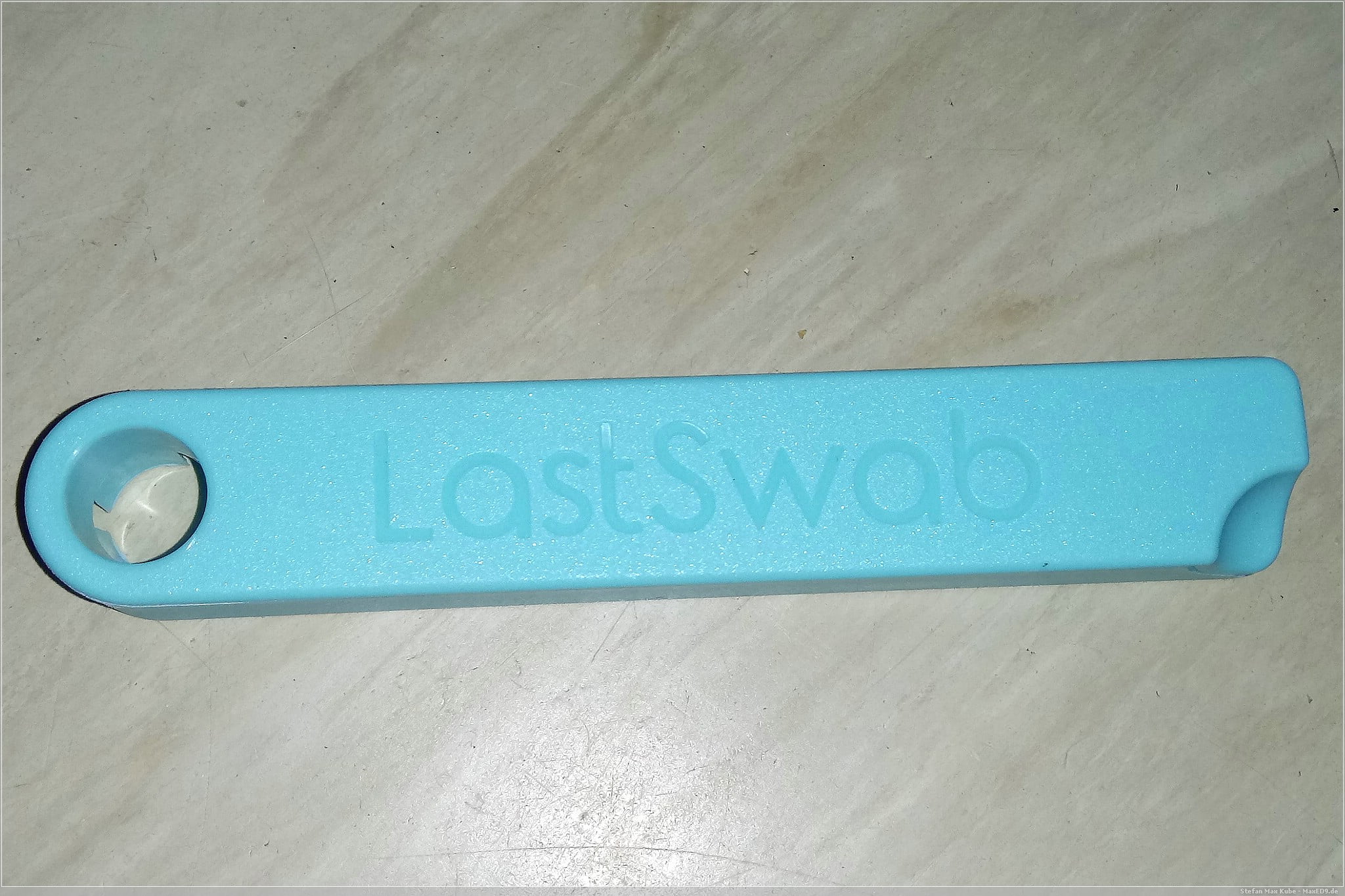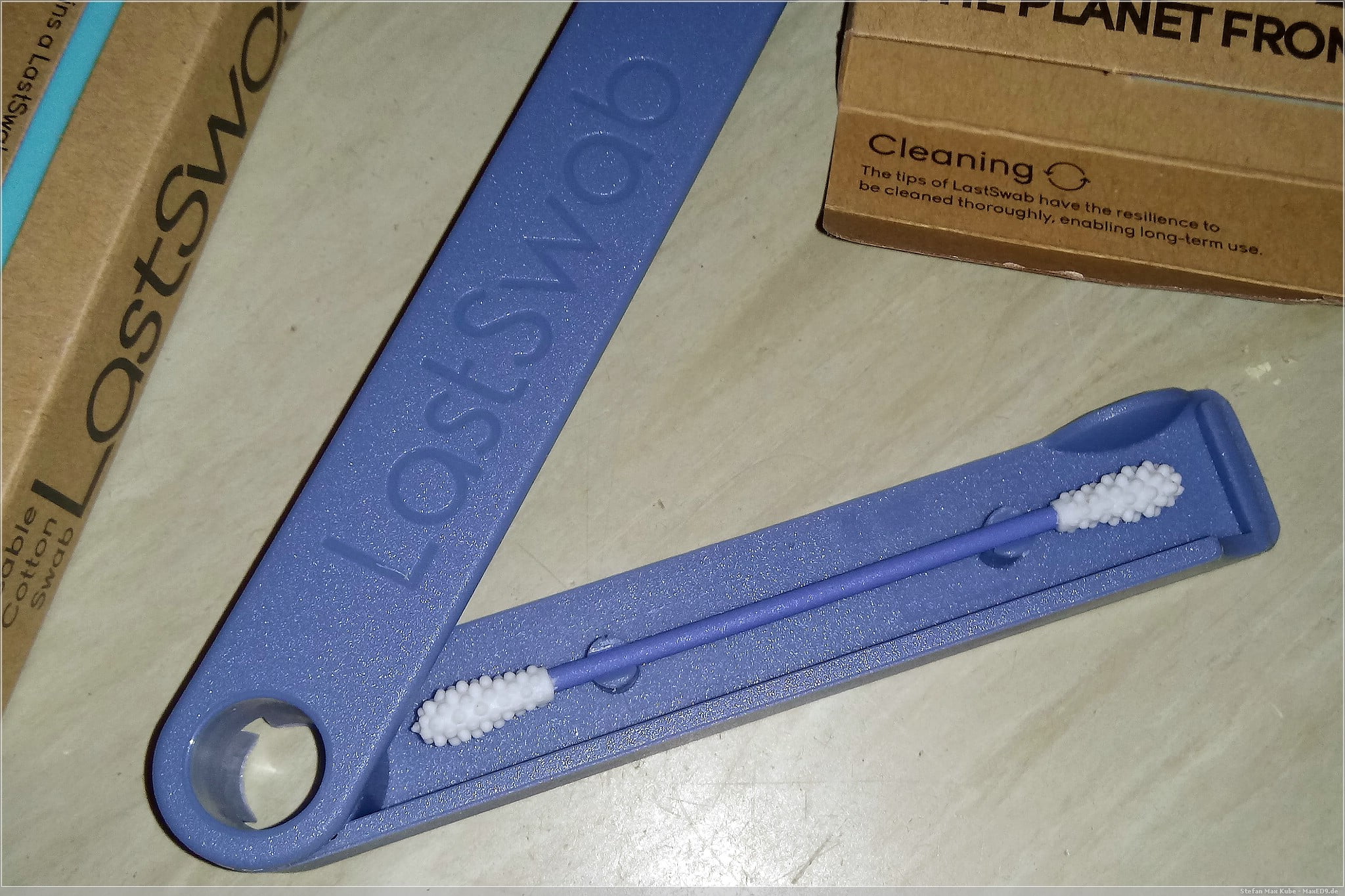 LastSwab[1] ist ein aus biologisch abbaubaren Nylon und Silikon hergestellter Tupfer. Das Material verspricht einerseits Langlebigkeit und andererseits soll es sich leicht reinigen lassen. Damit soll es mindestens 1000 klassische Wattestäbchen ersetzen.