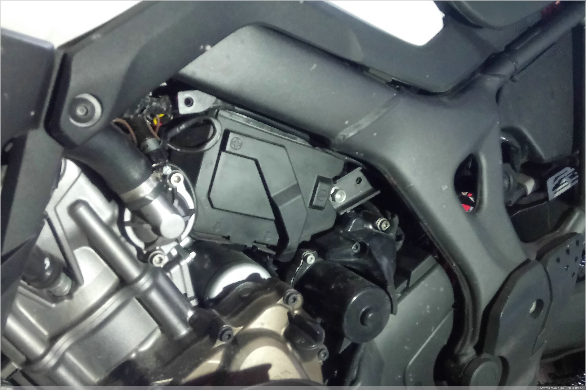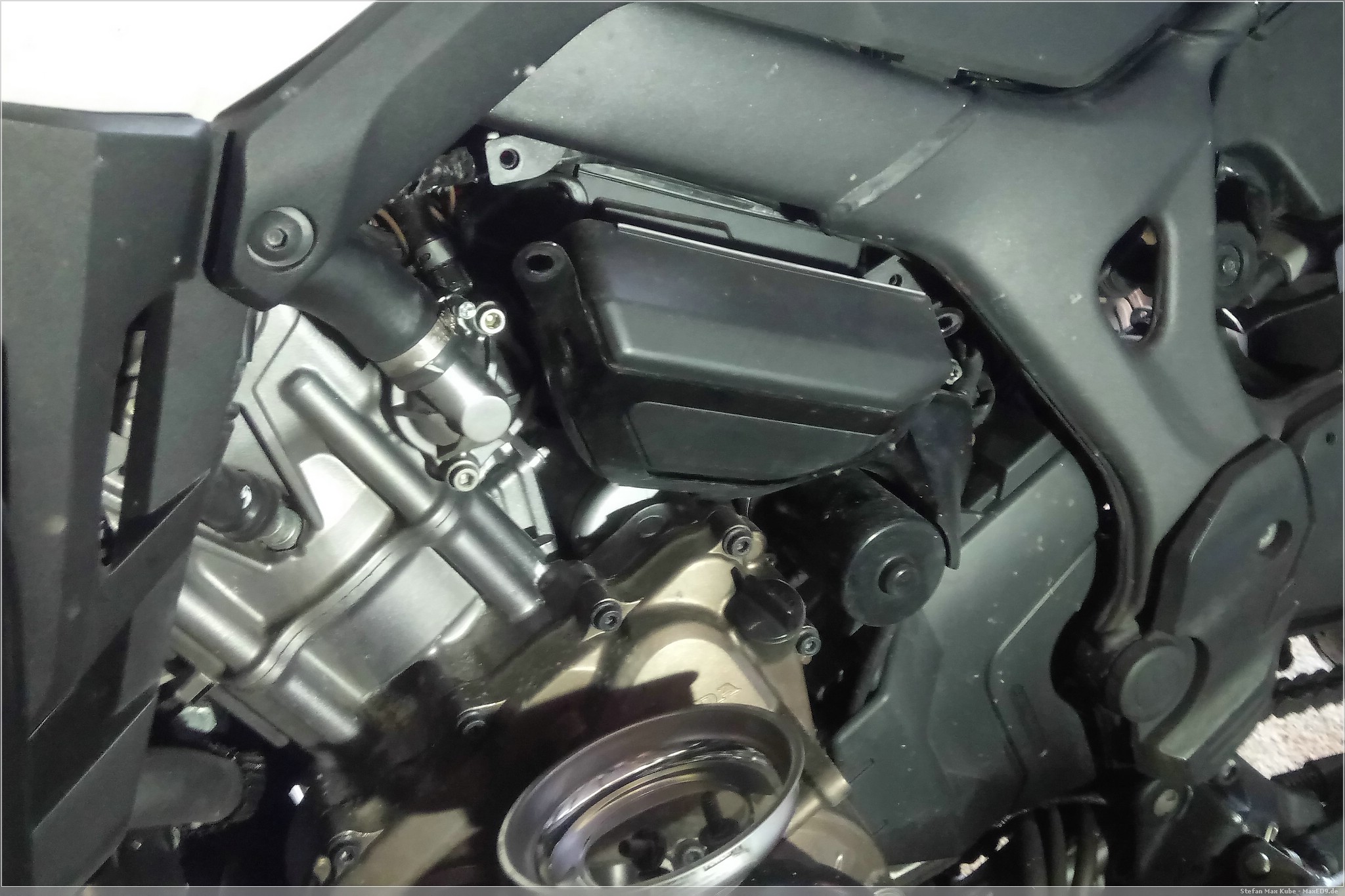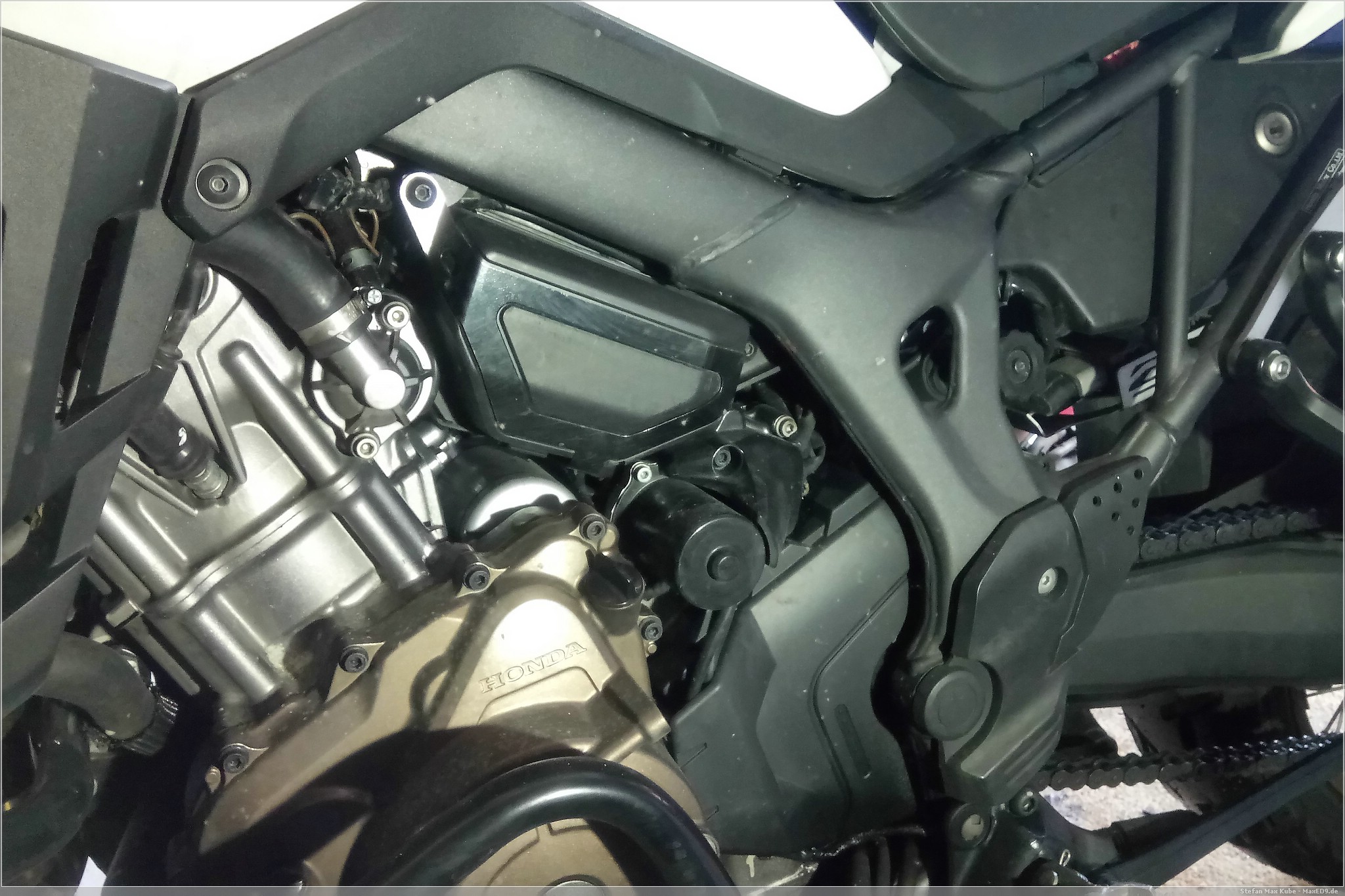 Auch wenn bisher nicht der Bedarf bestand die Africa Twin fremdzustarten, ist der Zugang zur Batterie recht beschwerlich. Im Gegensatz zur SevenFifty, wo ich einfach nur die Sitzbank abnehmen muss und quasi schon direkt an die Pole der Batterie komme, ist die Batterie der Honda CRF1000L schön versteckt und man benötigt Werkzeug, um sie zu erreichen.