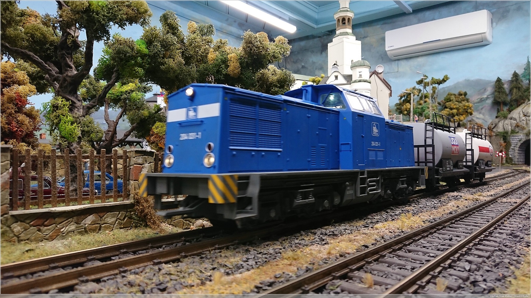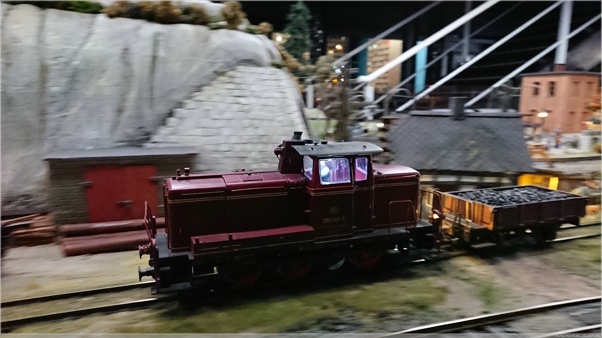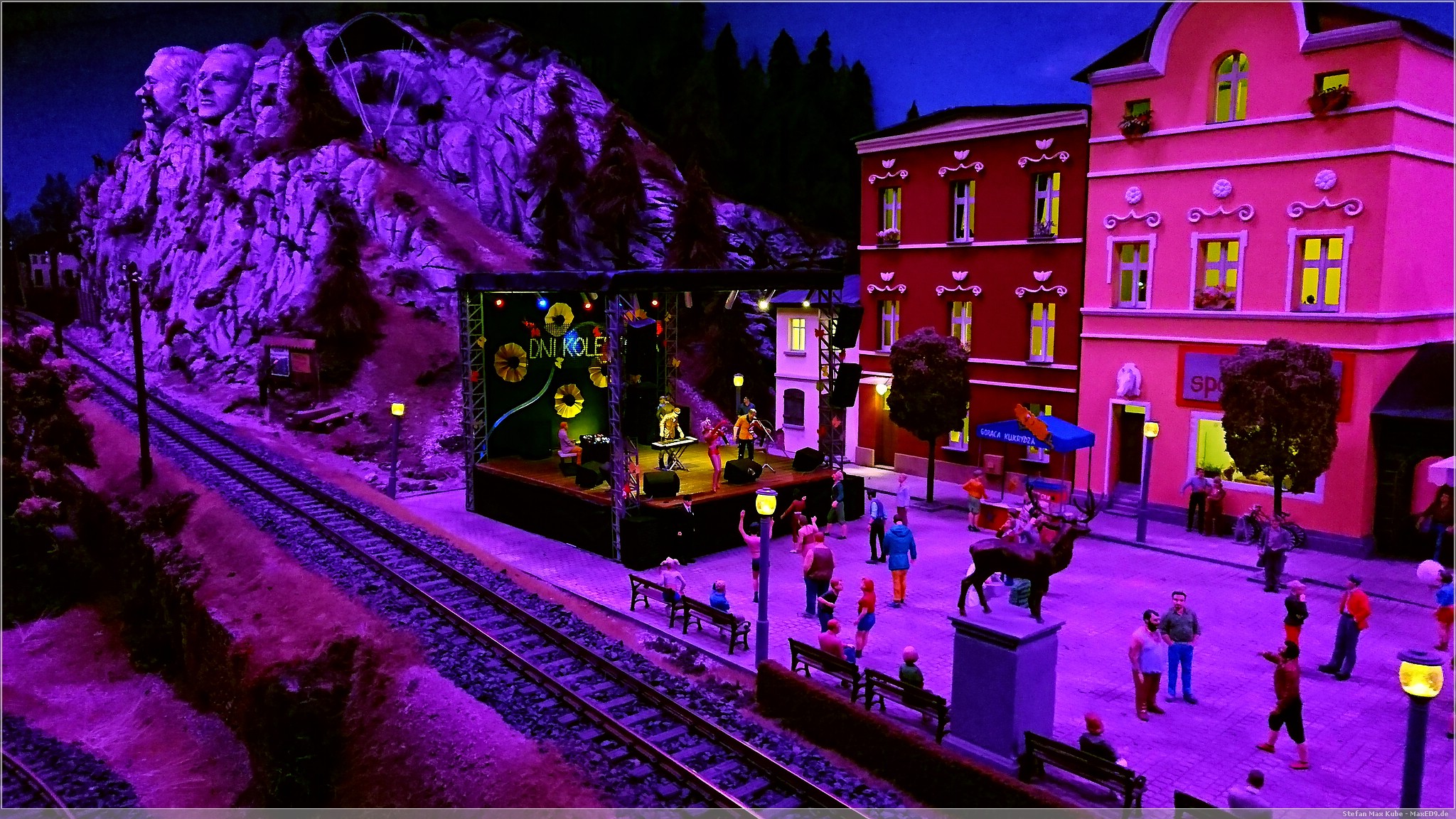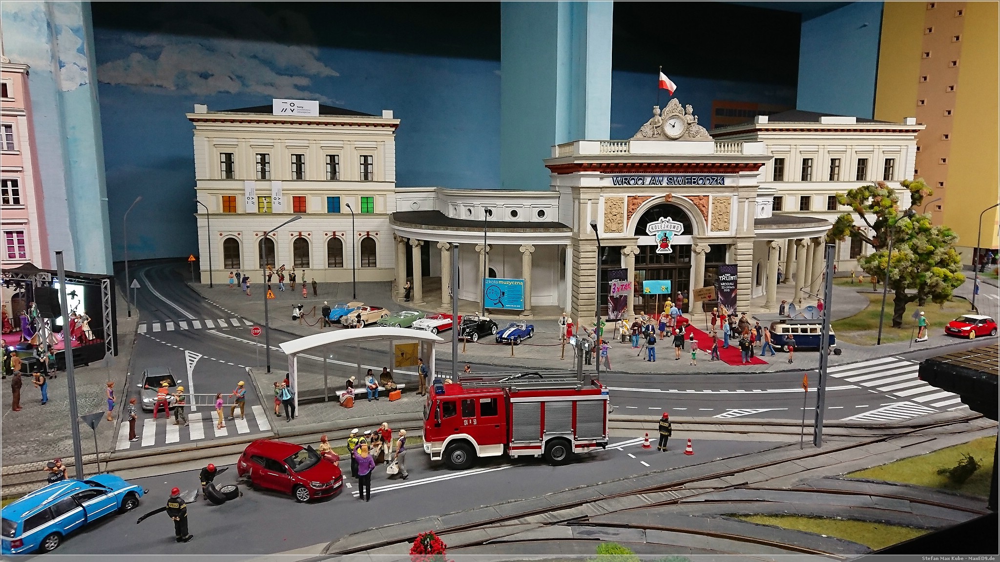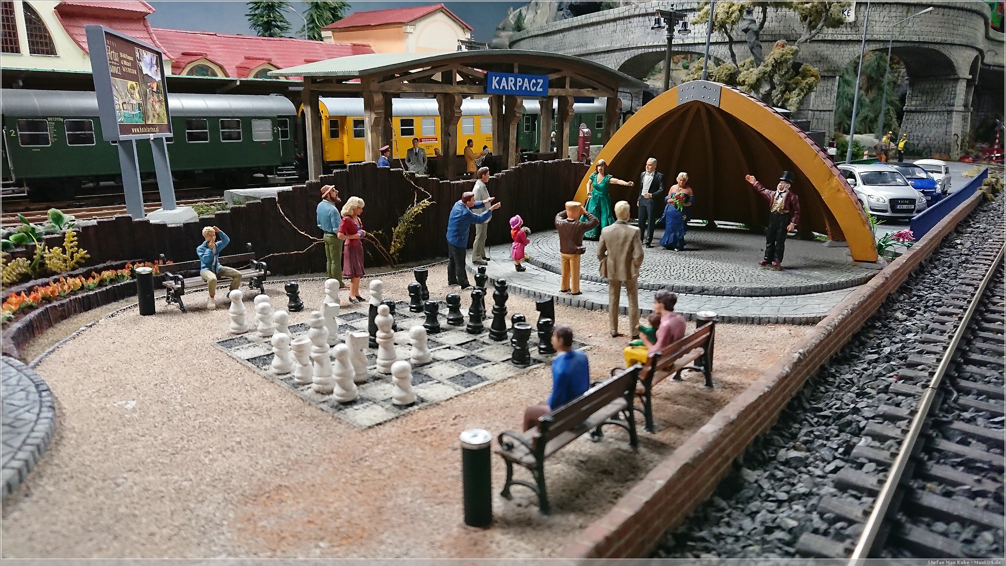 Wir wollten hier zur Modellbahnanlage, da aber noch Zeit war, bis die Ausstellung öffnete, schlenderten wir auch mal kurz über den Markt. Doch dann konnten wir endlich in das Kolejkowo[1], die Modellbahnausstellung. Die Anlage bildet in Spurweite G Ausschnitte der polnischen Landschaft ab.