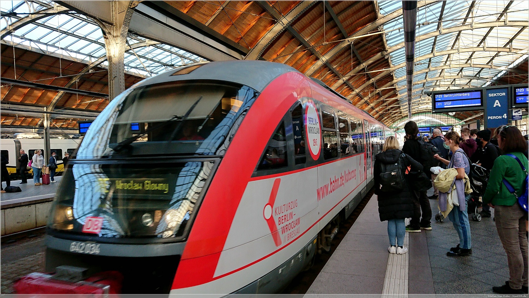 Laut Fahrplan war eigentlich klar wo unser Zug fahren sollte, doch kurz vorher kamen andere Reisende, die meinten, dass der Zug nach Berlin diesmal an einem anderen Bahnsteig abfahren würde. Die Verwirrung war komplett, nur wenige Minuten bis zur planmäßigen Abfahrt und weder am ursprünglichen noch am eventuellen neuen Gleis zeigten die Anzeigen unseren Zug.