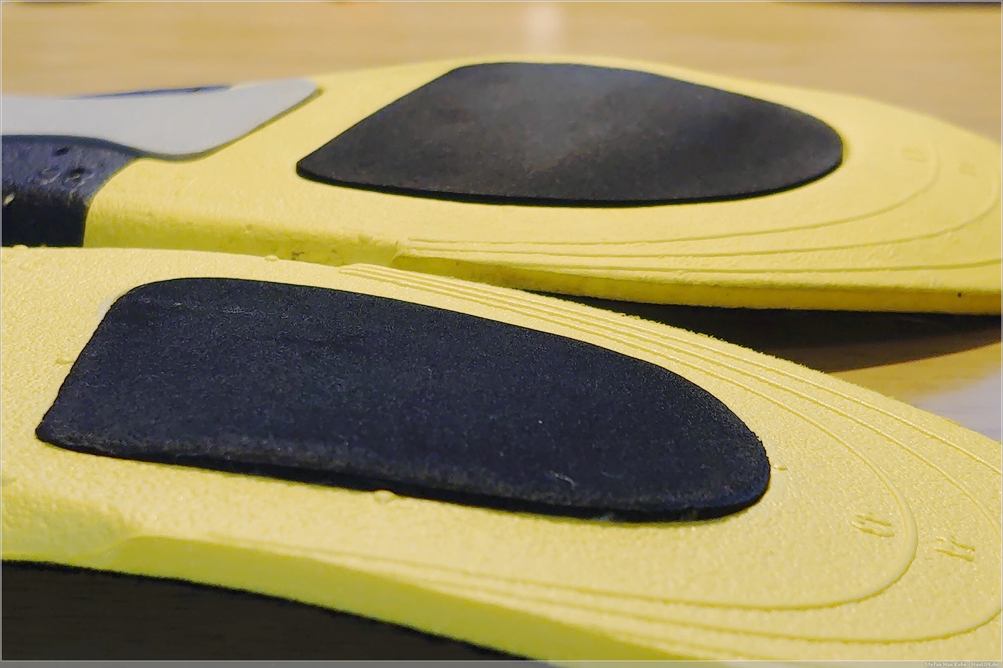Für knapp 15€ bekommt man ein paar vorgeformte Einlegesohlen mit 3 Dämpfungszonen an Ferse, Mittelfuß und im Zehenbereich. Dazu gibt es einen kleinen Schuhanzieher, nett, aber den könnte man sich auch sparen, denn mehr als einen braucht man ja auch kaum.