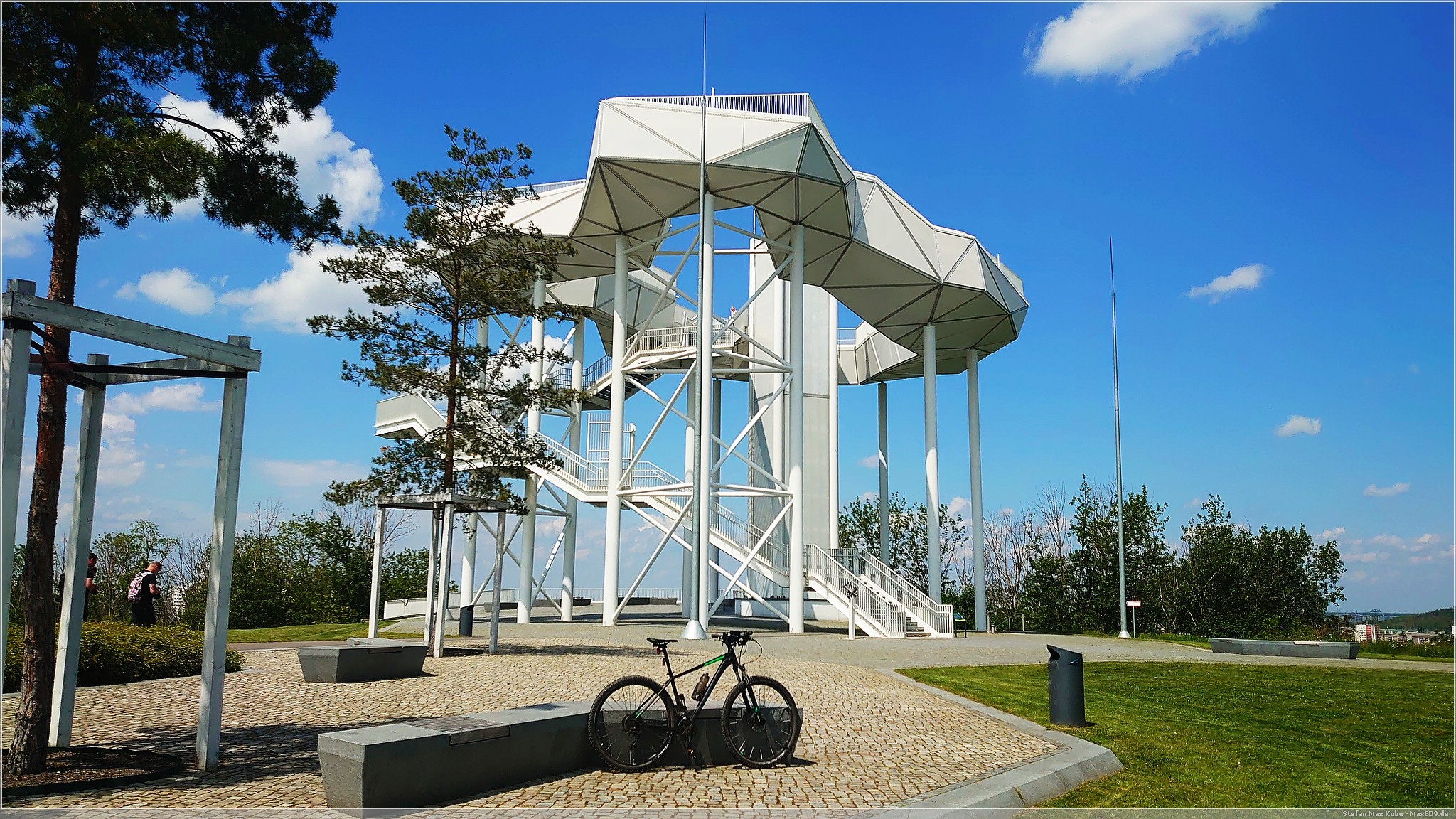Zunächst ging es zum Schäferberg hinauf, auf dem sich ein Fernmeldeturm befindet. Danach ging es dann weiter zum Drachenberg, wobei dies ein Planungsfehler war, denn eigentlich fuhr ich so schon einmal am Teufelsberg vorbei und musste dann eine zusätzliche Schleife drehen. Aber mittlerweile kam auch schon wieder die Sonne hinter den Wolken hervor, so dass dies etwas für den ‚Umweg‘ entschädigte.