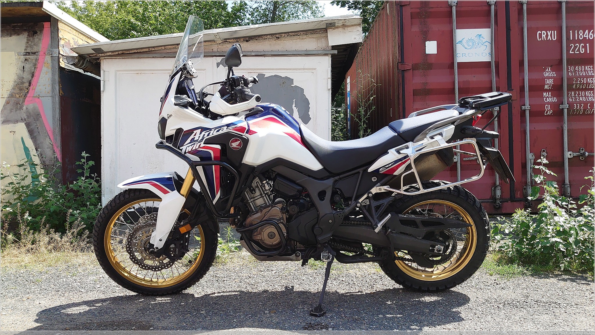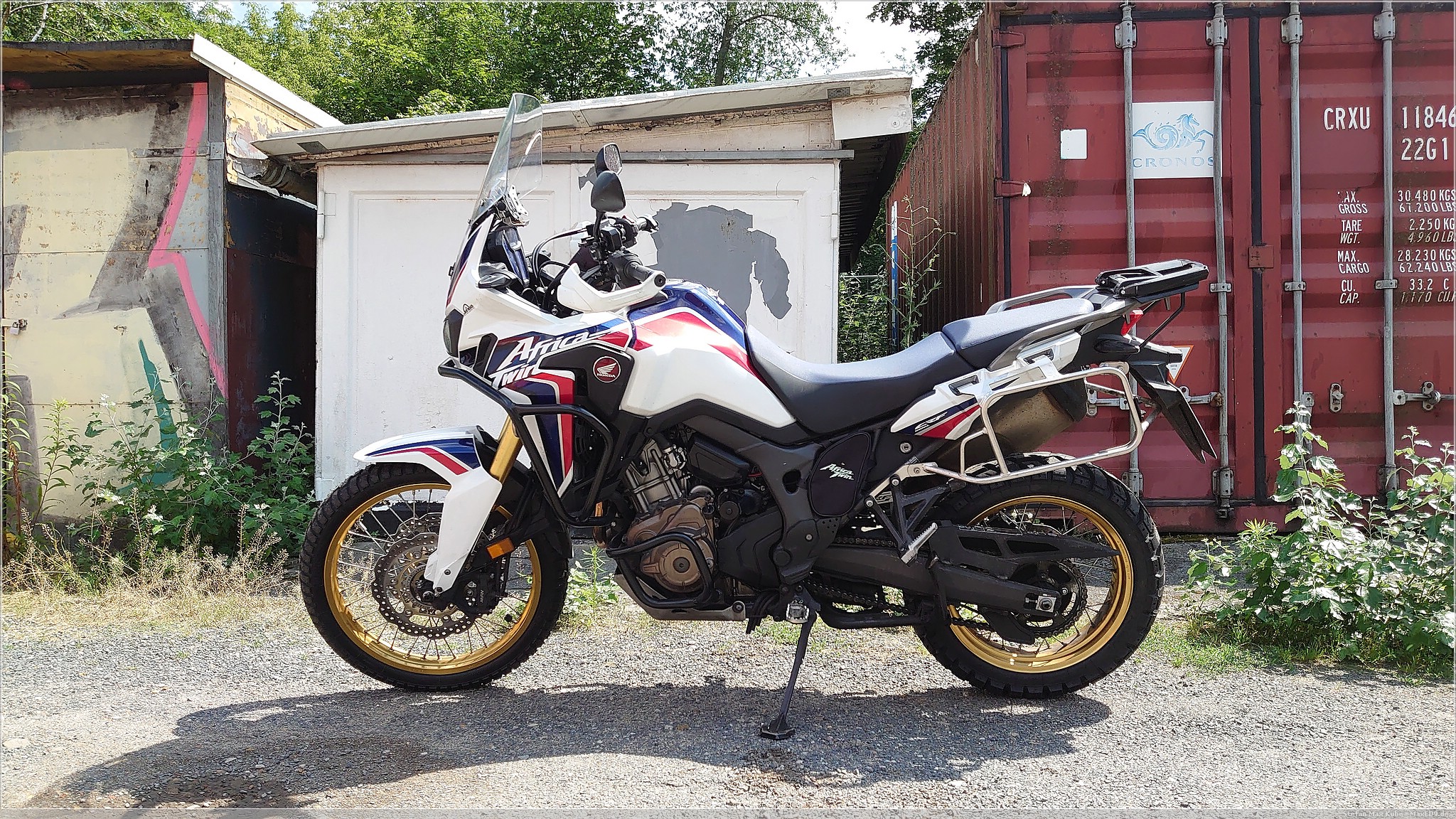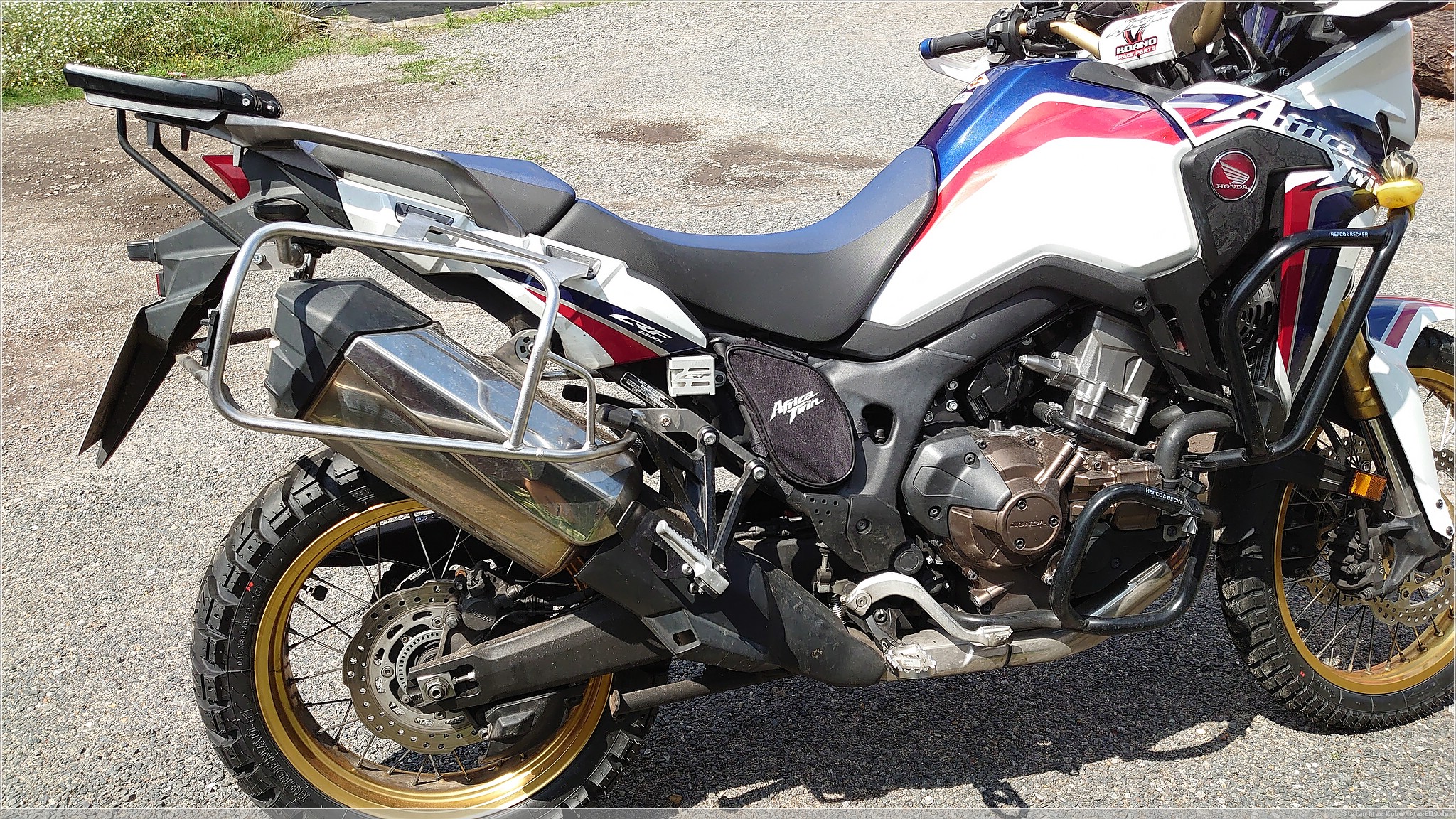 Die die CRF1000L bietet unter dem Sitz schon recht viel Platz, da aber dort die Treiber der Nebelscheinwerfer, der CLS-Kettenöler, eine Verbandstasche und ein paar Stahlkabel schon fast den ganzen Platz verbrauchen, bleibt kein weiterer Stauraum. Das wurde teilweise mit dem Adventure Sports und Nachfolge-Modellen verbessert.