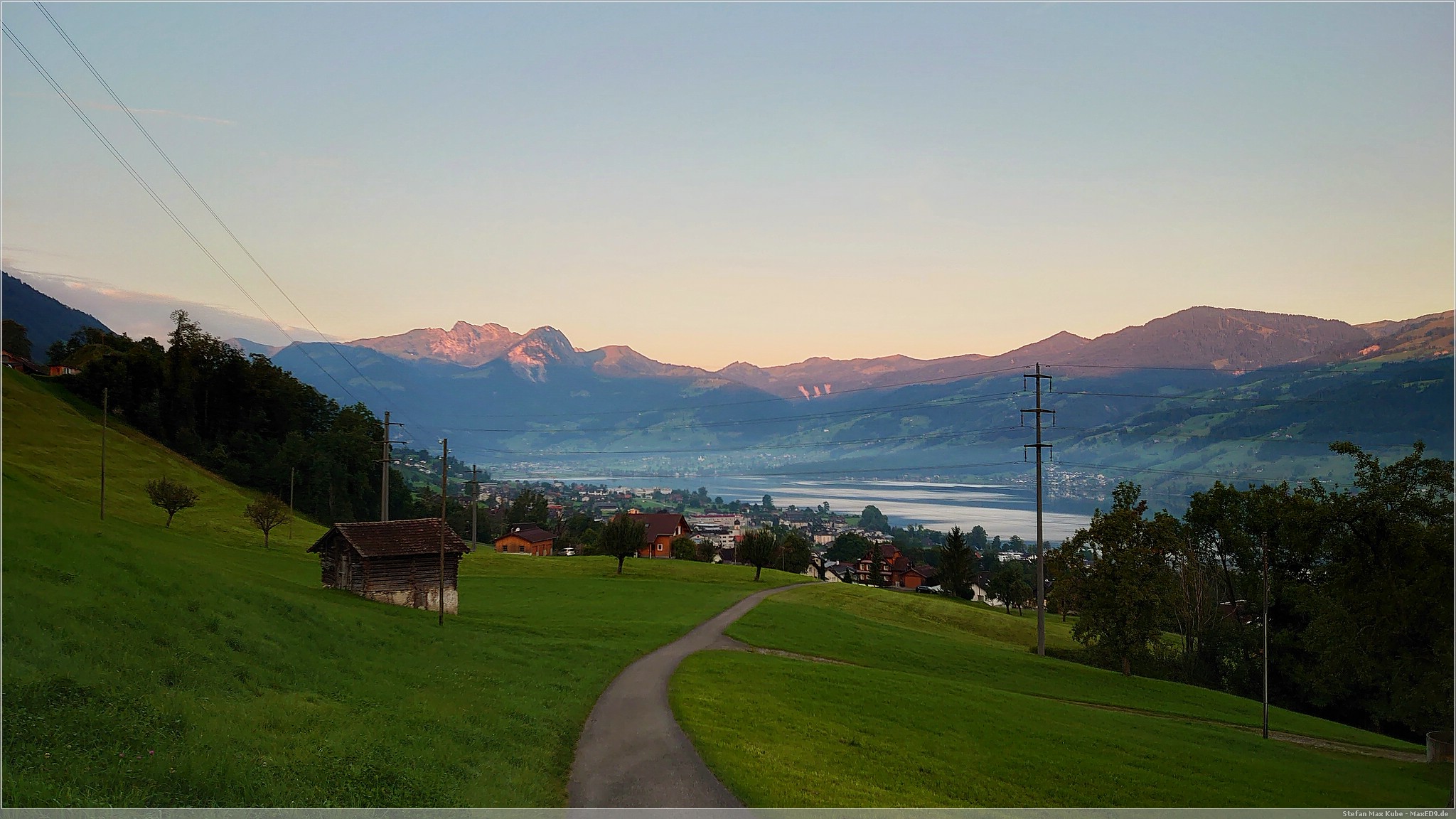 Zur Abwechslung lief ich diesmal nicht die gewohnte Strecke[1] in den Morgen, sondern suchte mir eine Route heraus, die mich hinunter an den See führte. Das wollte ich eigentlich auch schon in den letzten Jahren mal machen und den Sonnenaufgang über dem Sarnersee beobachten. Ich wurde nicht enttäuscht und damit ging der Tag auch gut los.