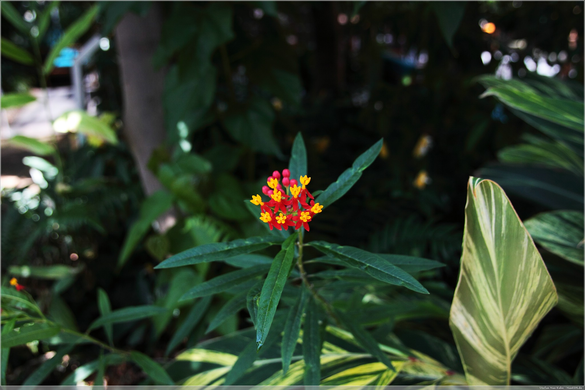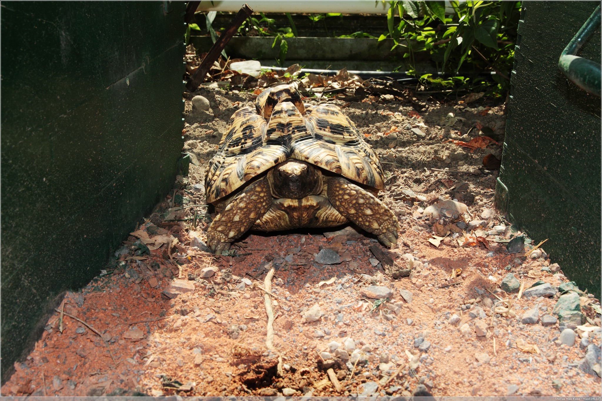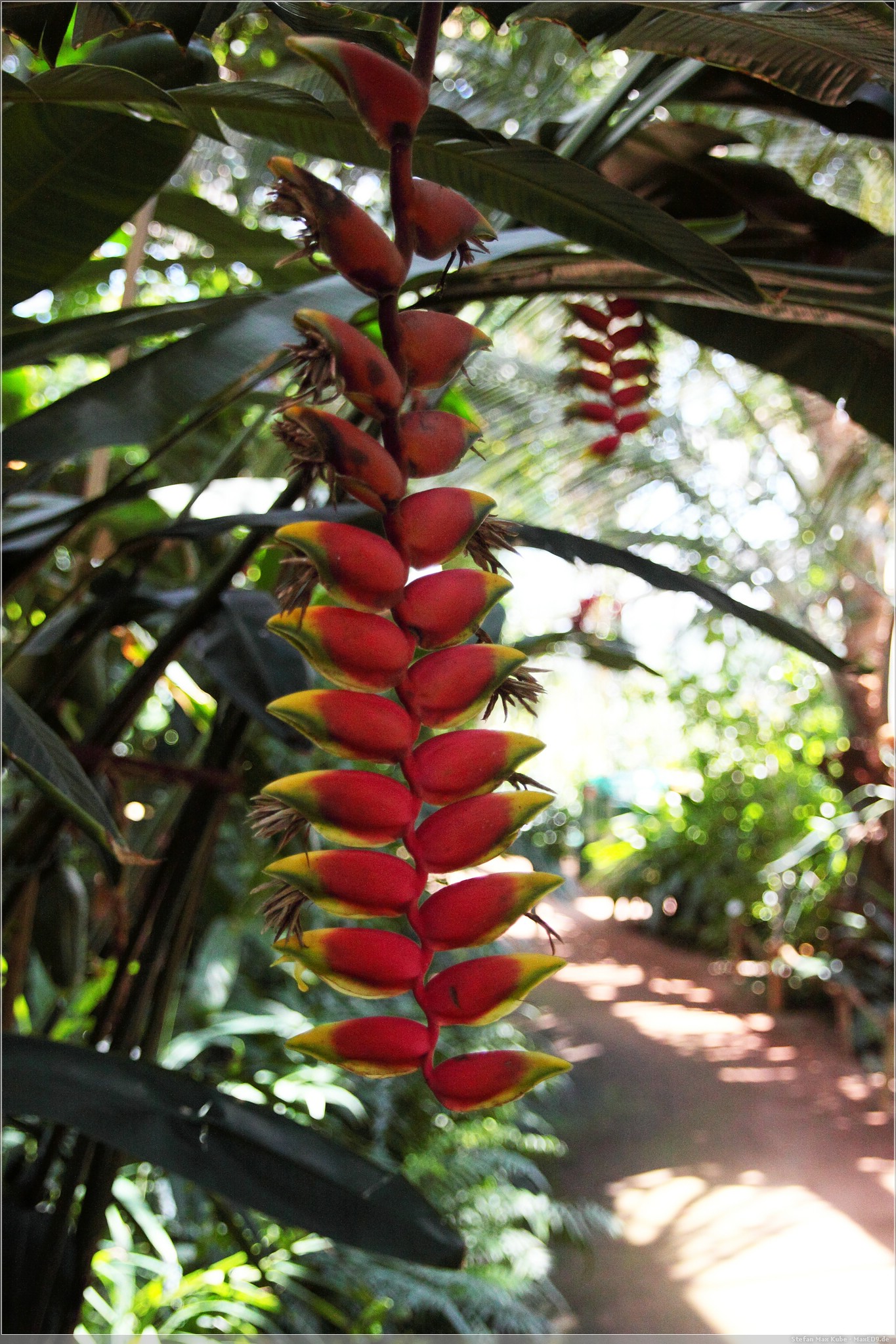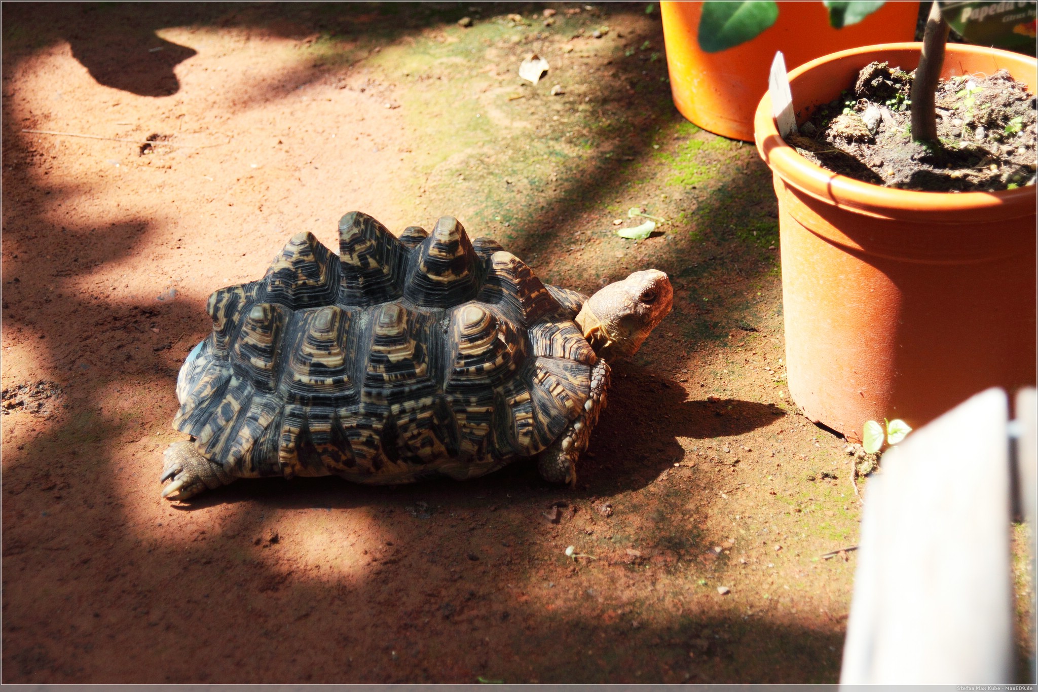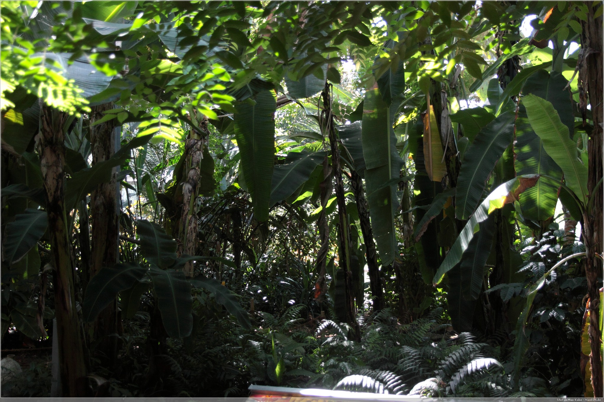 Ein interessanter Bau erwartete uns mit reichlich grünen Pflanzen, interessanten Informationen und auch einigen tierischen Bewohnern, wie Schildkröten, Drachenkopfschrecke und dem Palmendieb. Auf die Schildkröten wies man uns beim Kartenkauf direkt hin, dass dort 5 freilaufend leben und wir vielleicht Glück haben, sie zu sehen, denn die verstecken sich gerne in den tropischen Pflanzen und naschen hier und da auch davon.