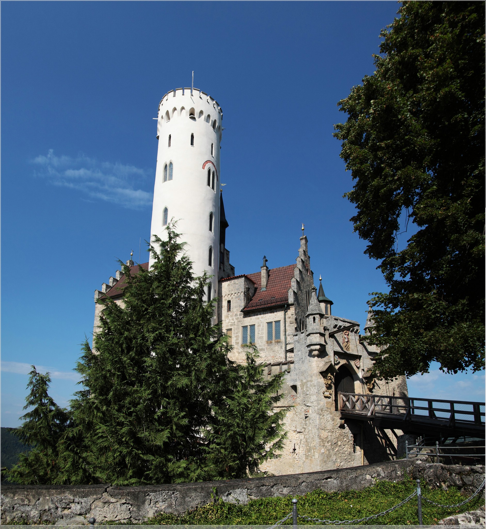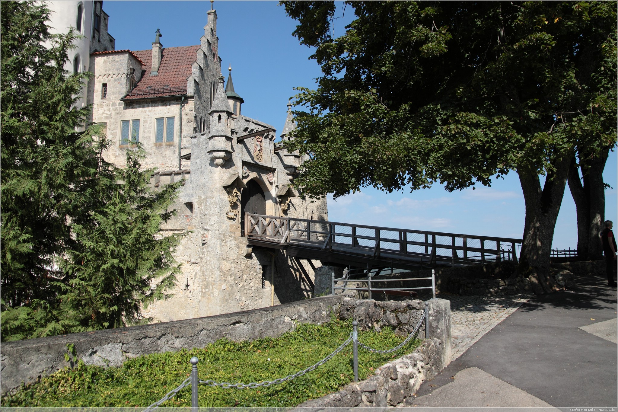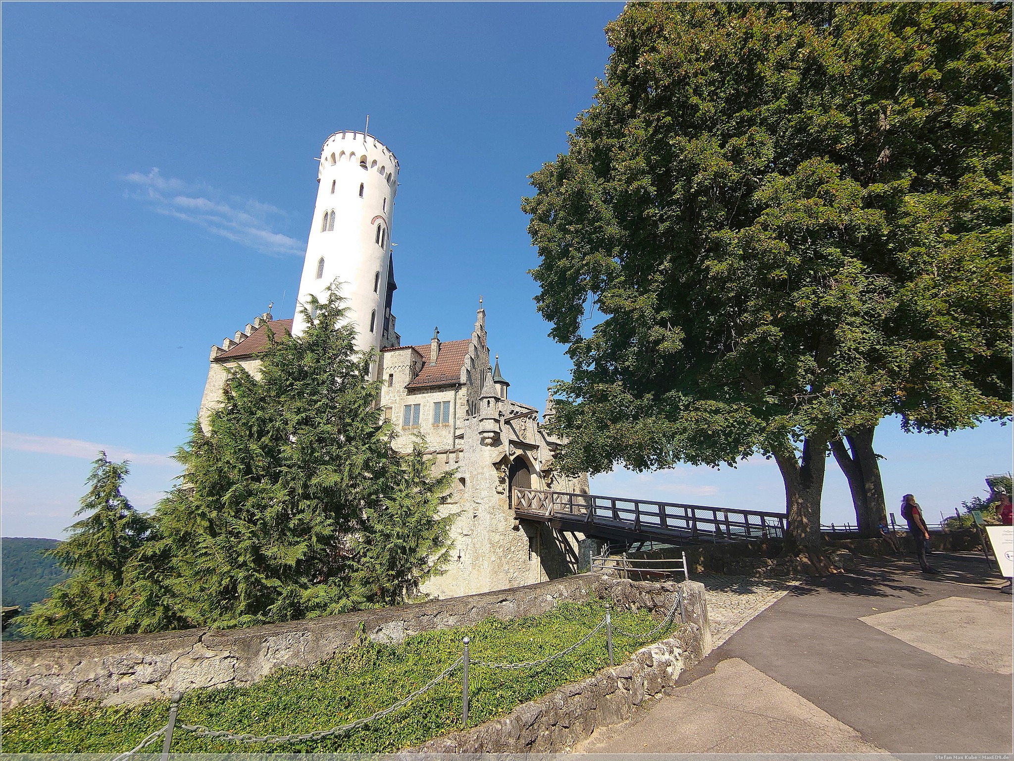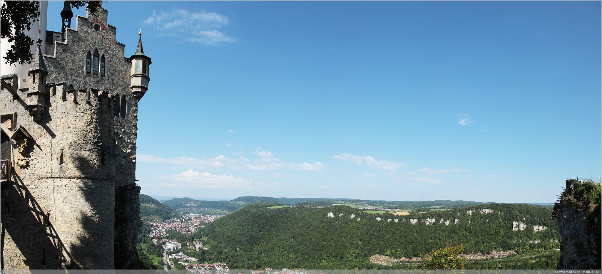 Weiter auf Landstraßen ging es durch Engen, Sigmaringen bis zum Schloss Lichtenstein[1]. Da dies quasi auf dem Weg lag, wollten wir uns hier einfach mal kurz umschauen. Das auch als Märchenschloss Würrtembergs bezeichnete Schloss wurde im 19. Jahrhundert über dem Honau erbaut.In der Schwäbischen Alb auf ca 817m gelegen bietet es neben Einblicken auch eine schöne Aussicht.